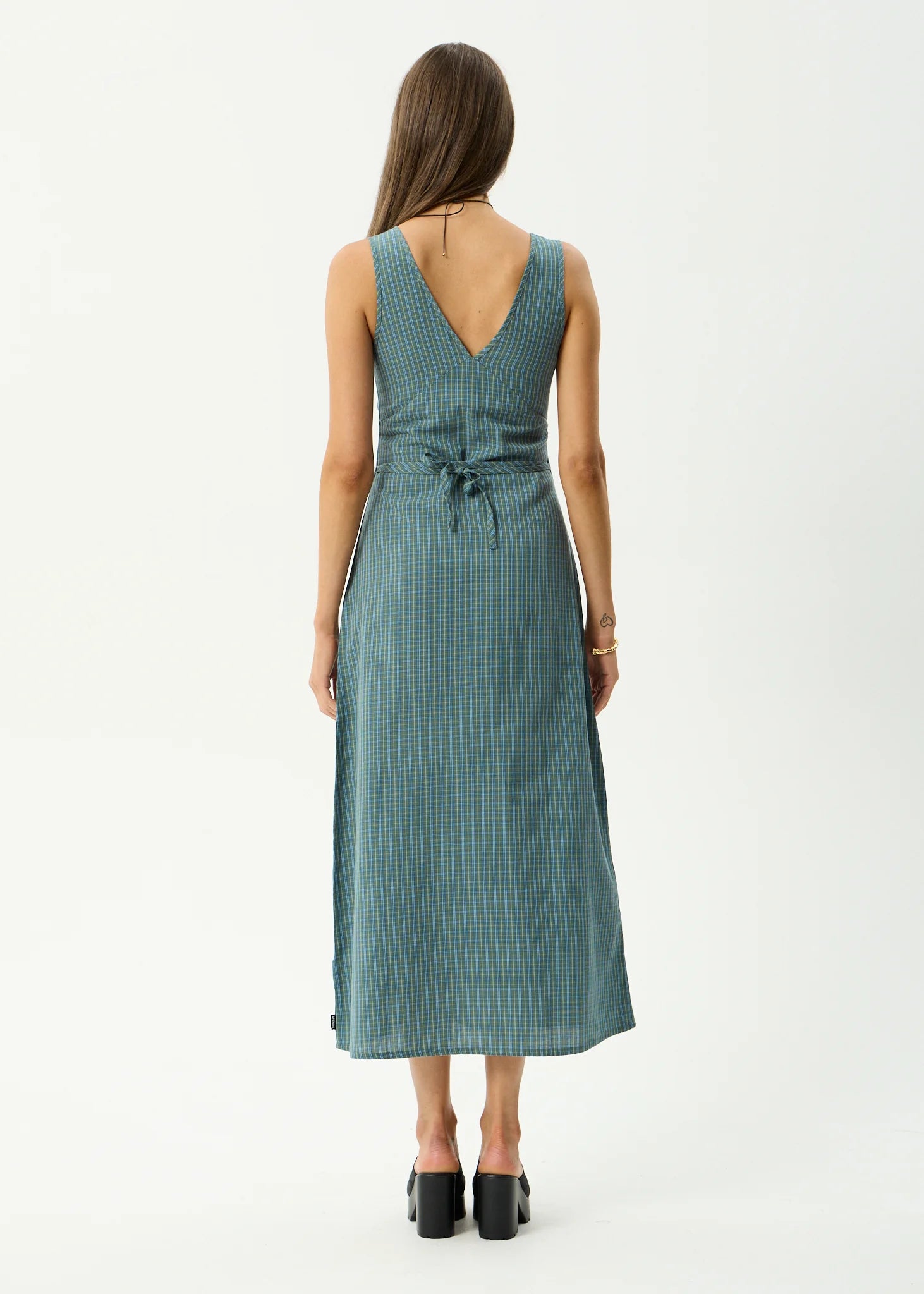Introducing the 'Voyager' Maxi Dress in deep olive check. Designed with a relaxed fit, v-neck, invisible side zip, right side split and removable waist tie. Made from a lightweight blend of recycled cotton and lyocell.