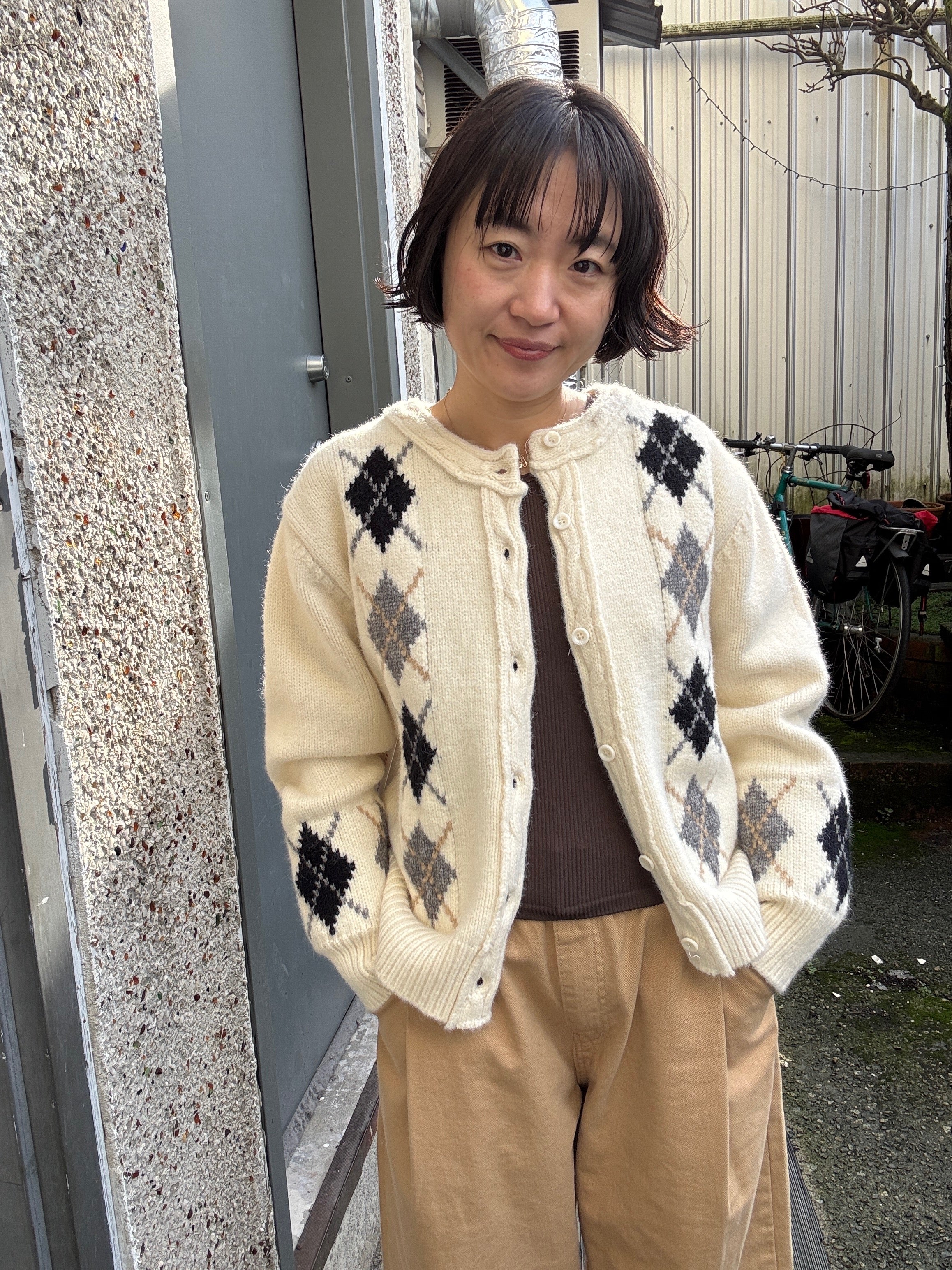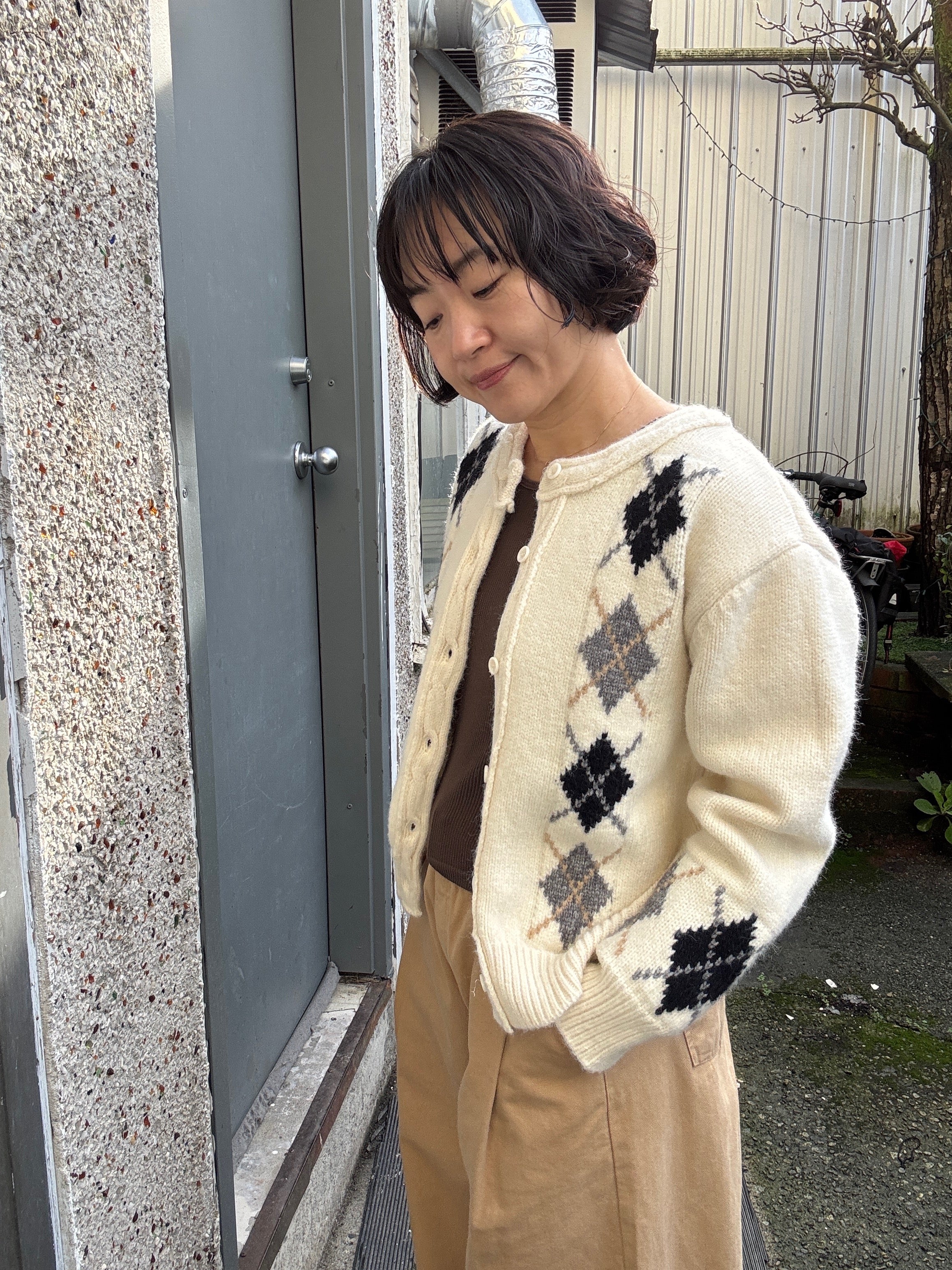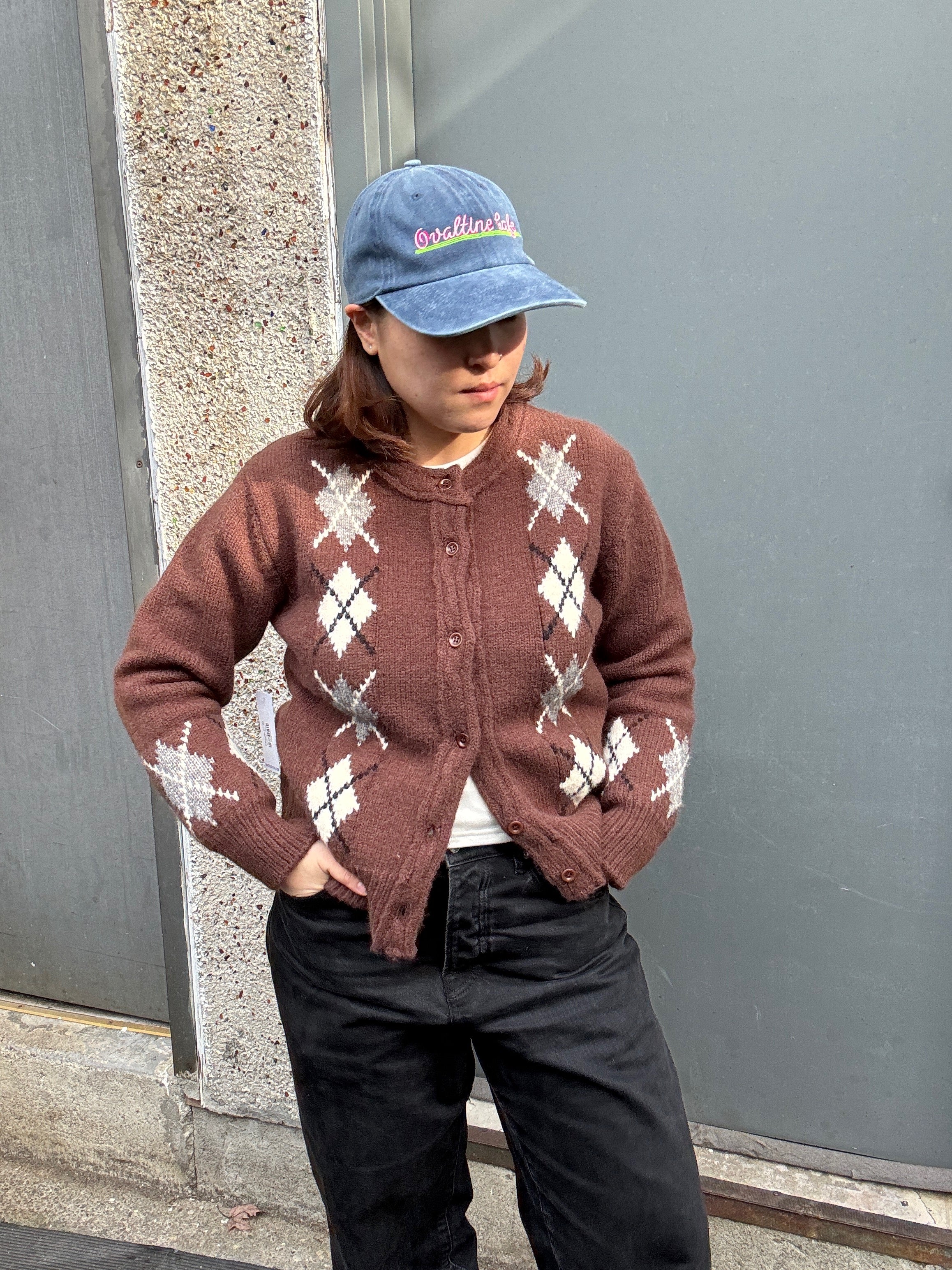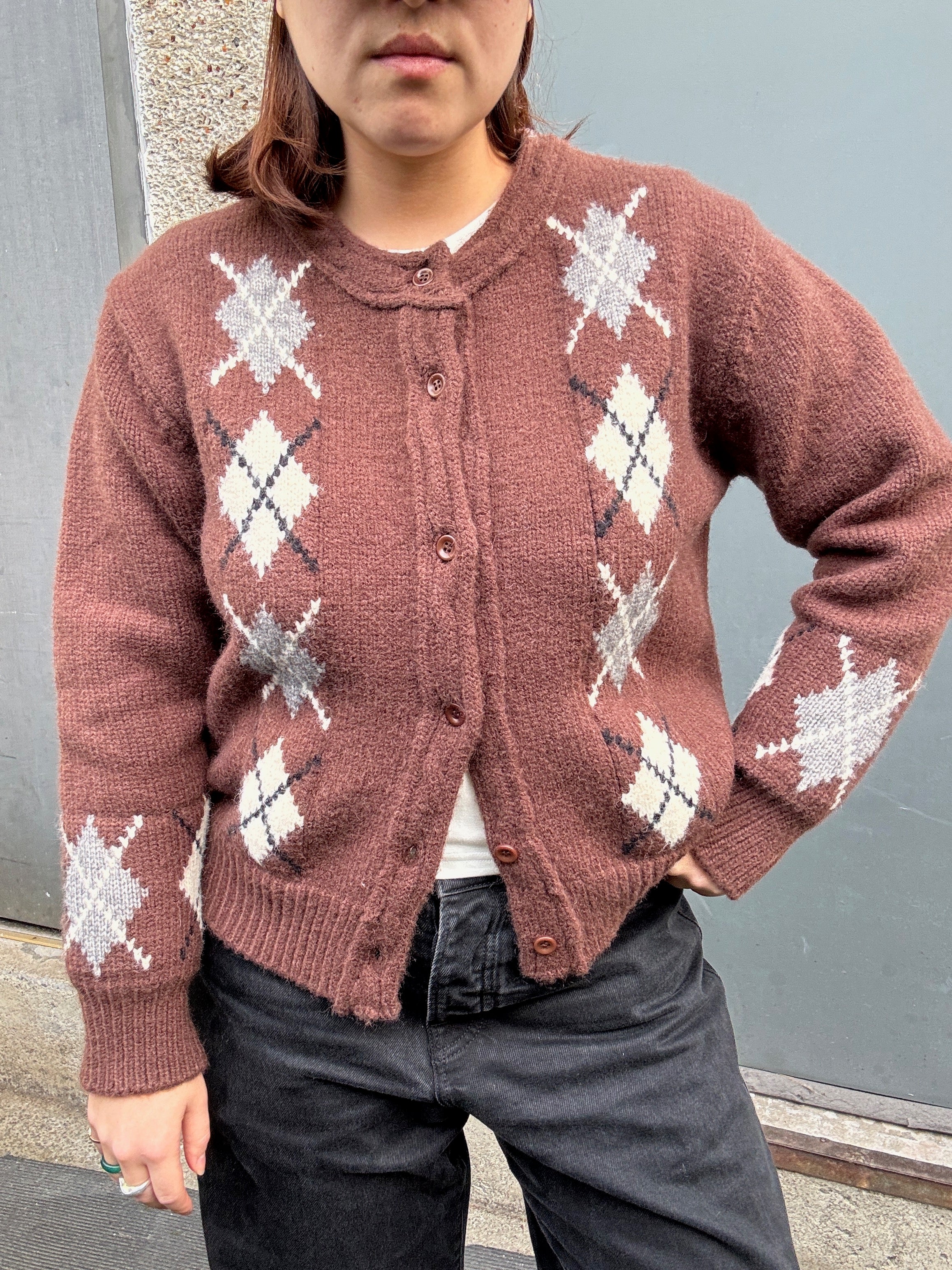 Chunky knit cardigan featuring a timeless argyle pattern. Perfect for layering over your favourite tees or sweaters, this cozy piece brings effortless style to any casual outfit. Whether you're settling in for a relaxed day at home or heading out for weekend adventures, this cardigan is your new go-to for looking put-together and feeling absolutely snug.