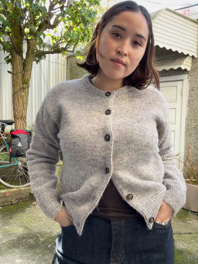 Snuggle up in this cardigan, your new go-to for cozy vibes! Featuring a classic crew neck and easy-to-use buttons, this warm cardigan wraps you in comfort while adding a playful touch to any outfit. Perfect for layering on chilly days or just lounging in style.