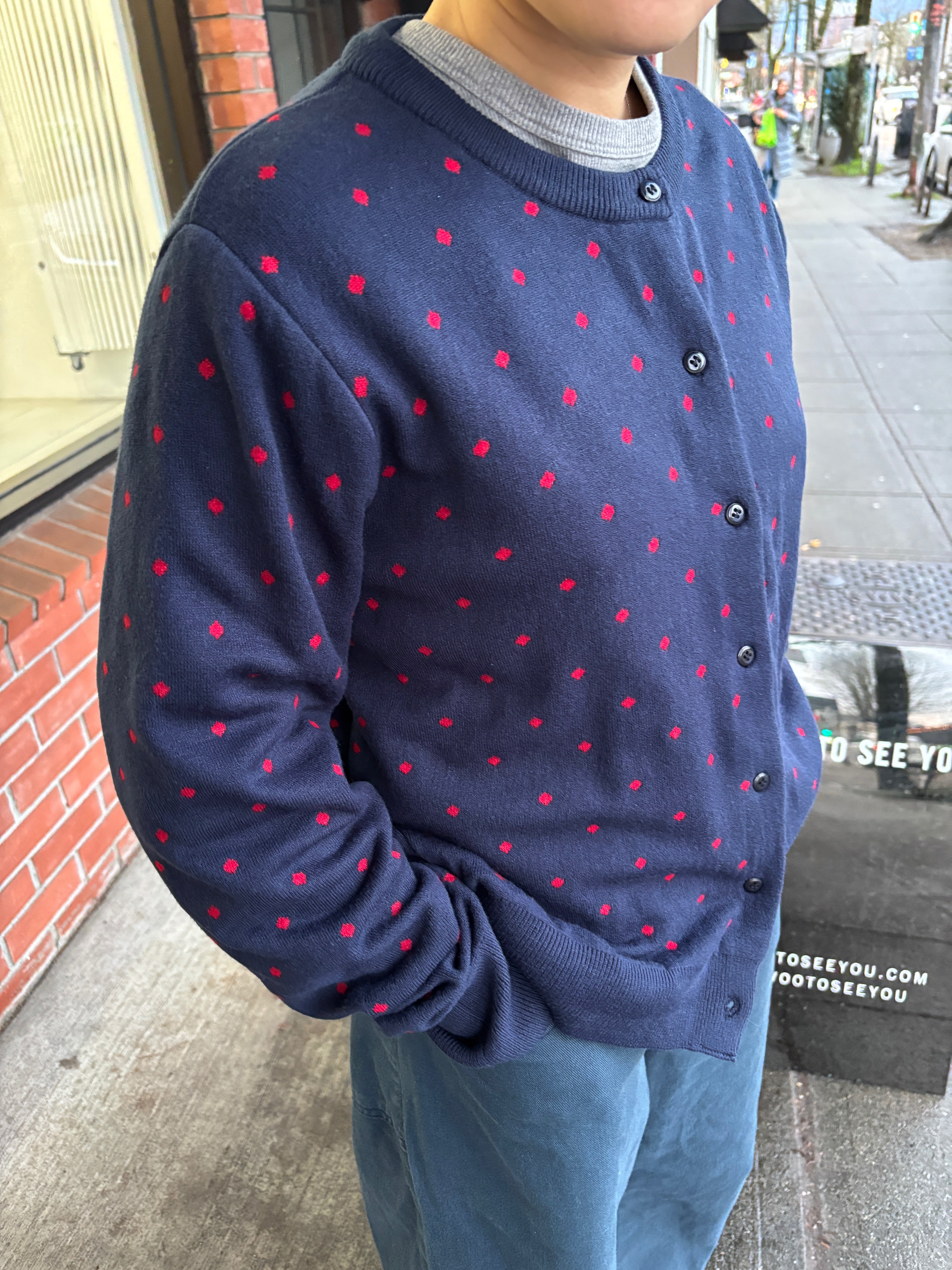 Adorable polka dot cardigan that's equal parts cozy and charming. This sweet layer features classic dots scattered across soft fabric, making it the perfect go-to piece for effortless style. Throw it on over your favourite outfit for an instant dose of cuteness and warmth.