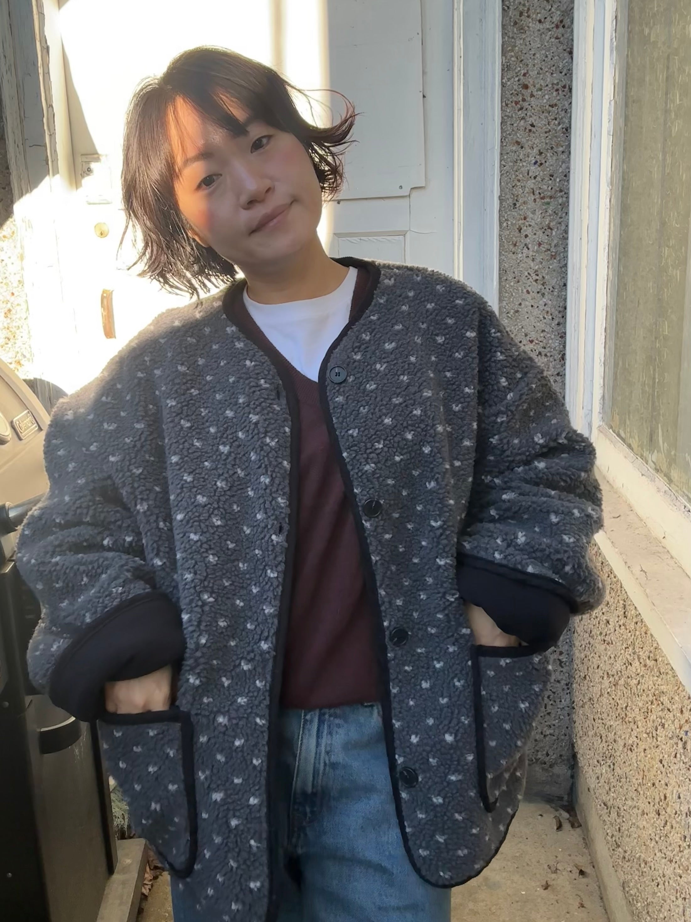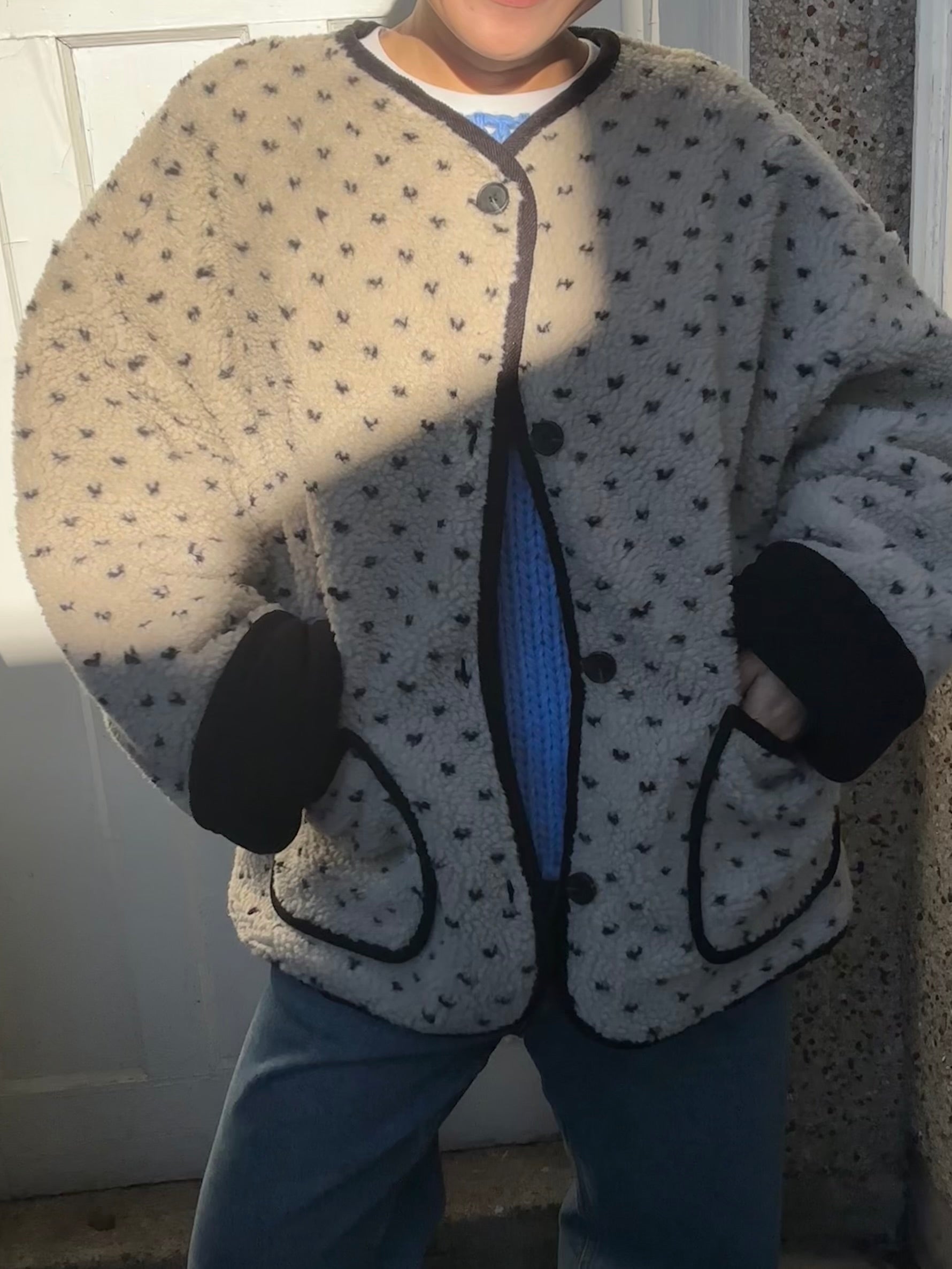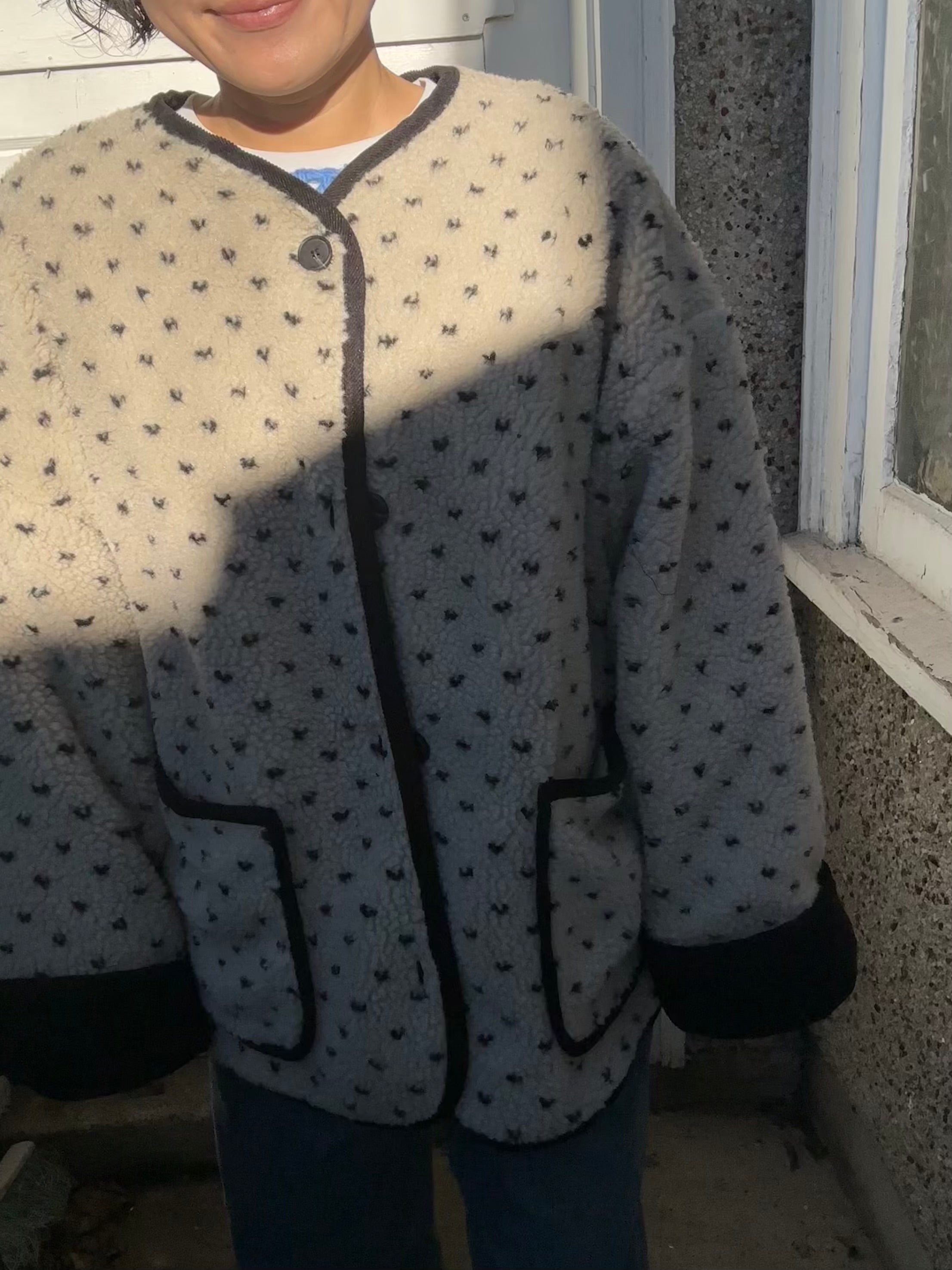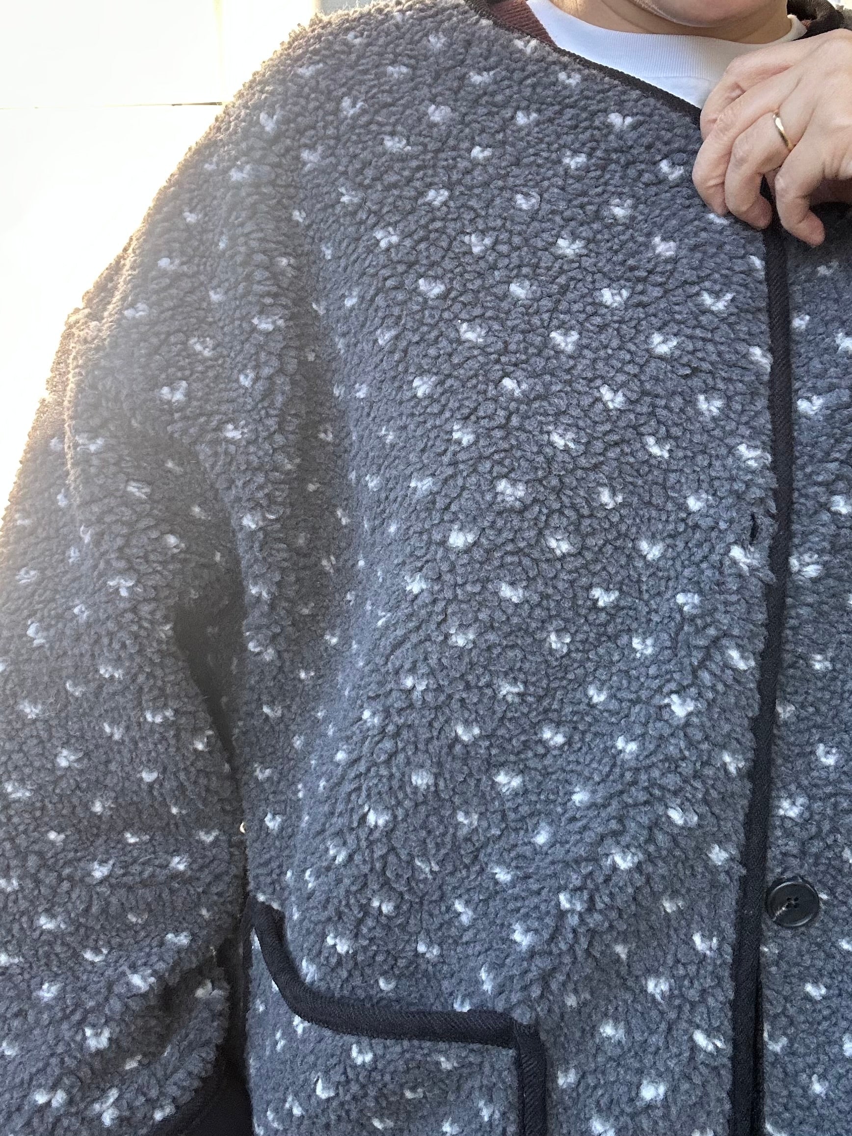 Oversized fleece jacket that's basically a hug you can wear. The plush fleece lining keeps you toasty warm, while two front pockets give you somewhere to stash your essentials (or just your hands). Simple button closure makes it easy to slip on and off. Perfect for cozy days when you want to feel snug without sacrificing style.