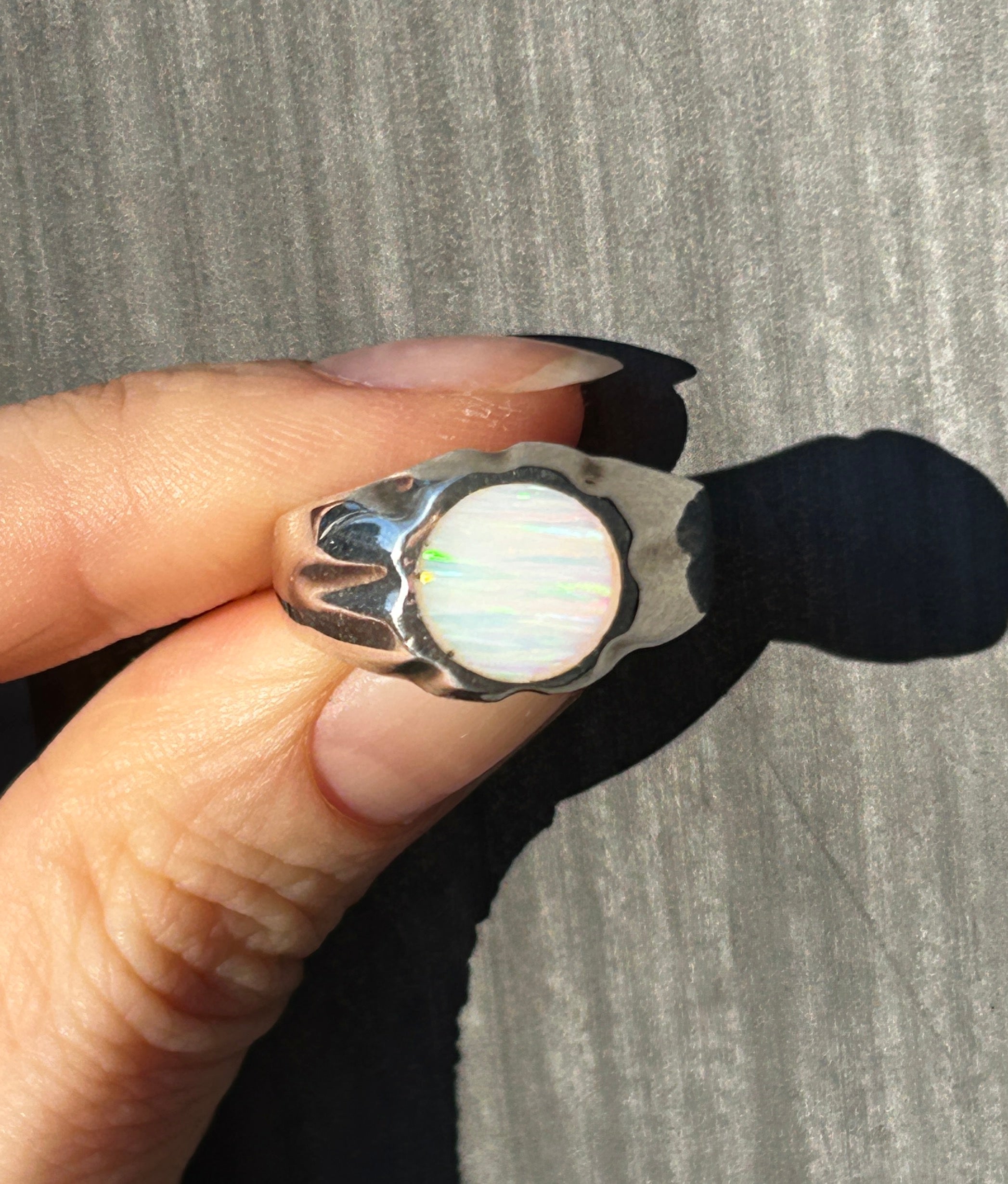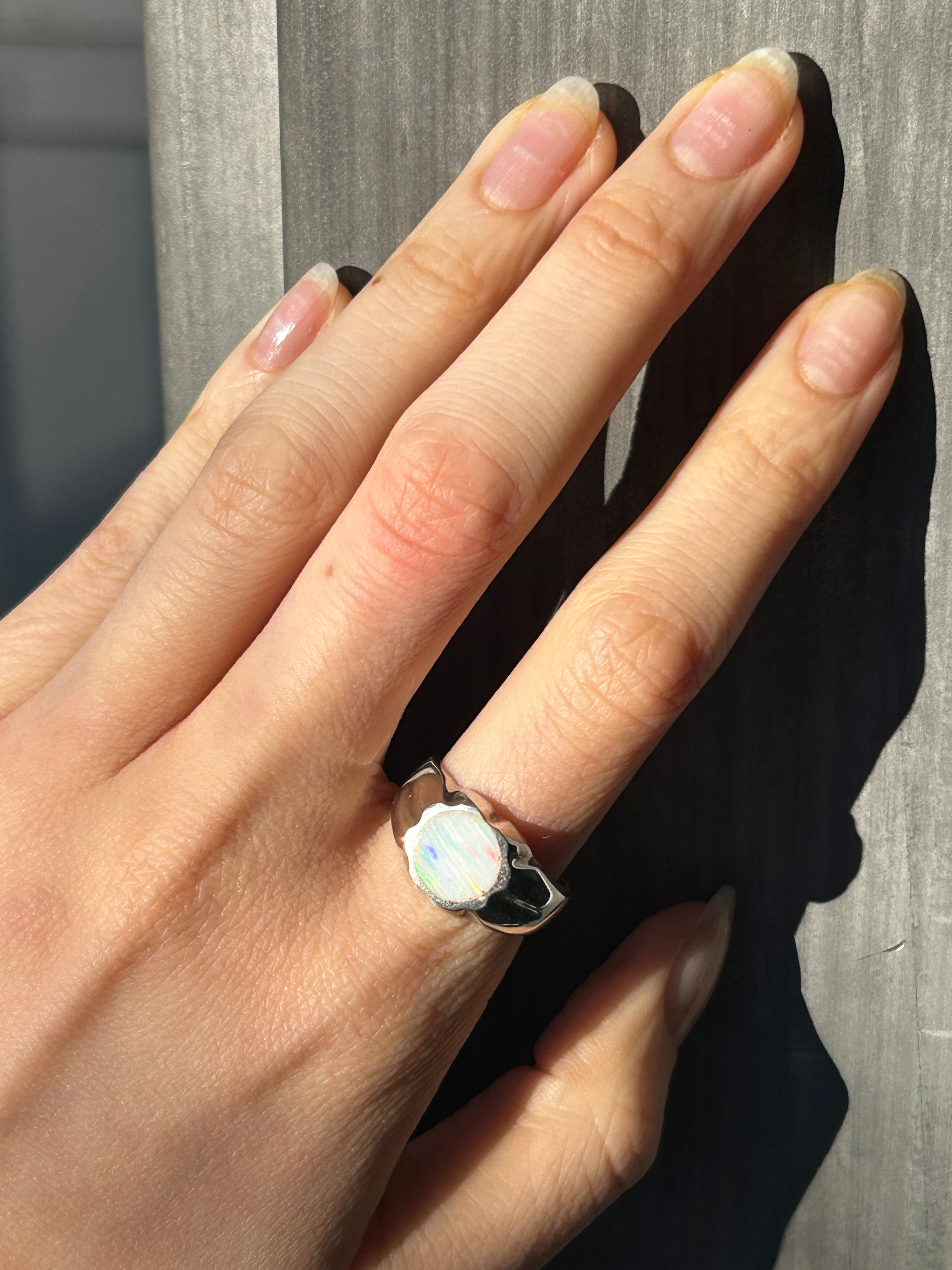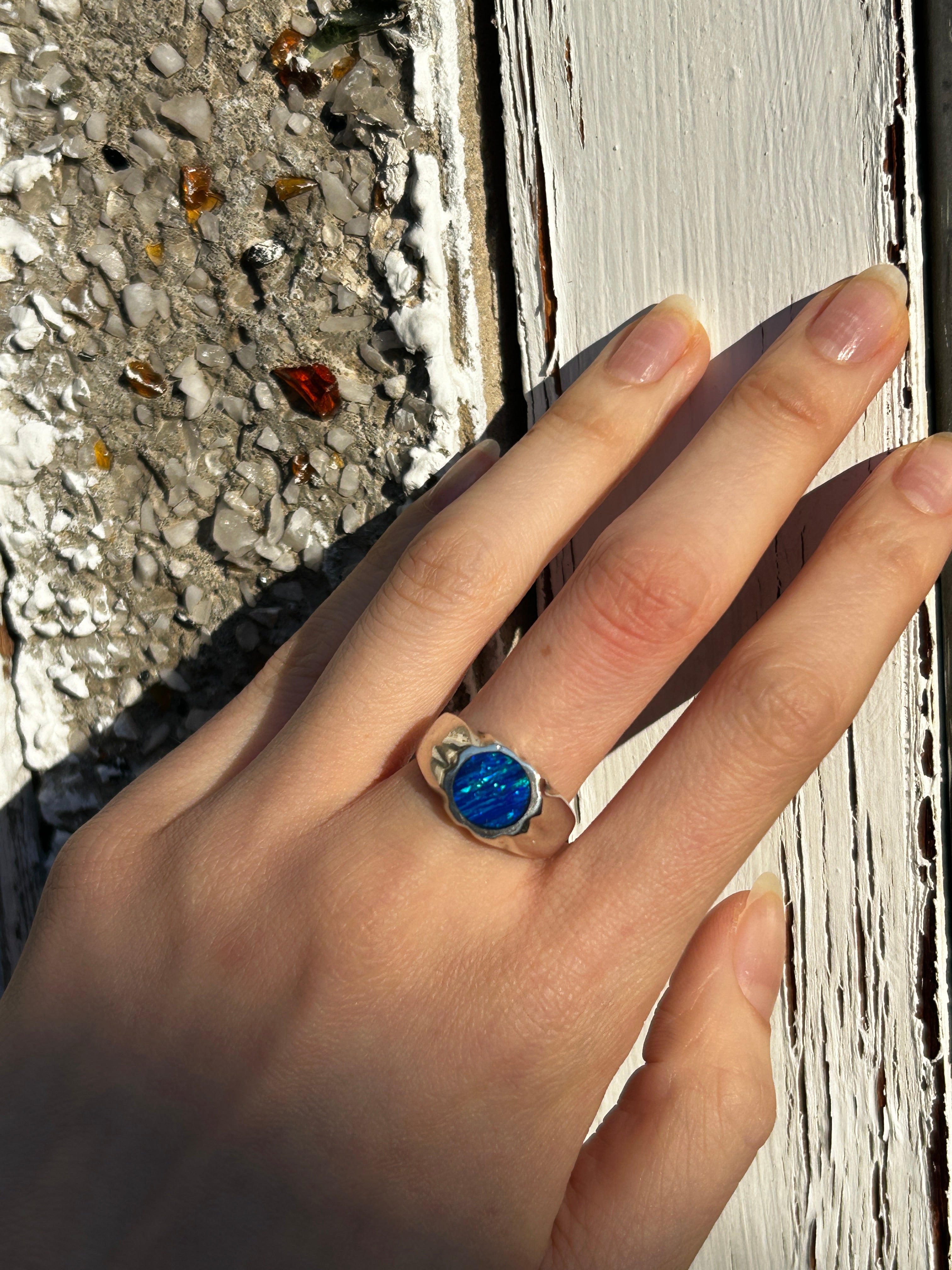 Oval shaped signet with stone set in. Hand crafted in CDMX, Mexico. Something timeless, yet bold with the opal gemstones. Beautiful, chunky silver to add to your collection.