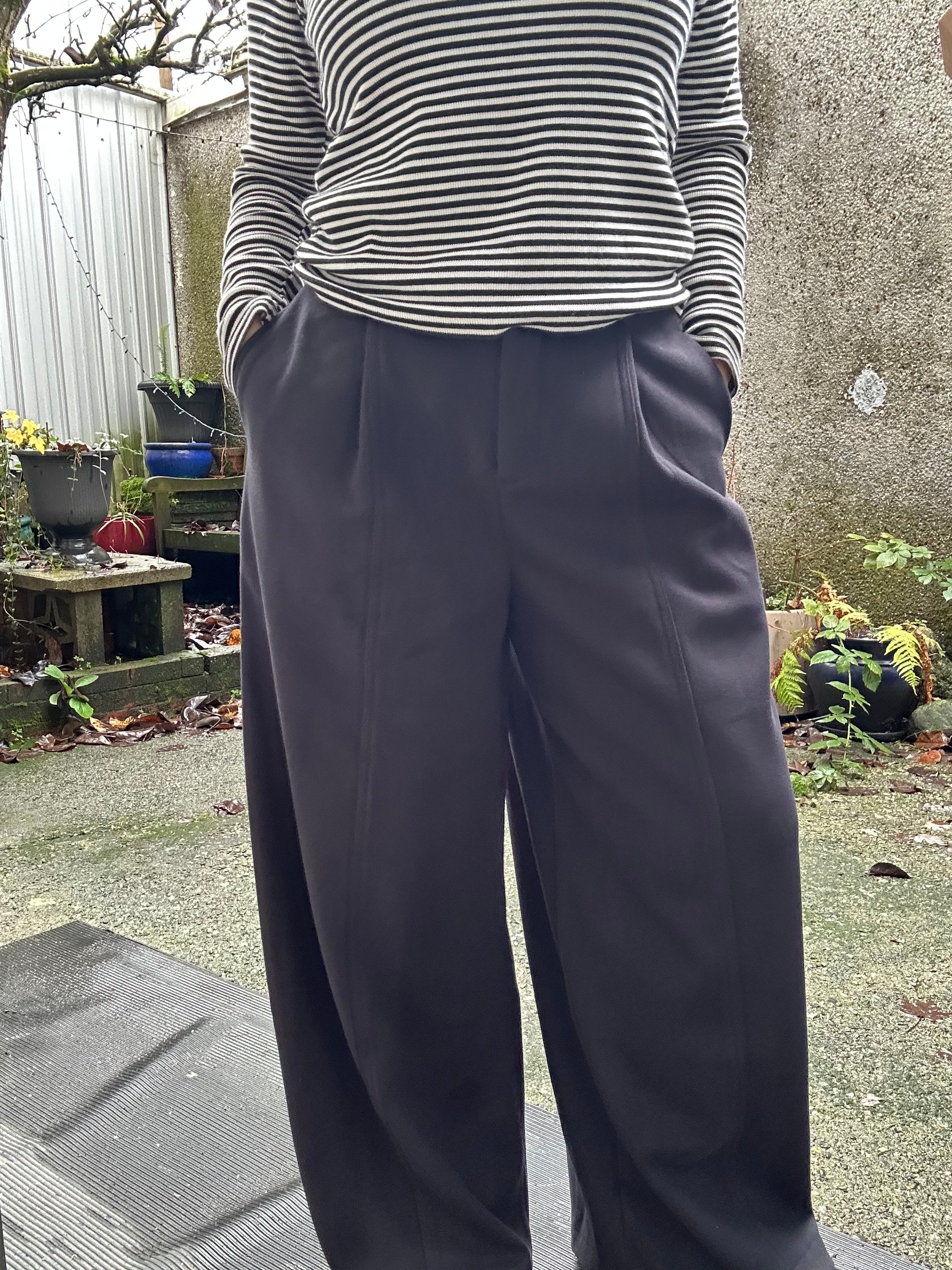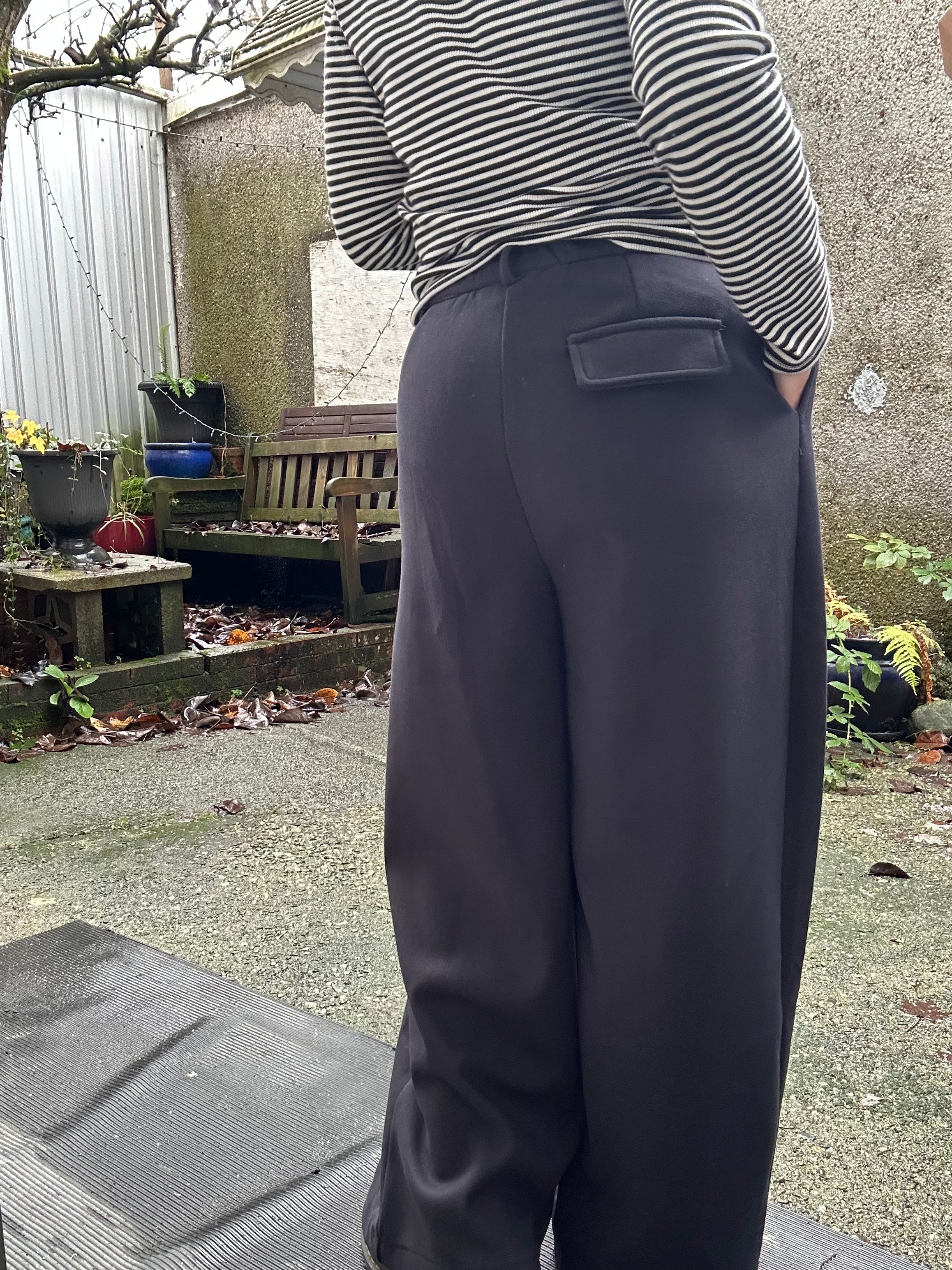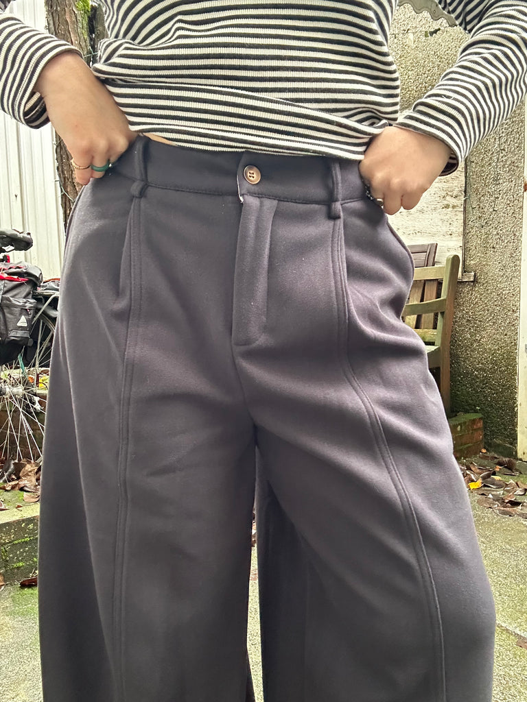 Meet your new favourite excuse to stay cozy all day long. These pants blend the best of both worlds—a sleek, sophisticated silhouette with the hug of brushed fleece that feels extra warm and cozy. Crisp center seams and practical slash pockets keep the polished look intact, while the elasticated back waist lets you move freely without any fuss. Comfort just got a serious style upgrade.