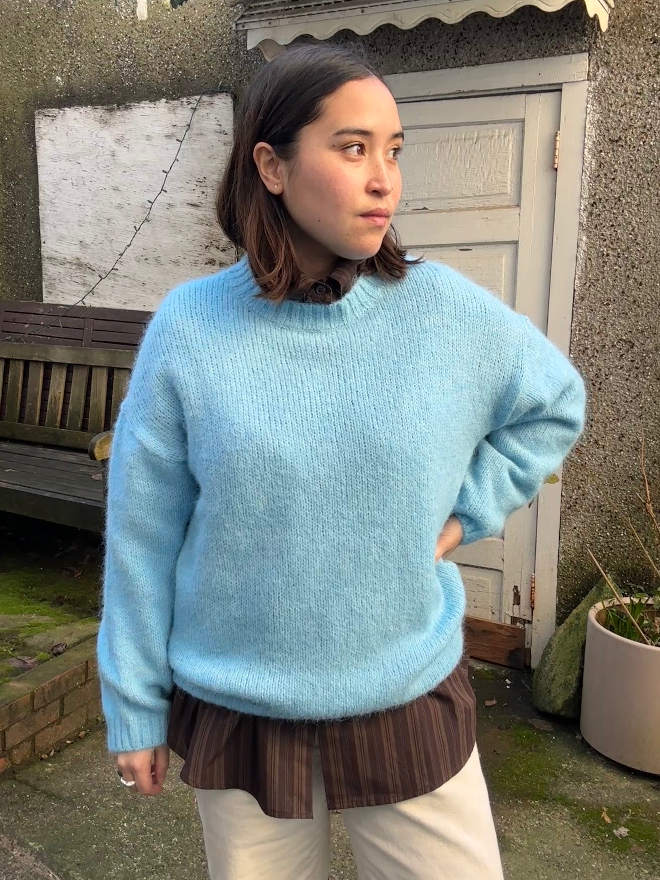 - One size - Ash pictured in oatmeal typically takes size XS, Bevy pictured typically in white and sky blue takes size M .