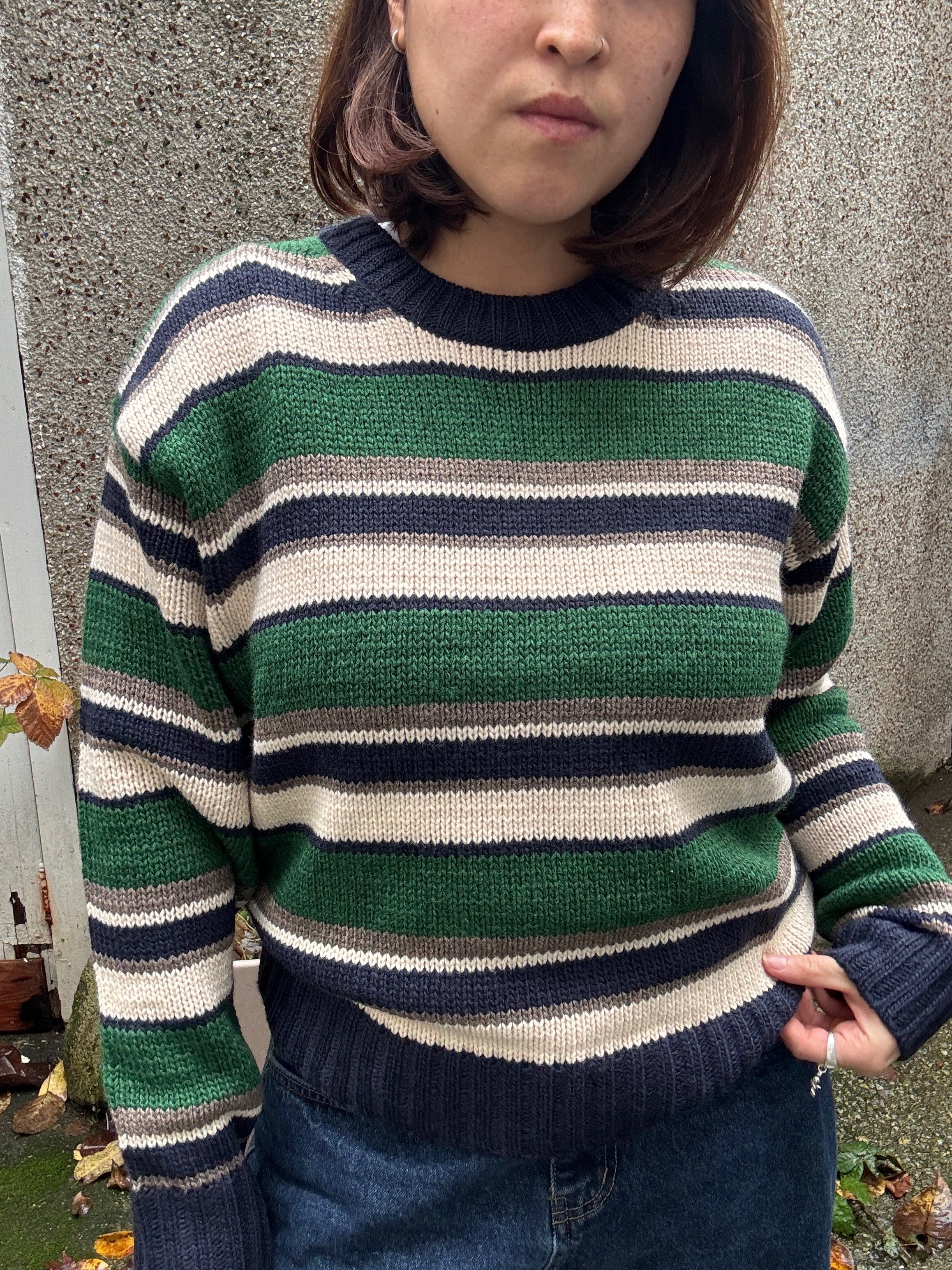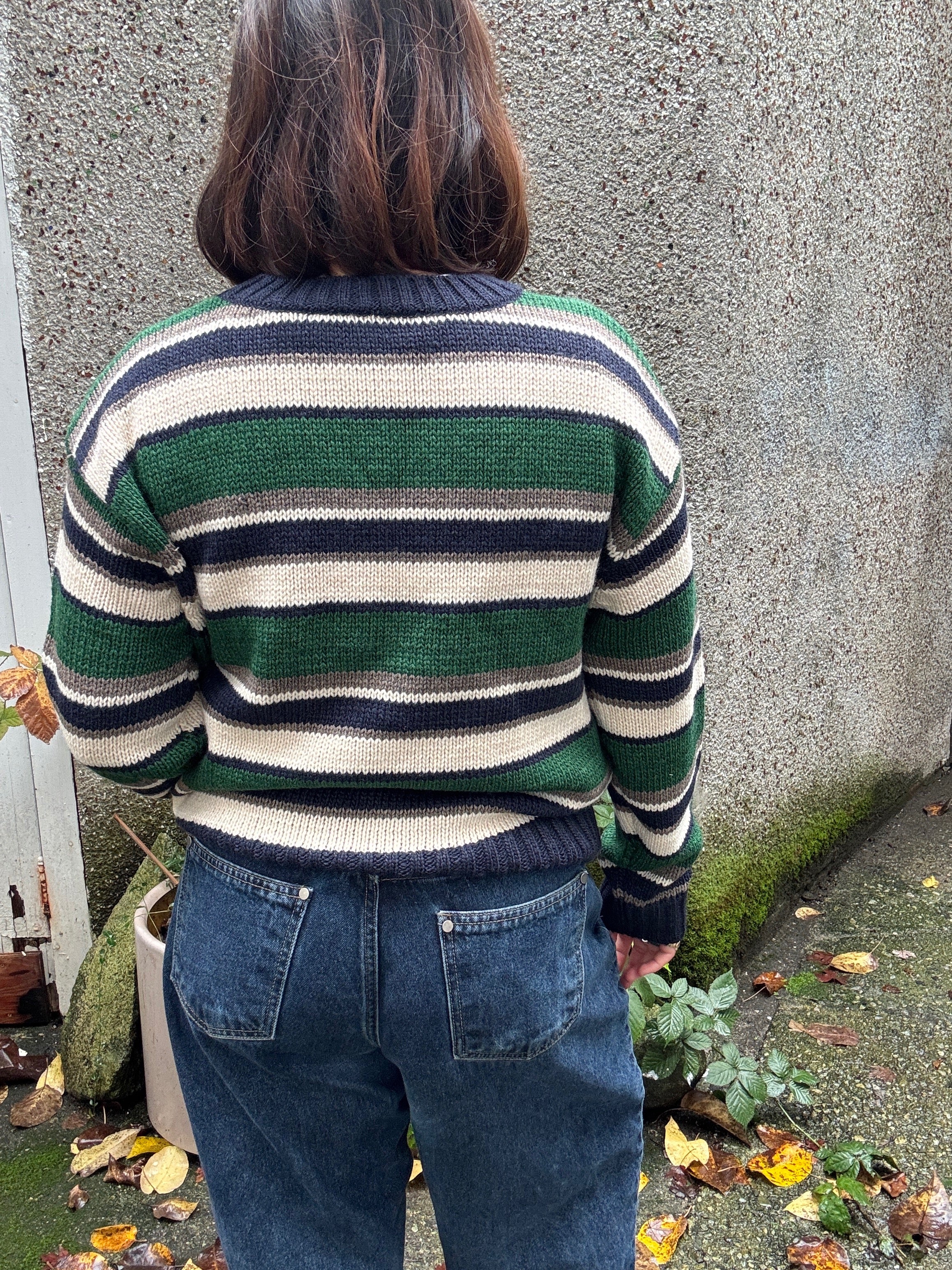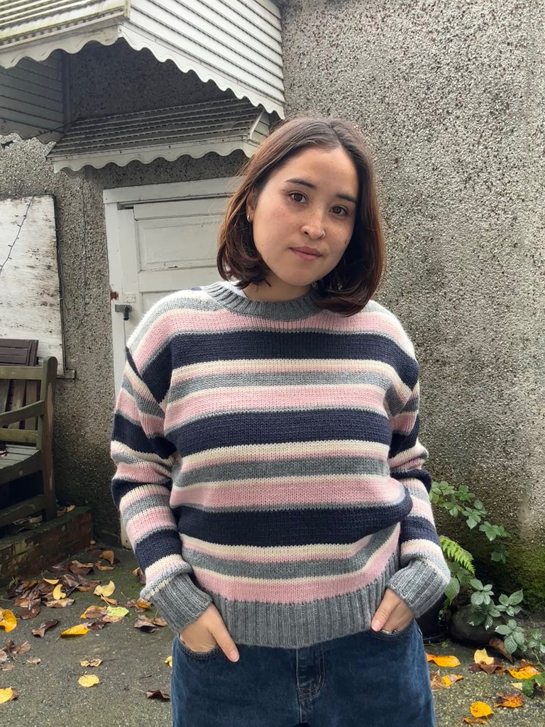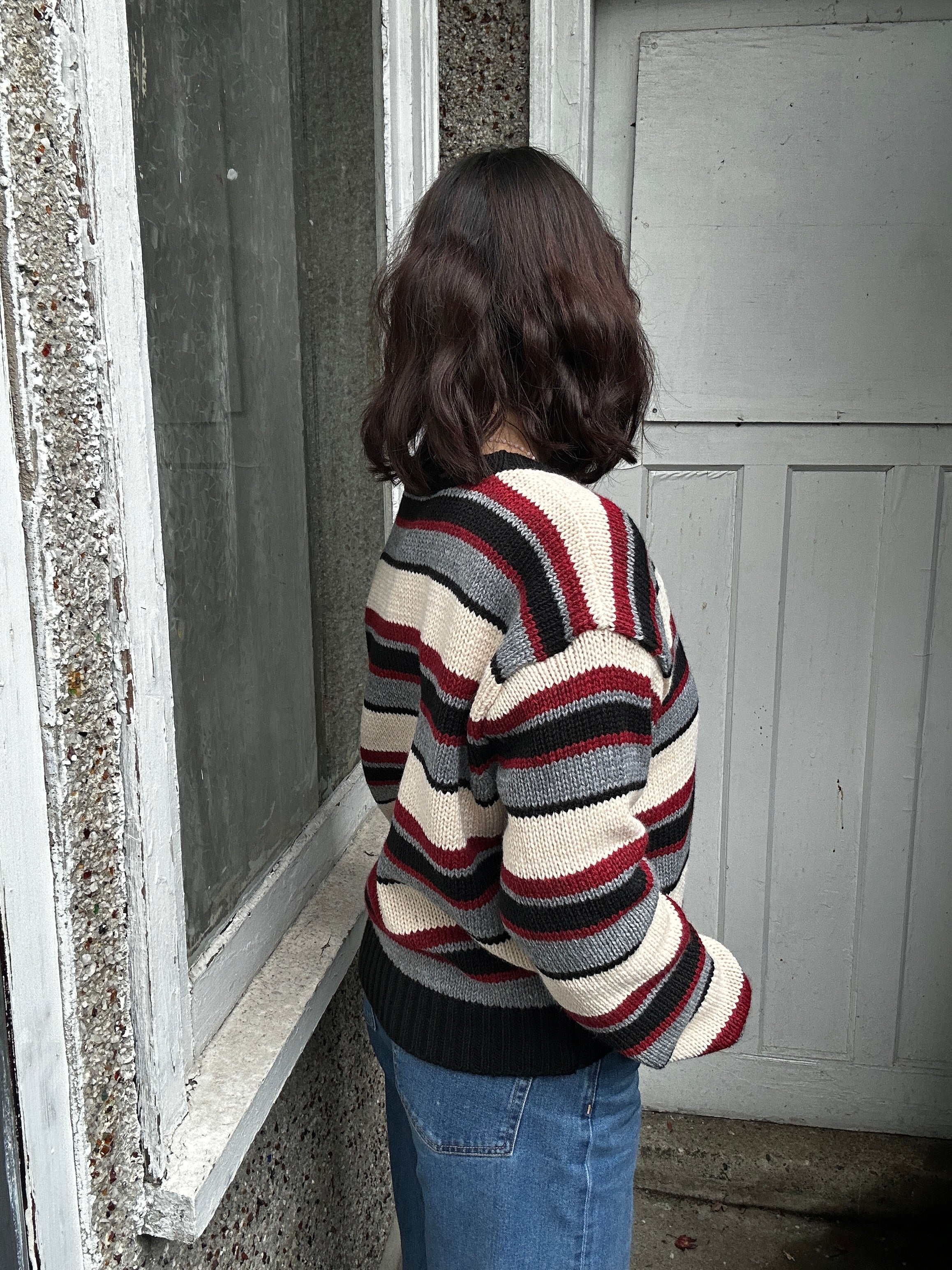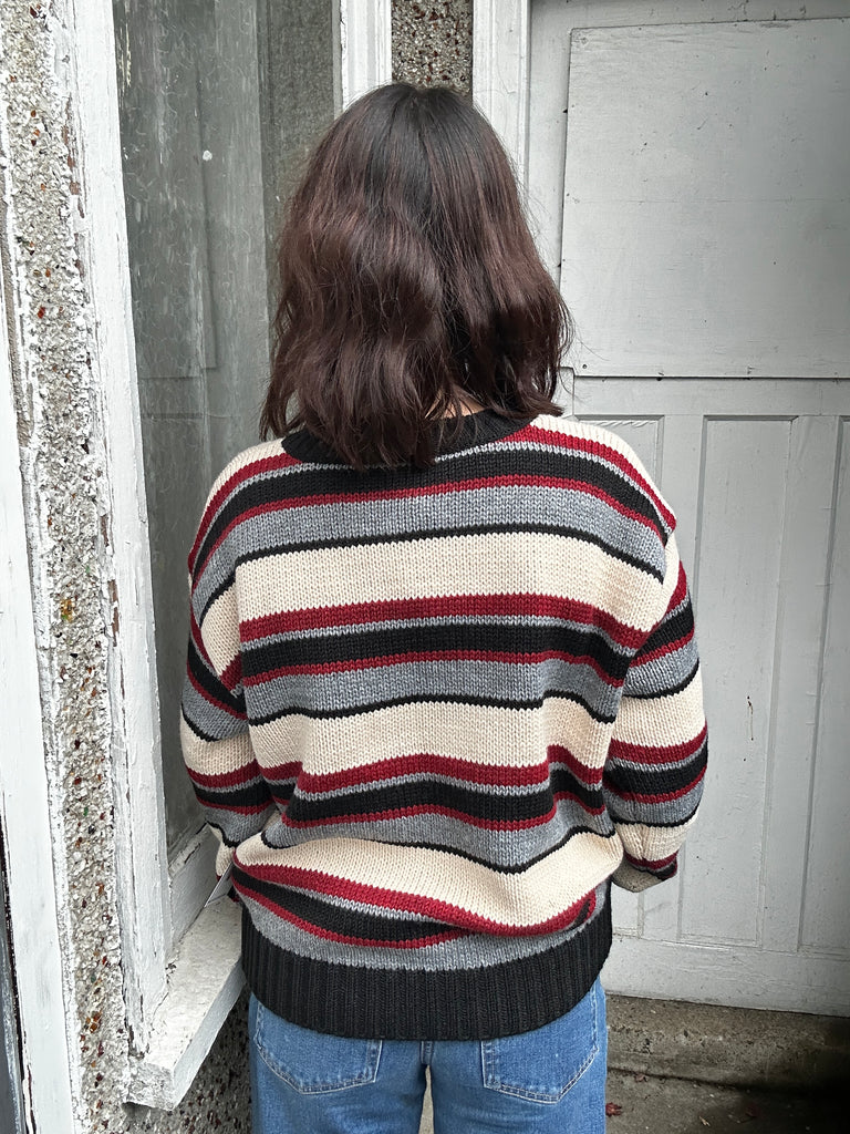 Wrap yourself in comfort with this adorable striped knit sweater that's equal parts cozy and timeless. The classic stripe pattern brings a playful charm to your everyday wardrobe, while the soft knit fabric keeps you snug and warm. Perfect for layering or wearing solo, this sweater is your go-to piece for effortless style that never goes out of fashion.