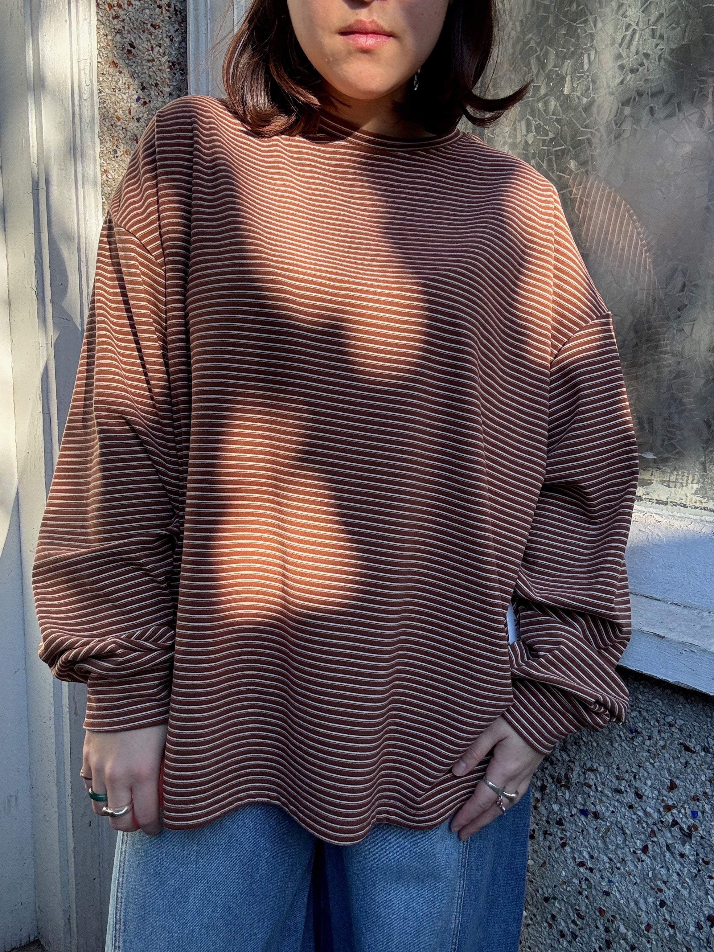 Effortlessly chic and oh-so-cozy, this striped long-sleeve top brings a touch of timeless style to your everyday rotation. The soft fabric feels like a gentle hug against your skin, while the classic stripes add visual interest without trying too hard. Perfect for layering or wearing solo, it's the kind of piece that works with everything in your closet and makes getting dressed feel like play.