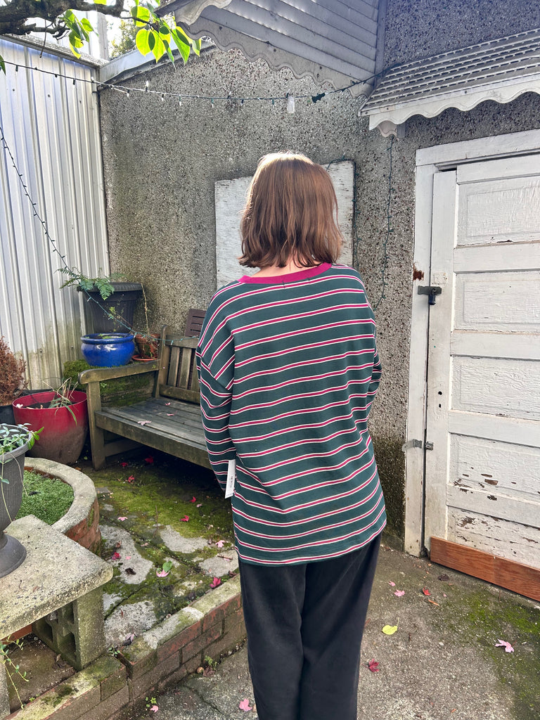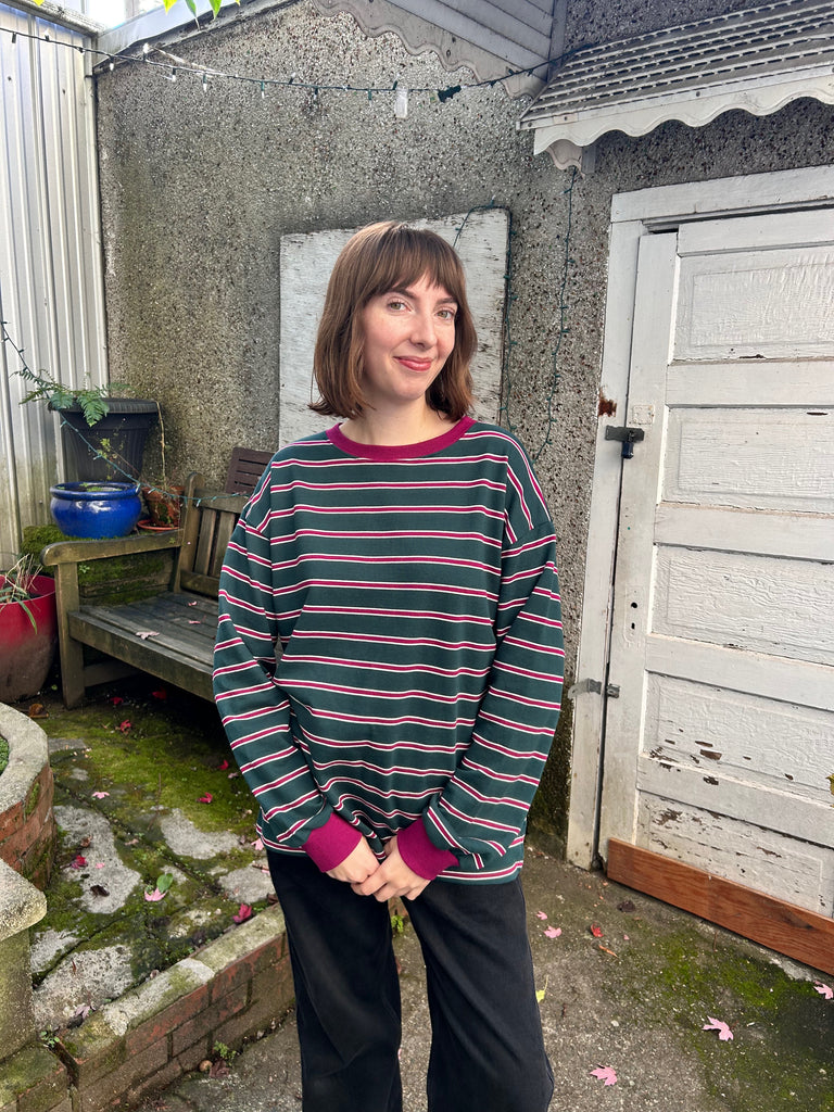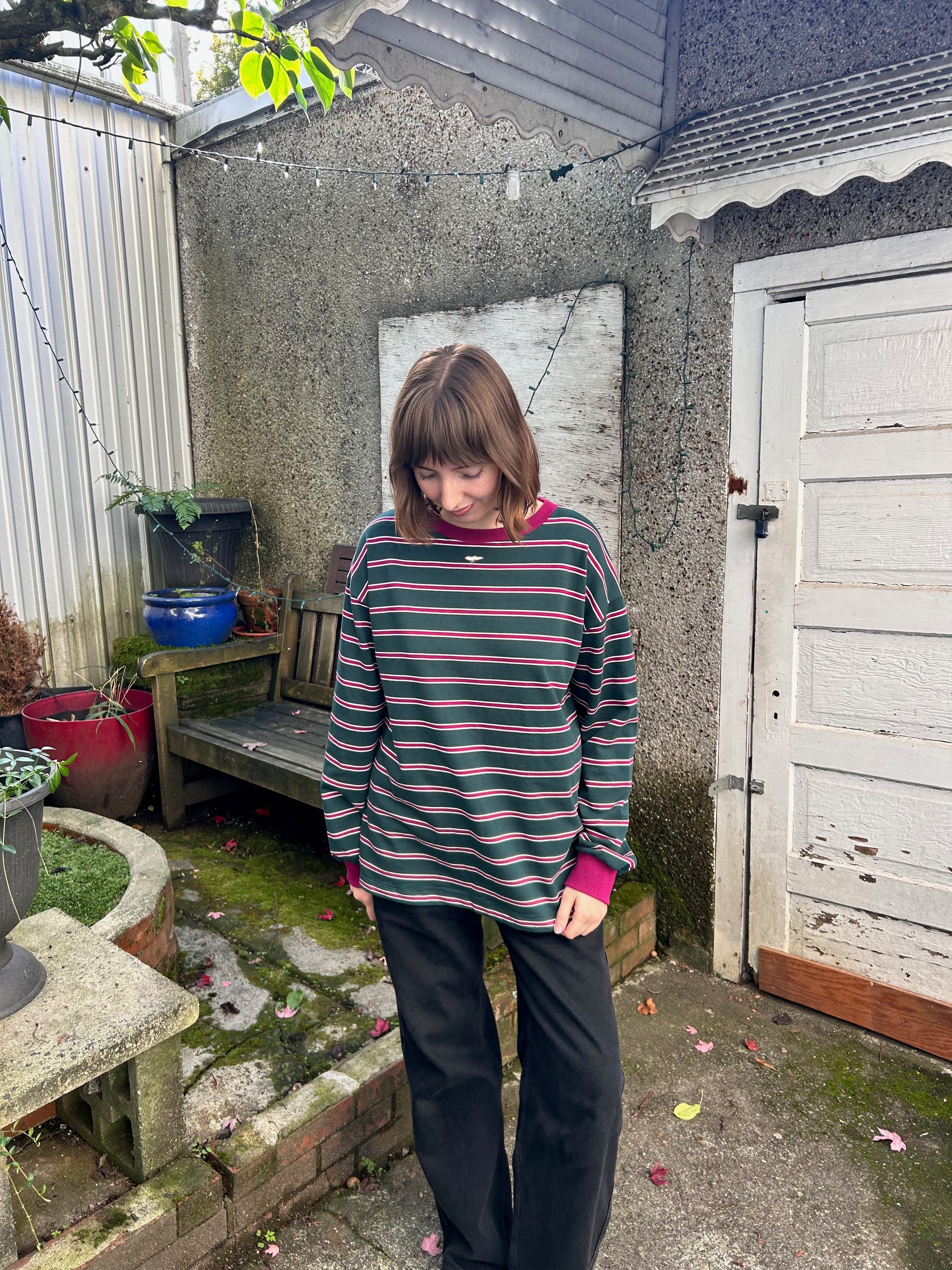 This perfectly oversized striped crew made from soft terry cotton features a fun contrast ribbed neckline and sleeve cuffs. Its relaxed fit and cozy fabric make it your new go-to for effortless layering.