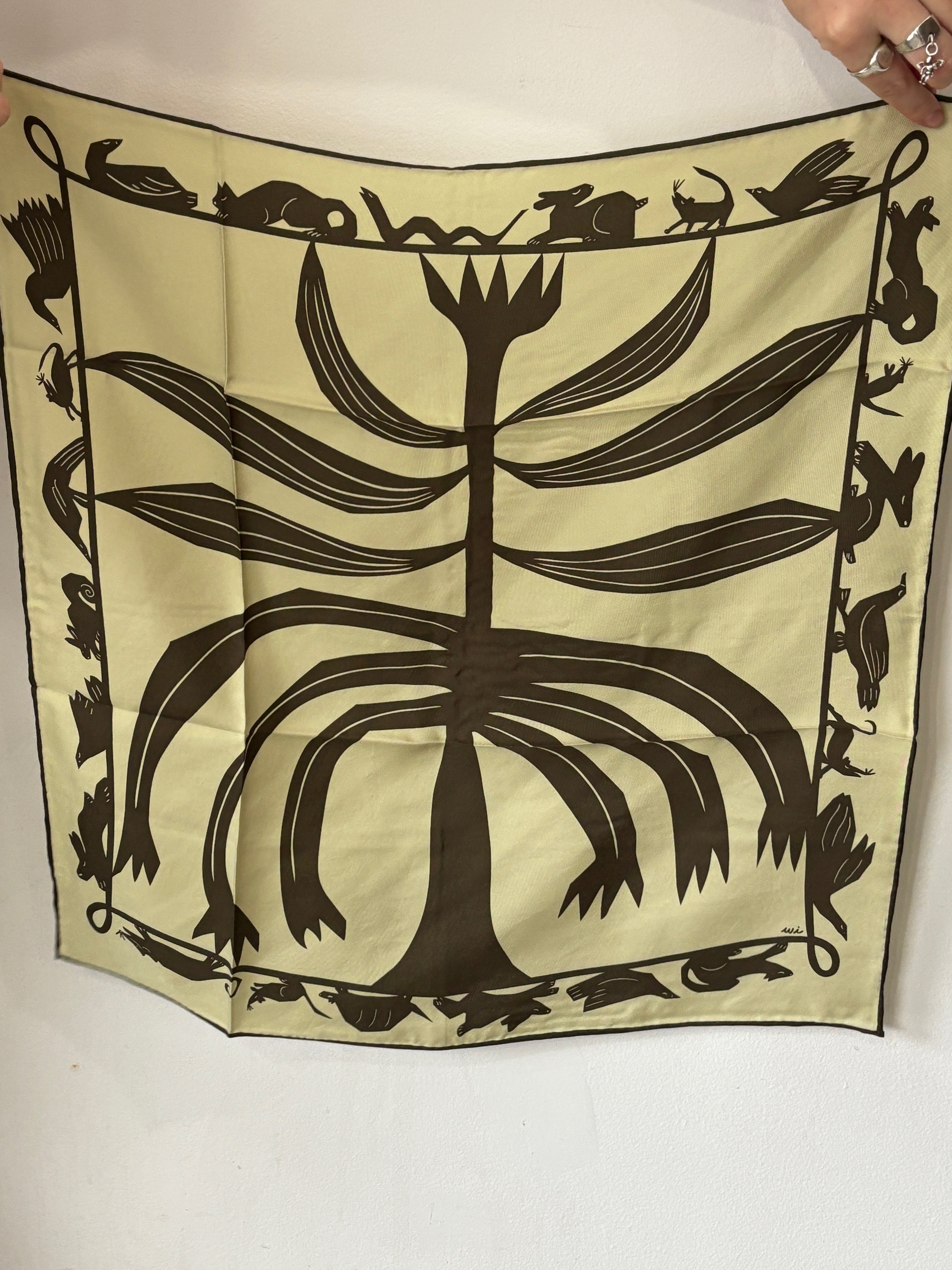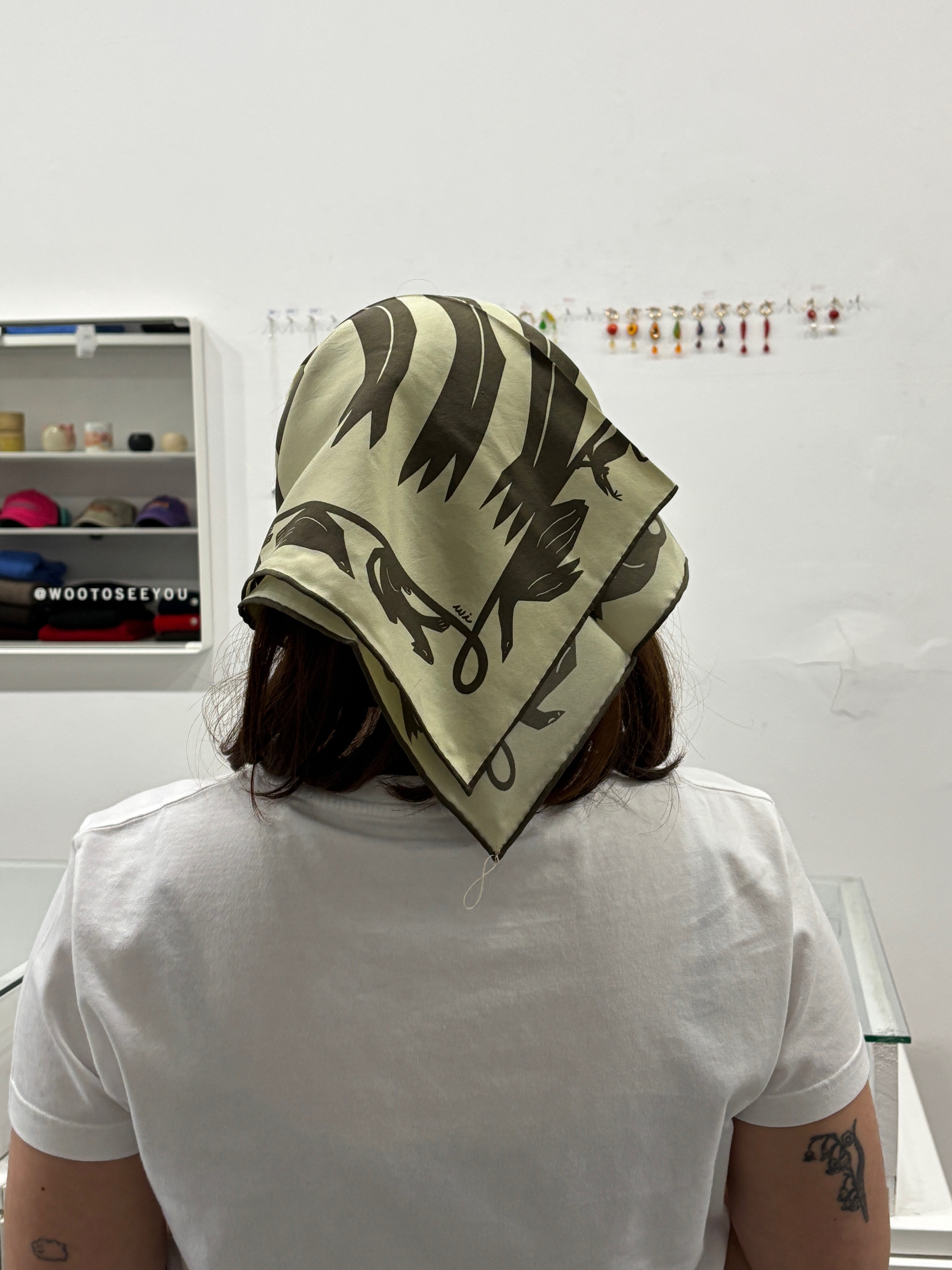 Winona Irene Familiar 100% Silk Scarf Bandana Hand Printed with Animals