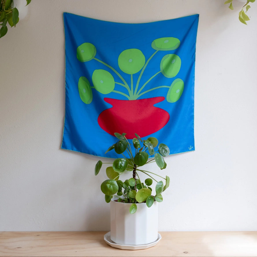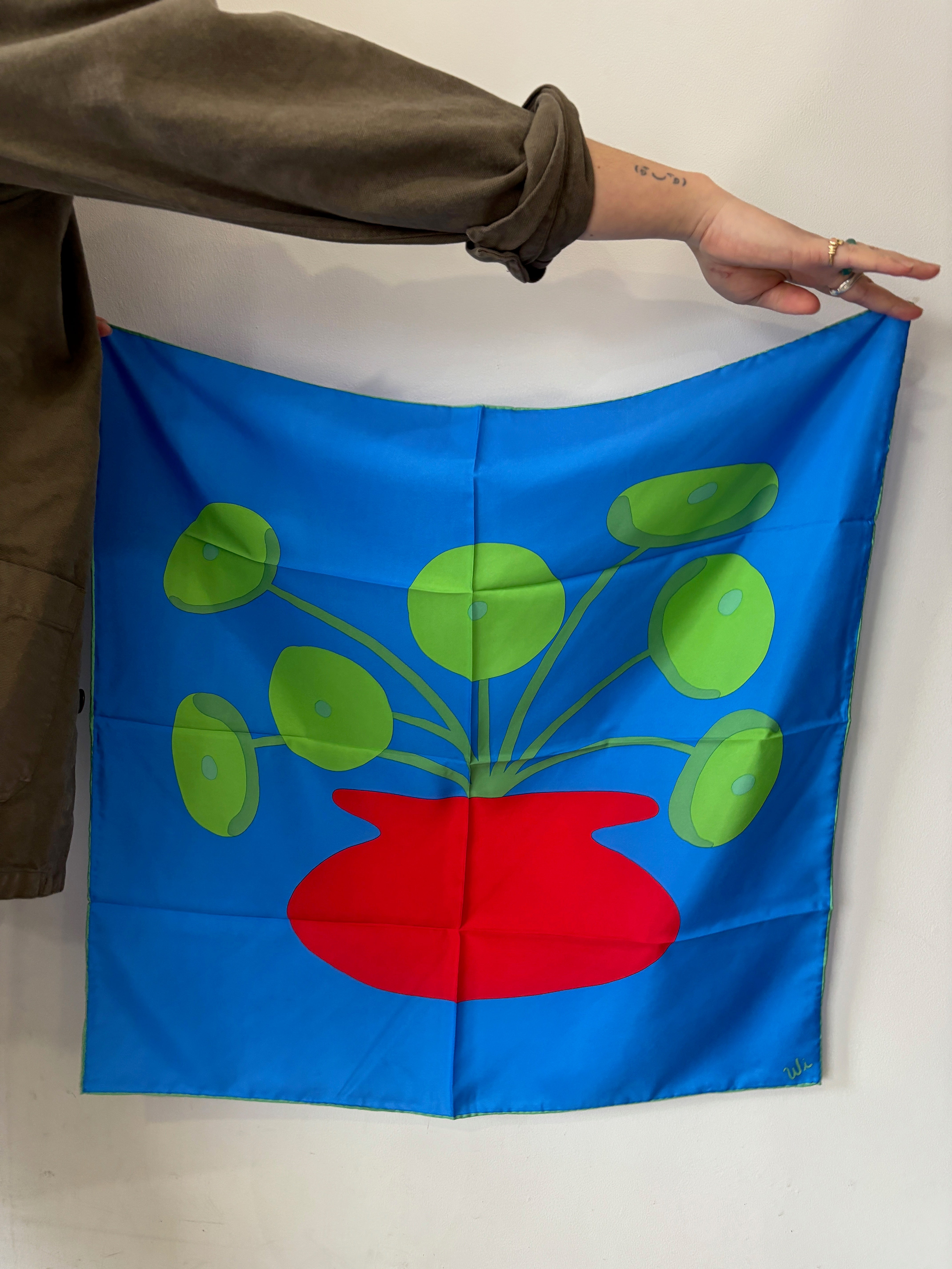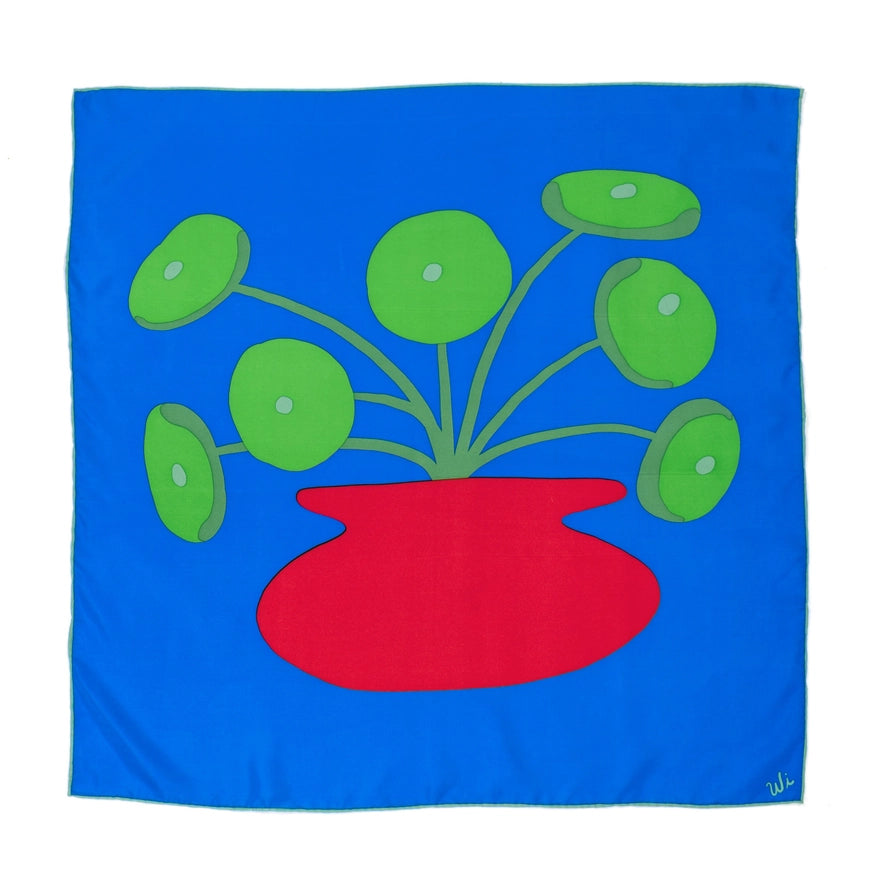 Printed on lustrous silk habotai, this iconic houseplant adds a modern touch to any outfit. Hand rolled hem. Each scarf is hand-printed, minor variation may occur.