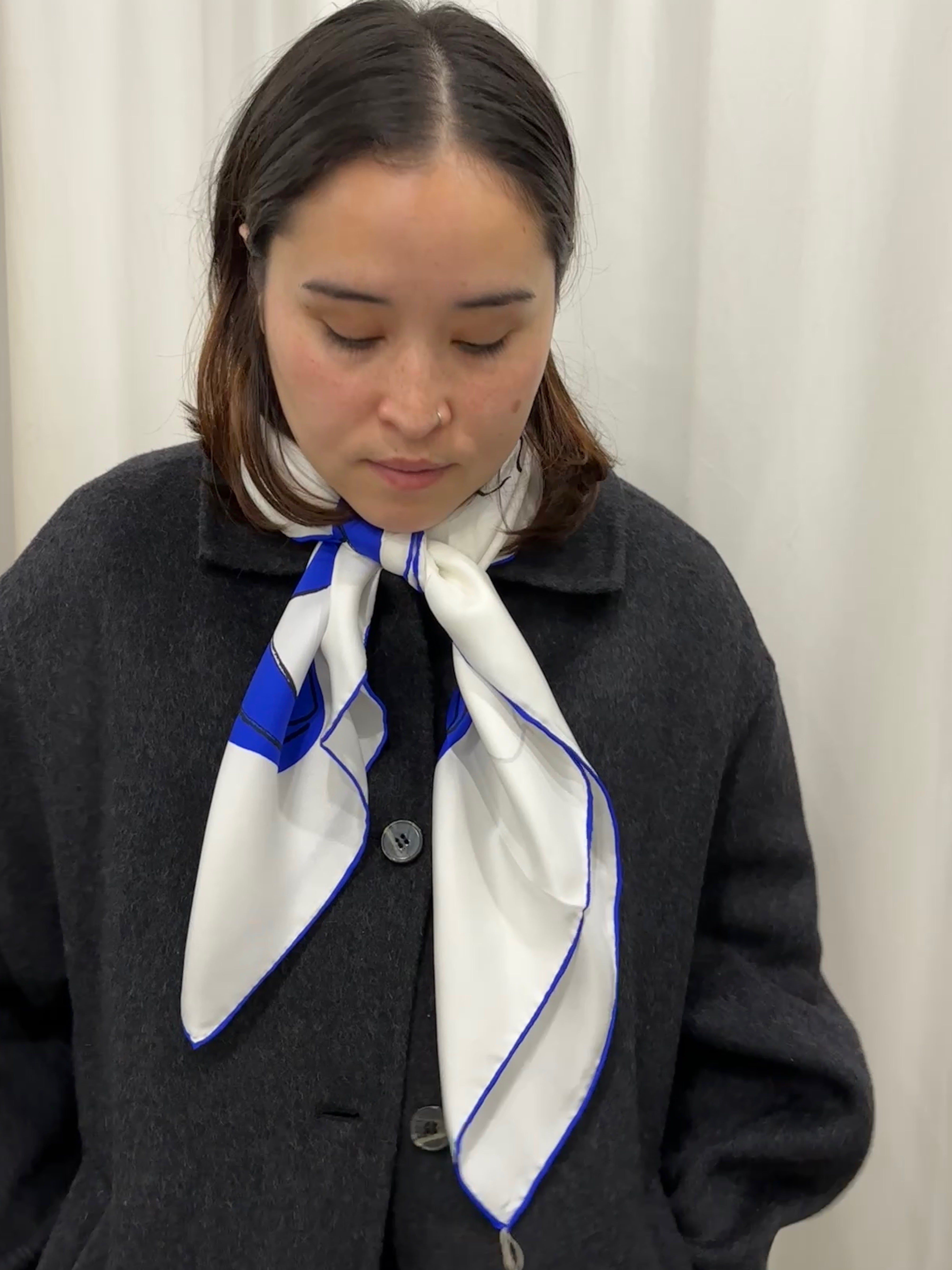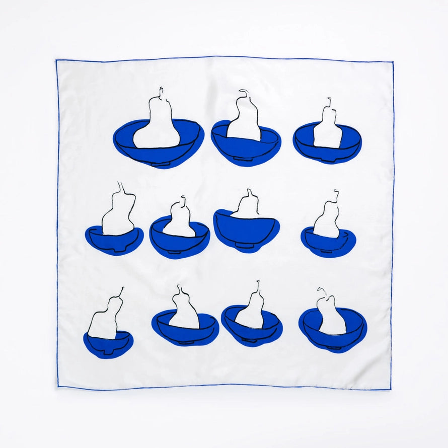 Beautiful pear and bowl still life design. Each scarf is hand-printed, minor variation may occur.