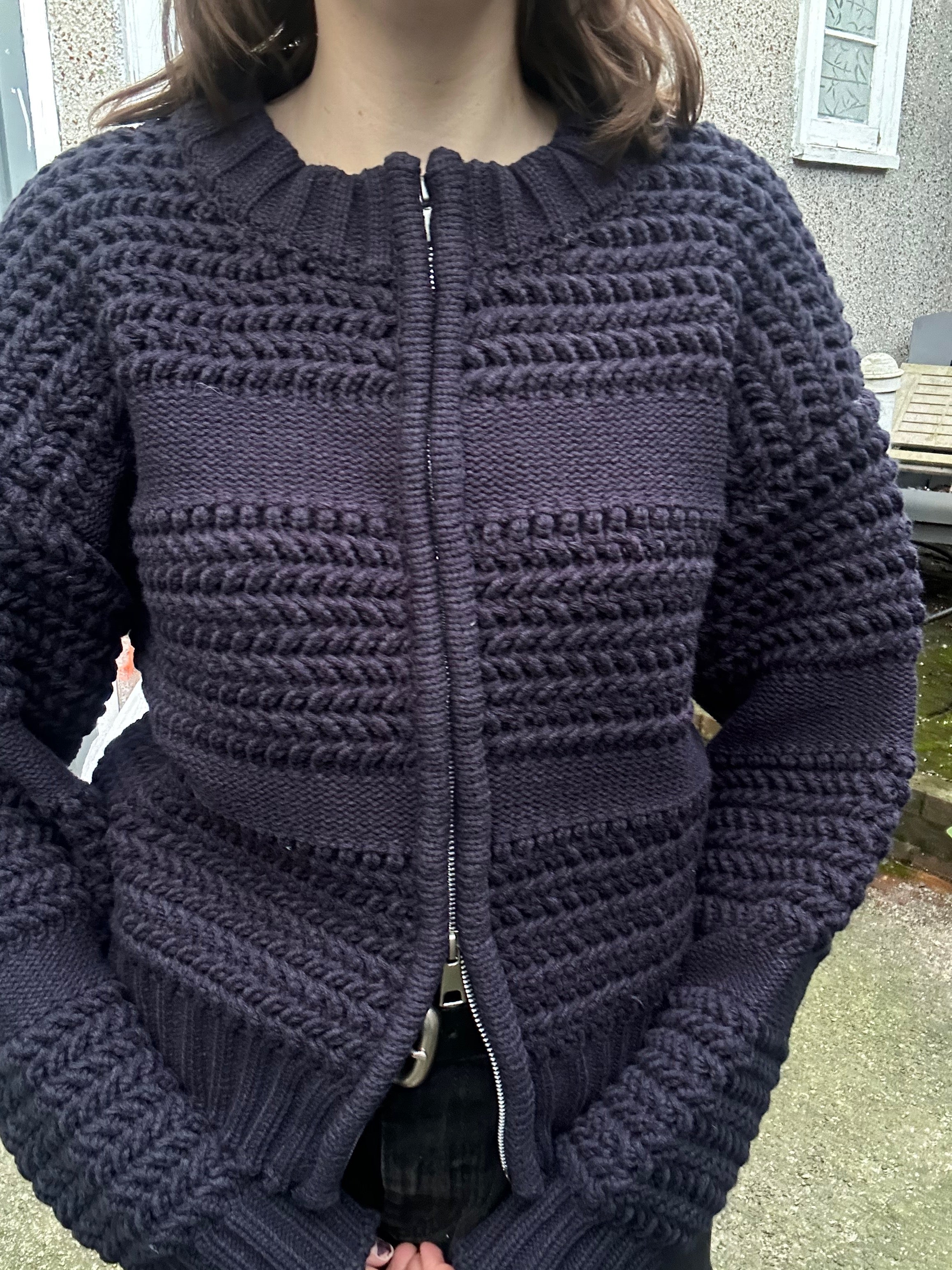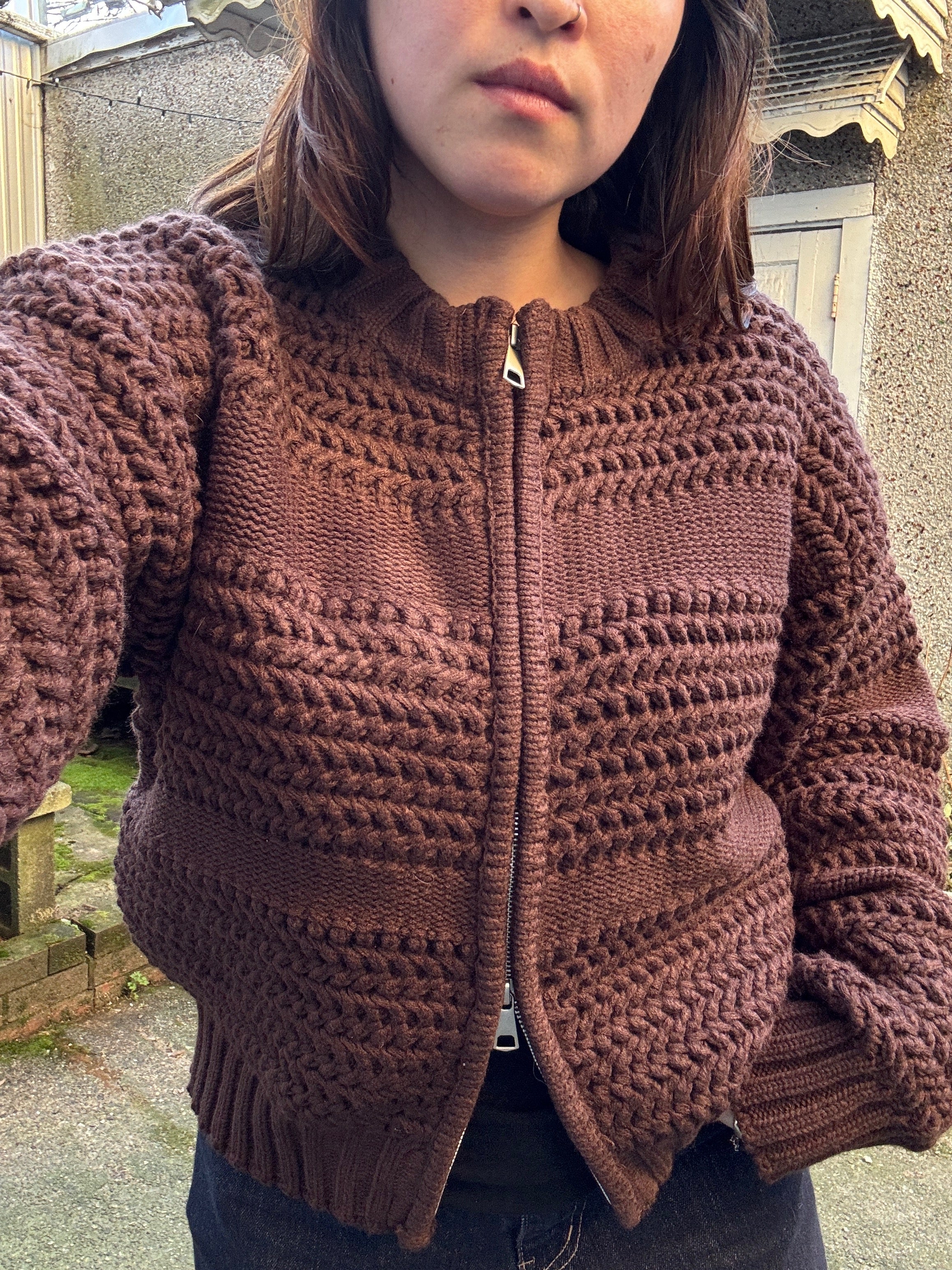 Wrap yourself in pure coziness with this chunky knit zip-up sweater. The two-way zipper offers styling versatility. Made from thick, plush cotton blend material, it's designed to keep you toasty warm while looking effortlessly cool.