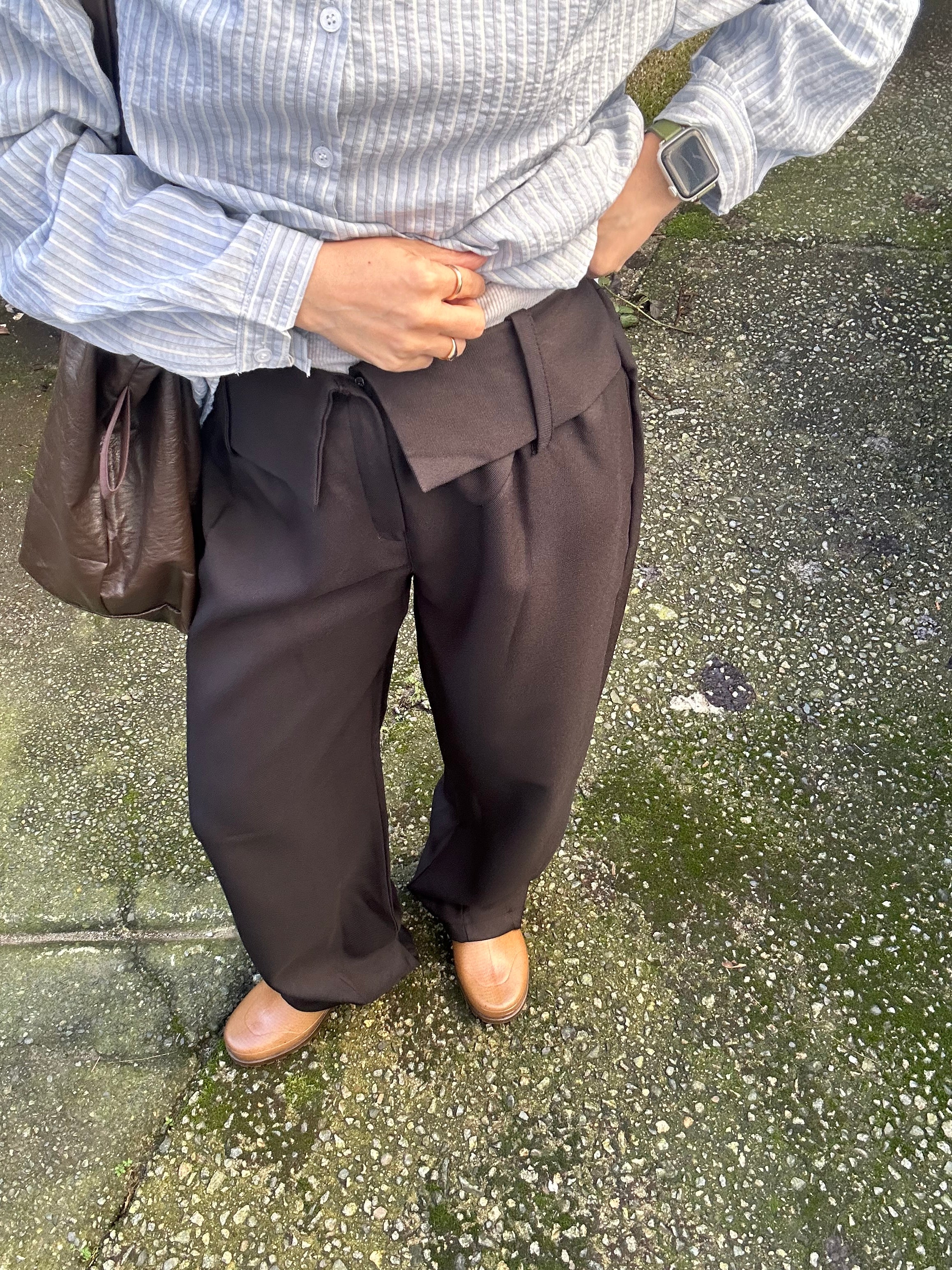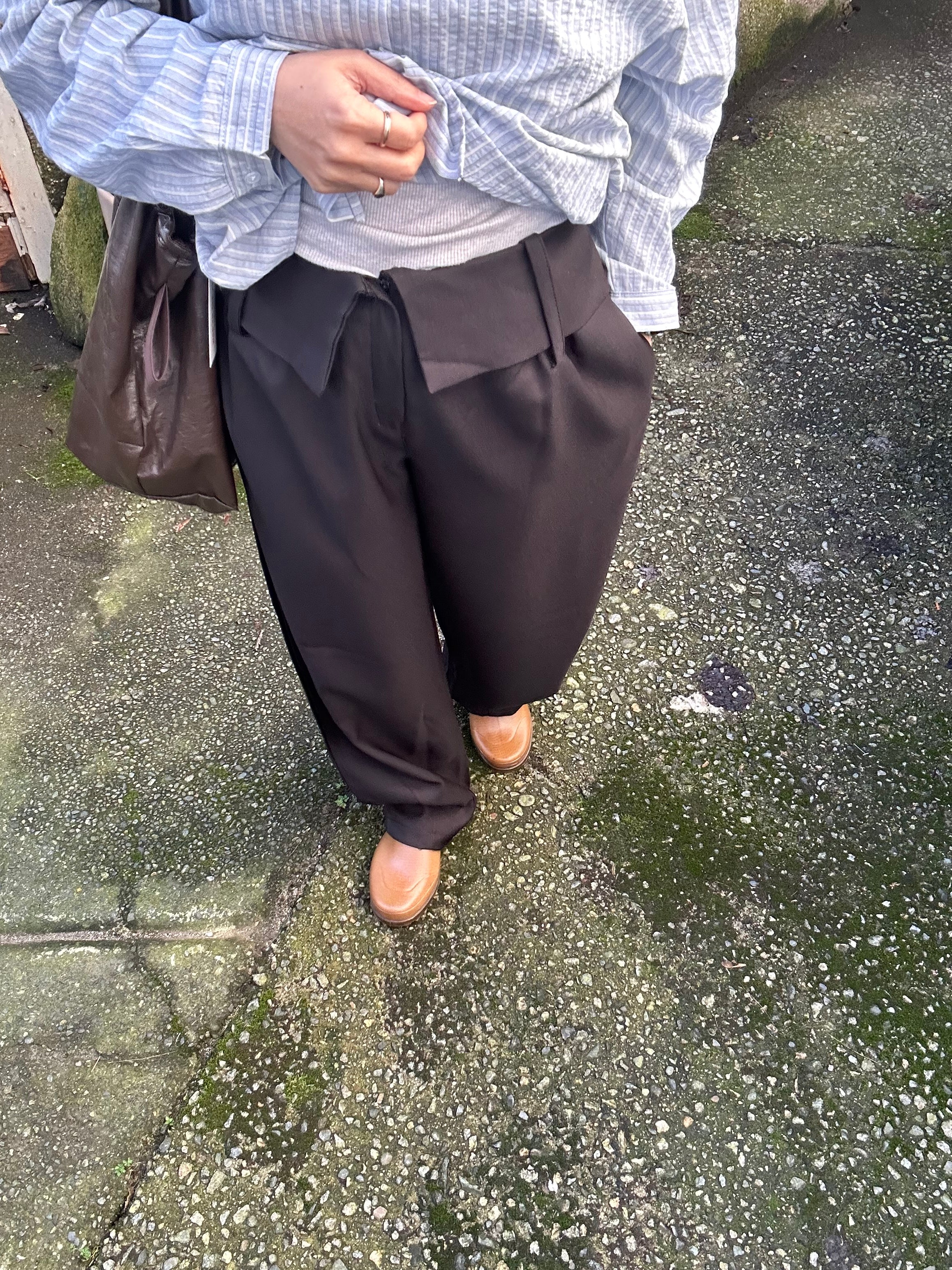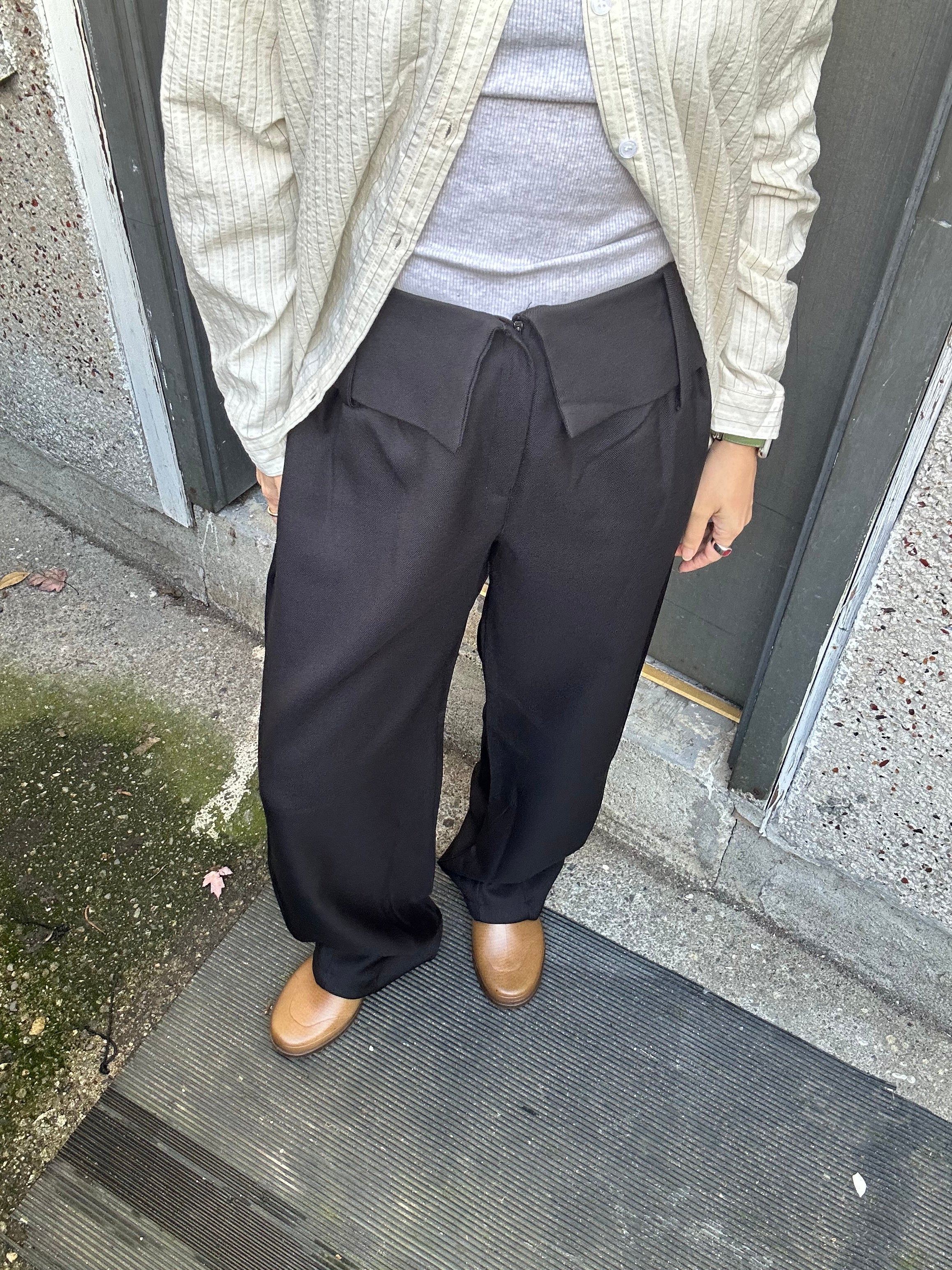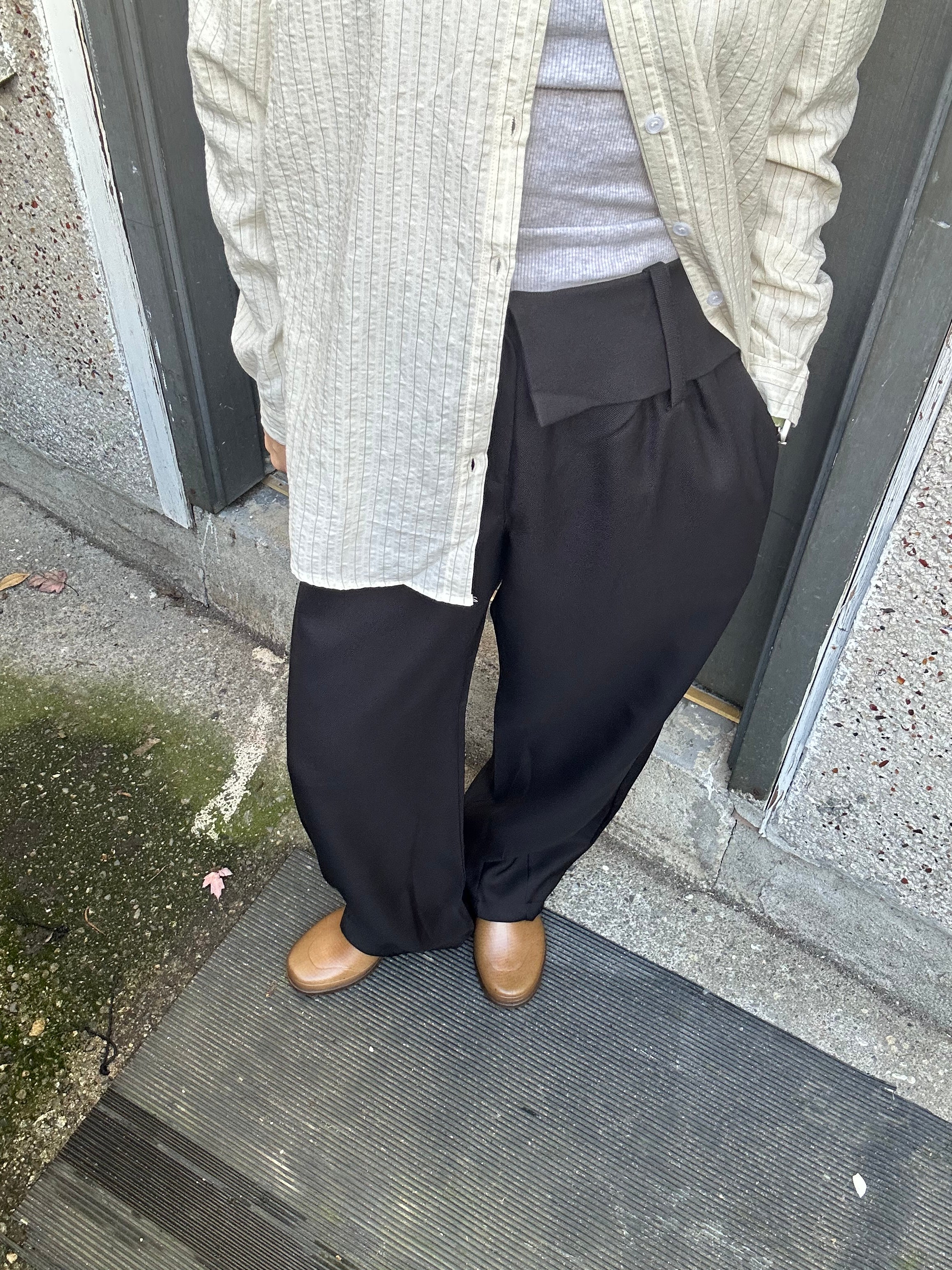 Meet your new favorite pair of pants! These stylish trousers feature a waistband that keeps you feeling comfortable, paired with a cheeky front ruffle that adds instant personality to any outfit. Whether you're dressing up for a night out or keeping it casual, this playful design brings a touch of fun to your wardrobe. The perfect blend of comfort and flair—because who says pants can't be a little flirty?