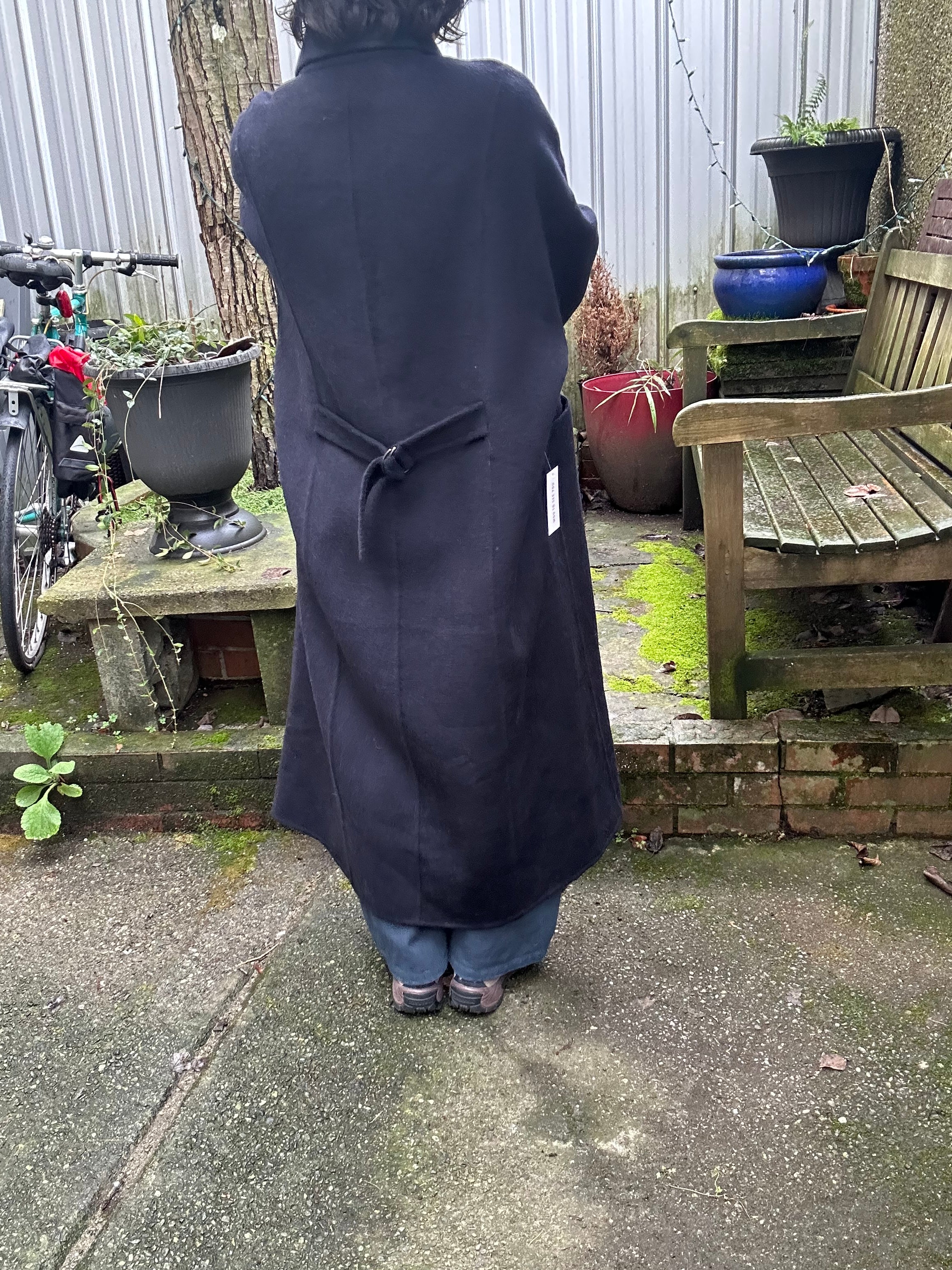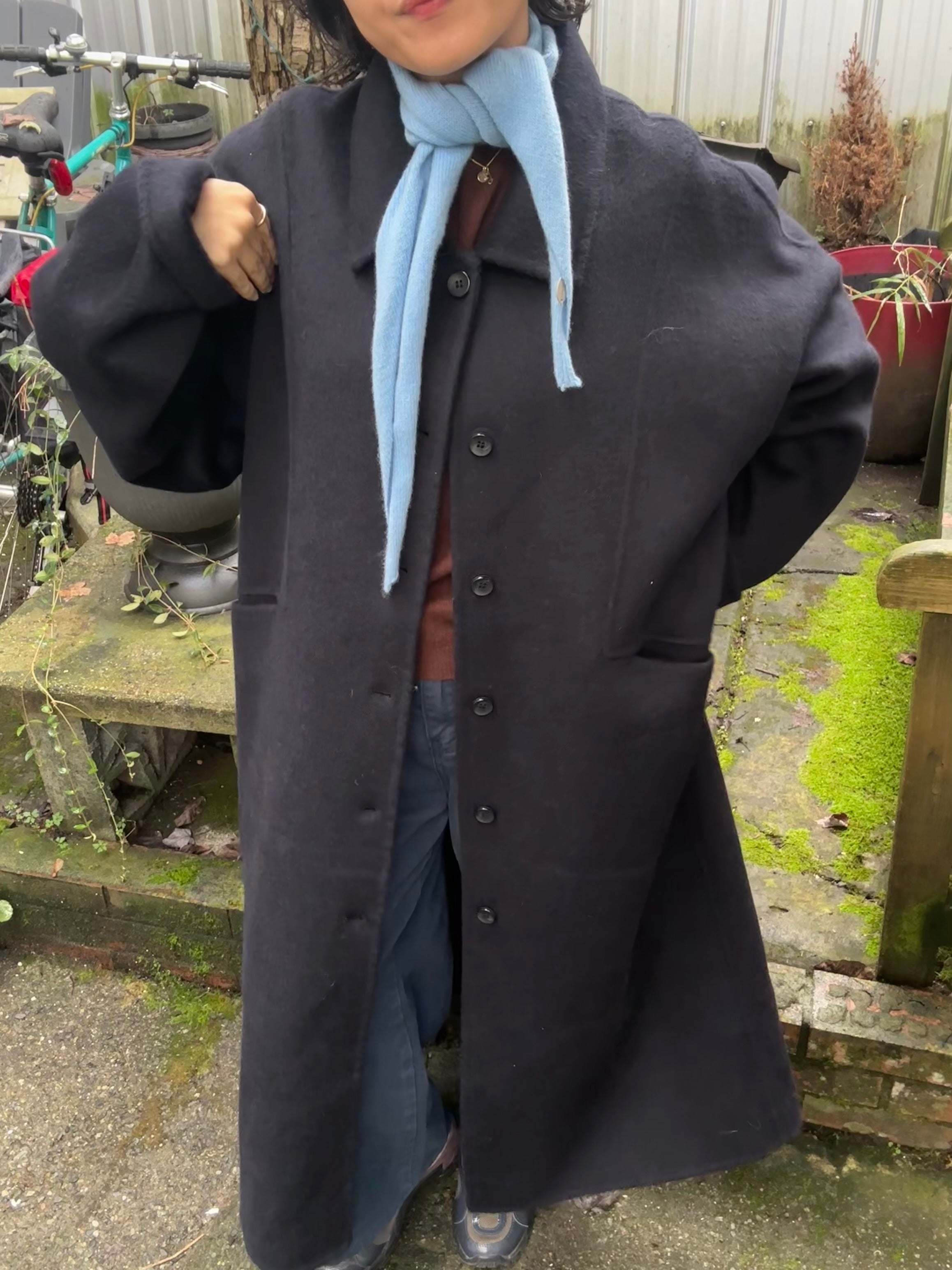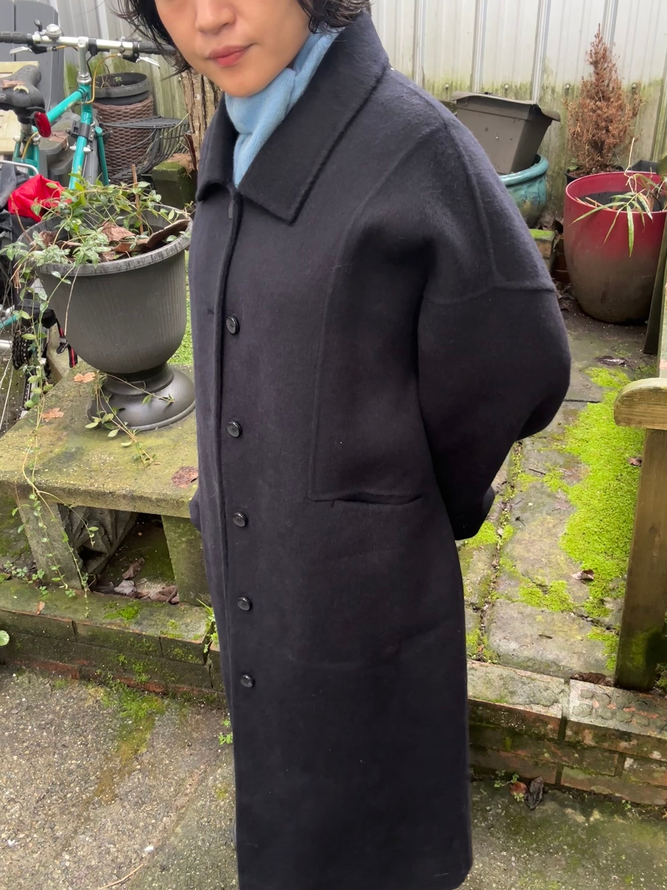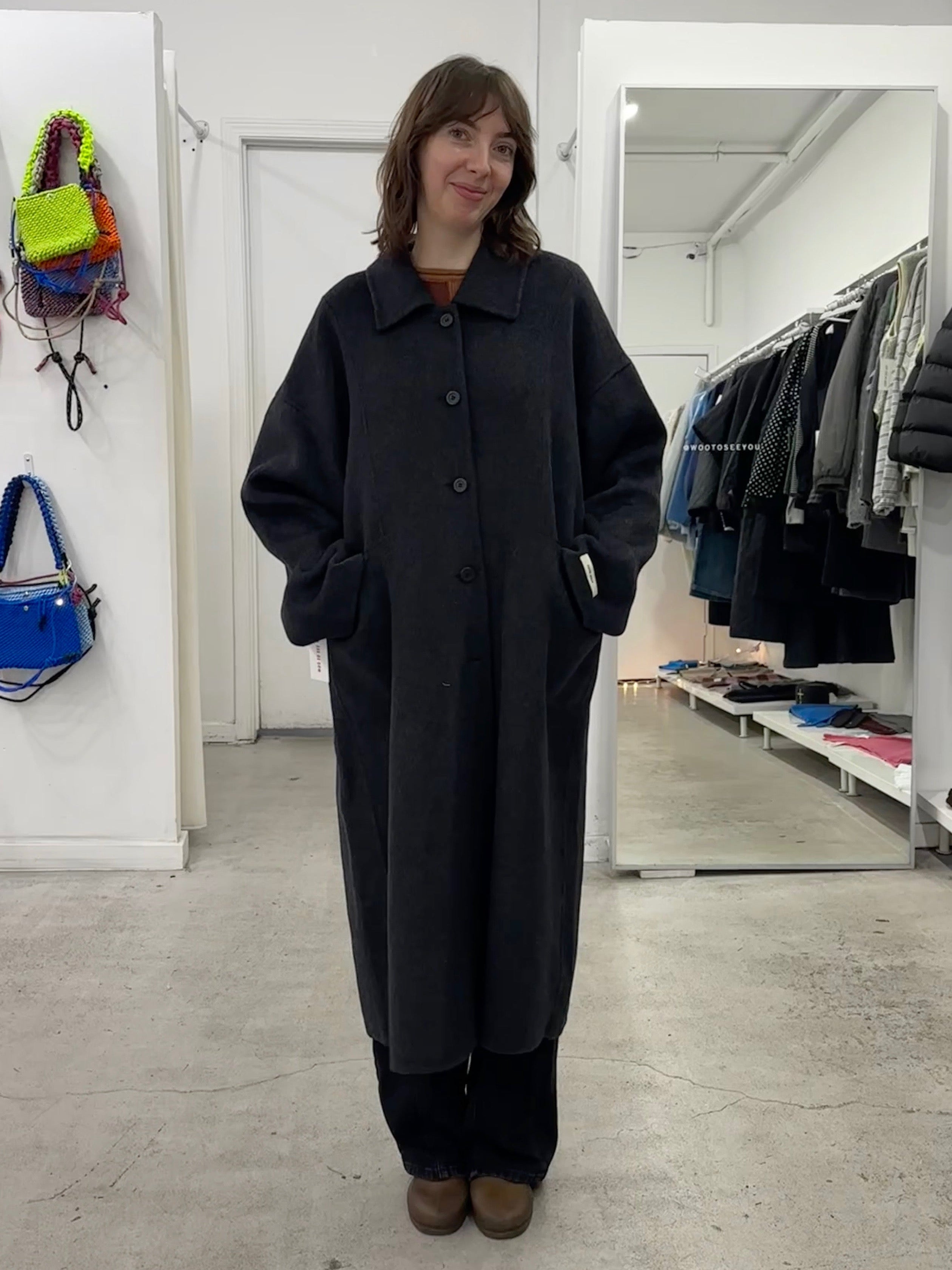 Wrap yourself in cozy charm with this handmade long coat—a wardrobe essential that's classic. Crafted with care and attention to detail, it features two practical pockets perfect for stashing your essentials (or your hands when the weather gets chilly). The relaxed, flowing silhouette works beautifully for casual outings or dressed-up occasions. Comfort meets style in this timeless piece.