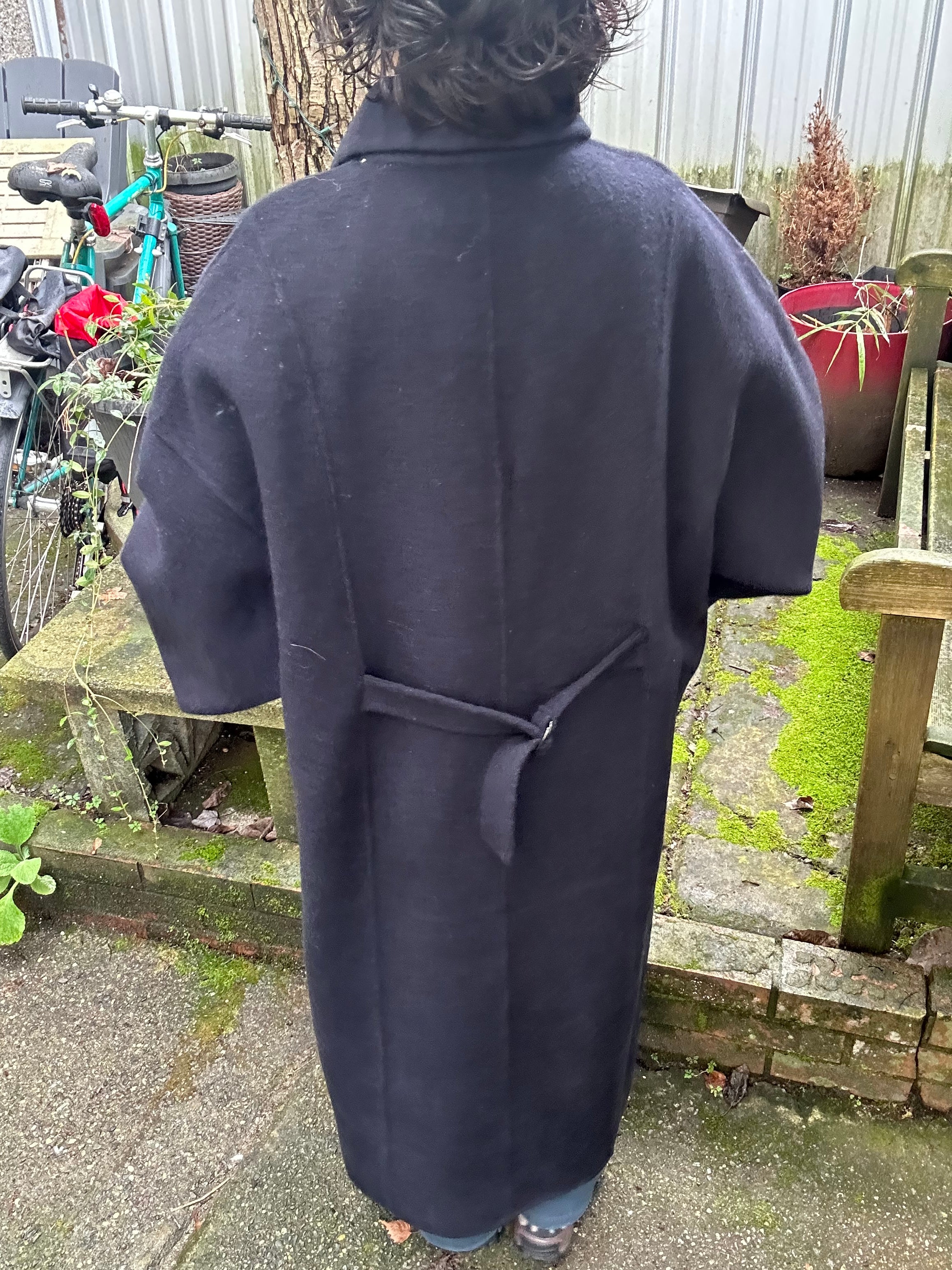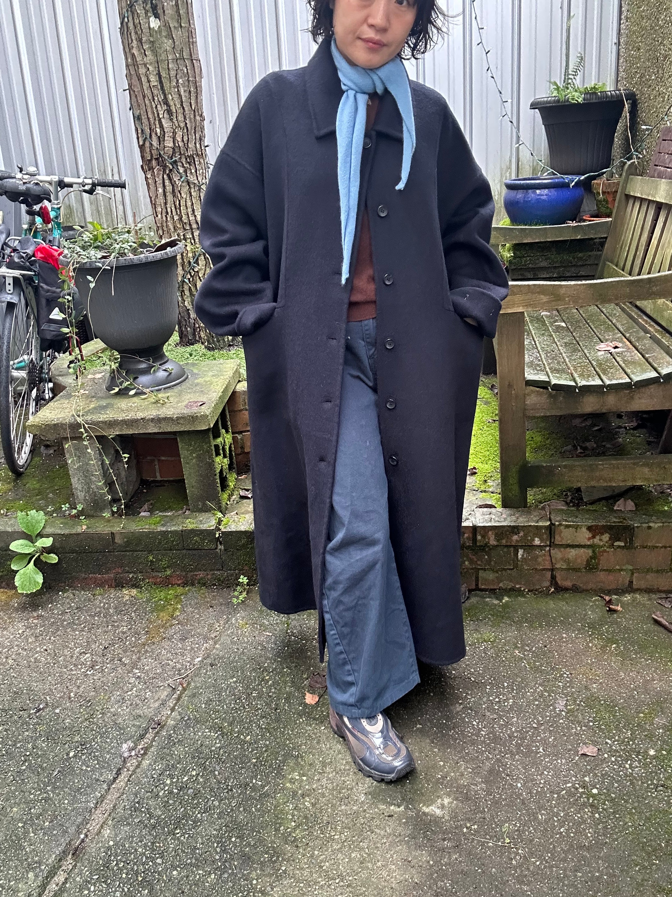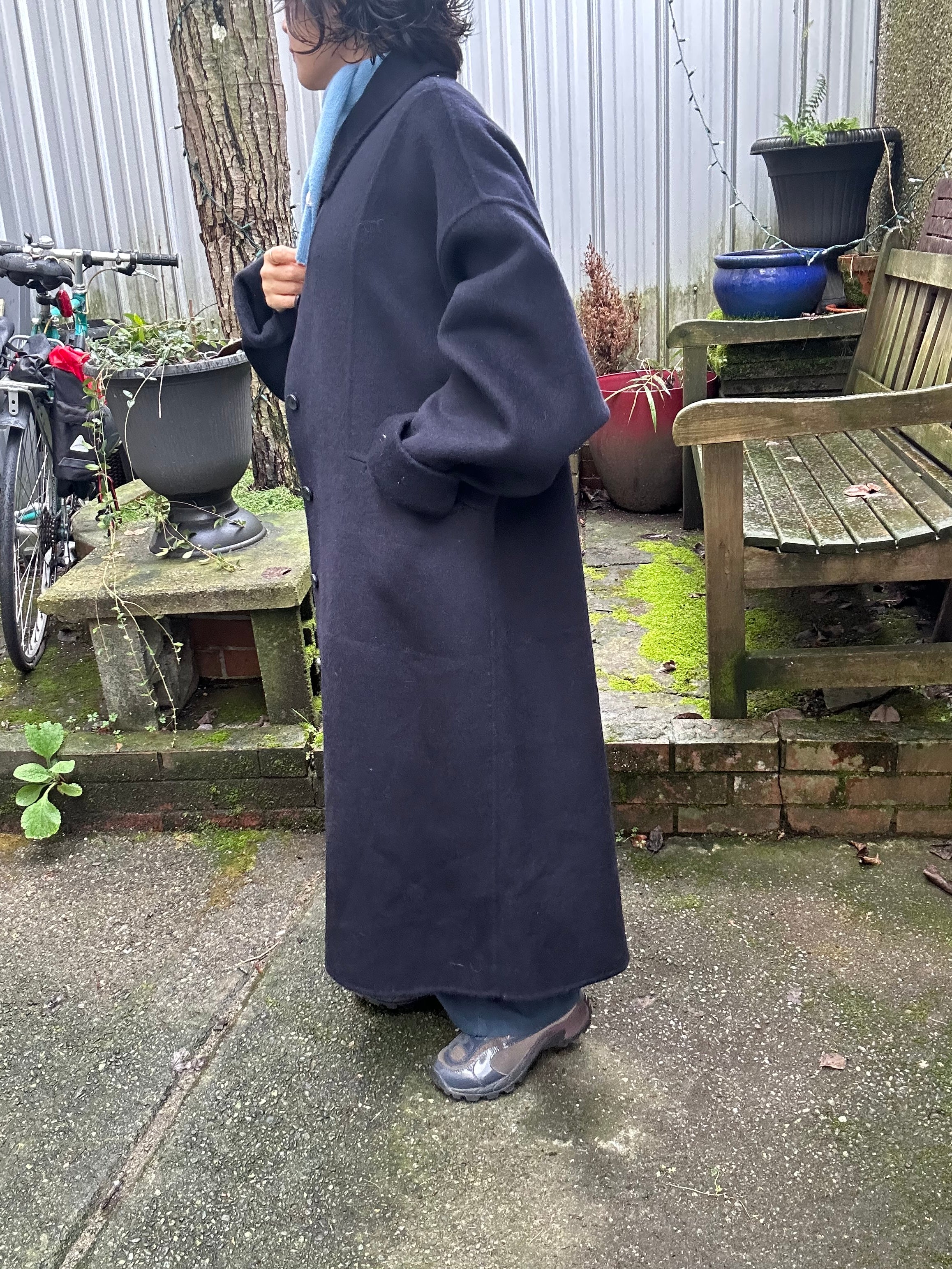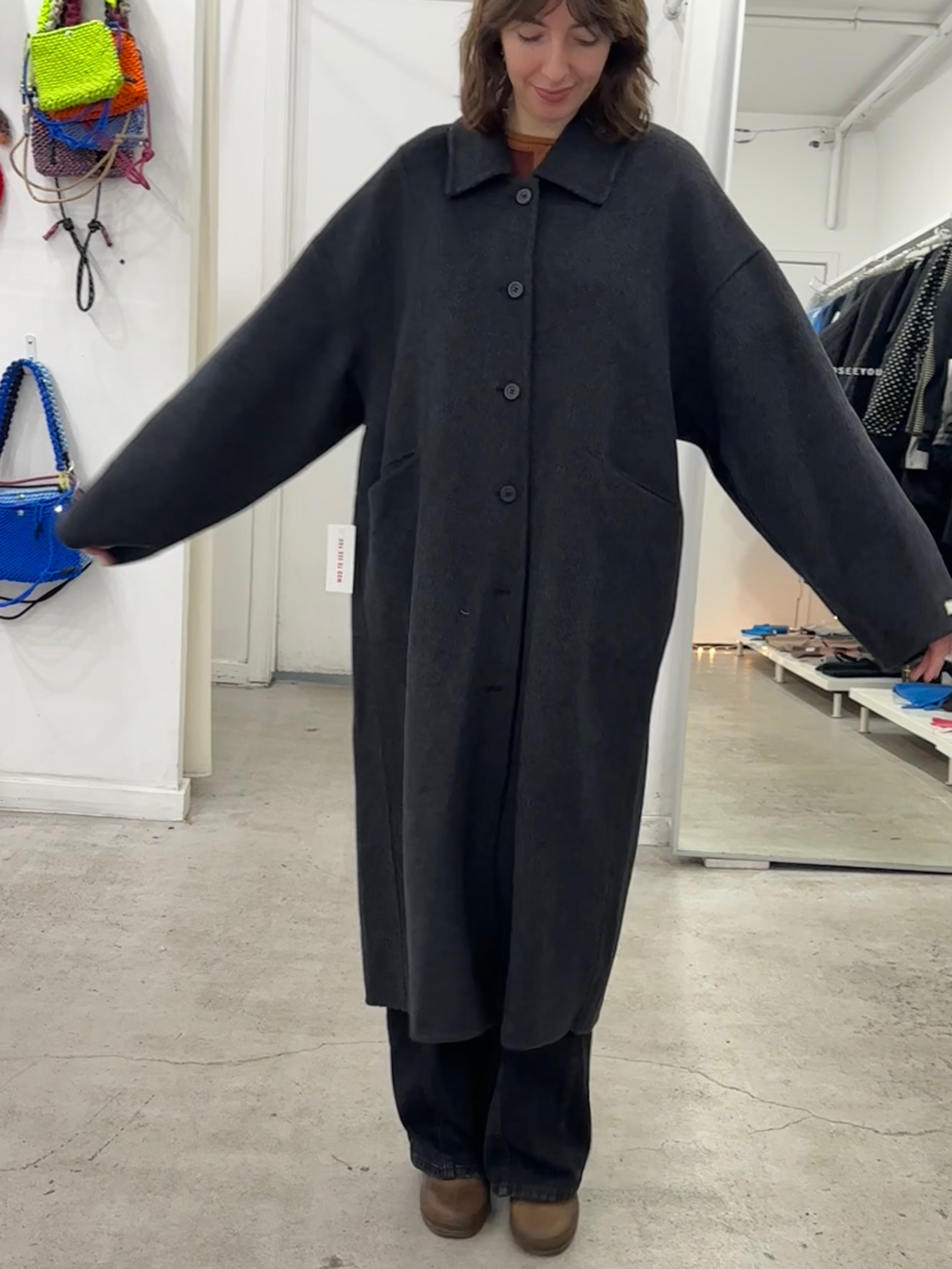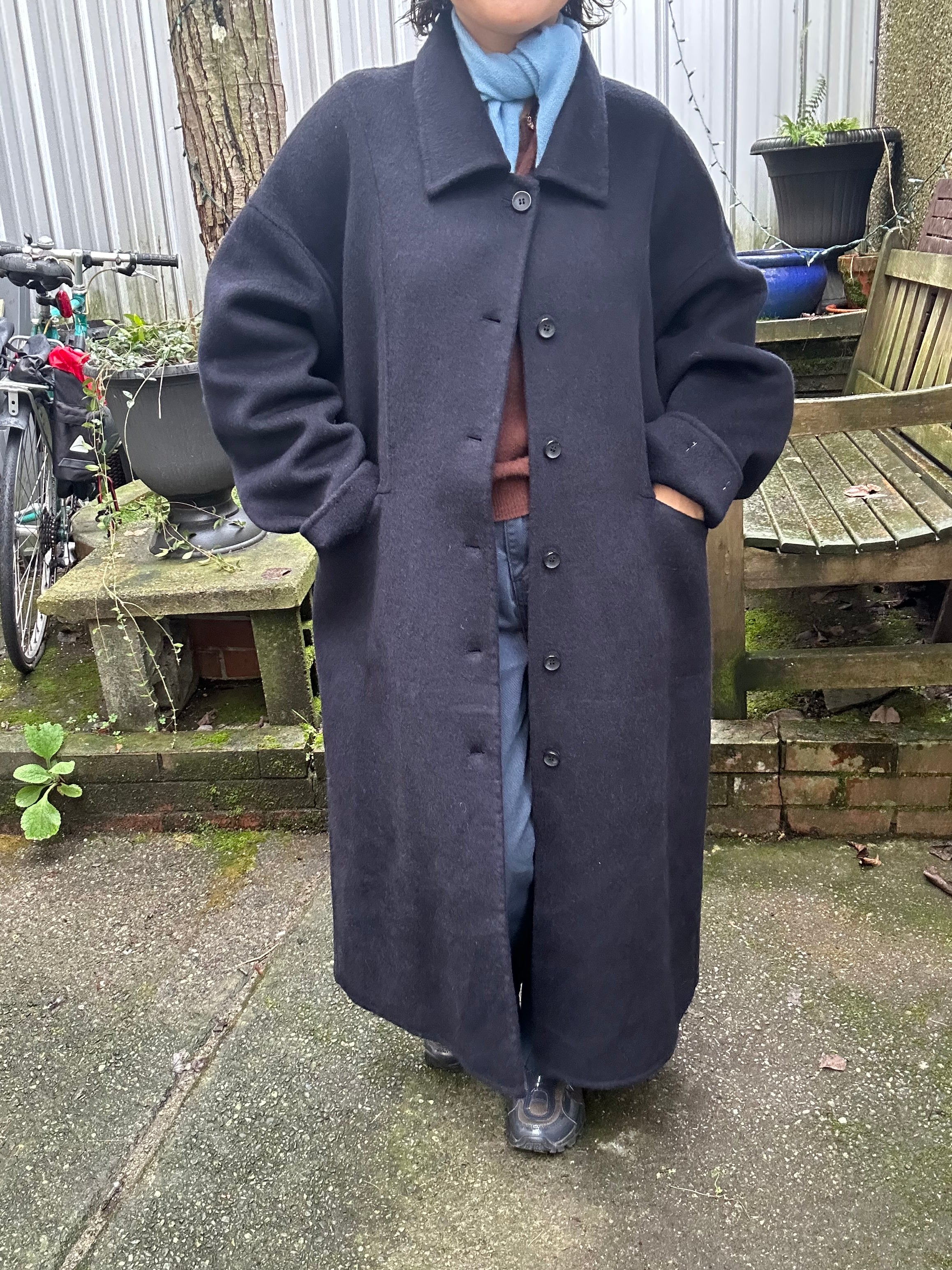 Wrap yourself in cozy charm with this handmade long coat—a wardrobe essential that's classic. Crafted with care and attention to detail, it features two practical pockets perfect for stashing your essentials (or your hands when the weather gets chilly). The relaxed, flowing silhouette works beautifully for casual outings or dressed-up occasions. Comfort meets style in this timeless piece.