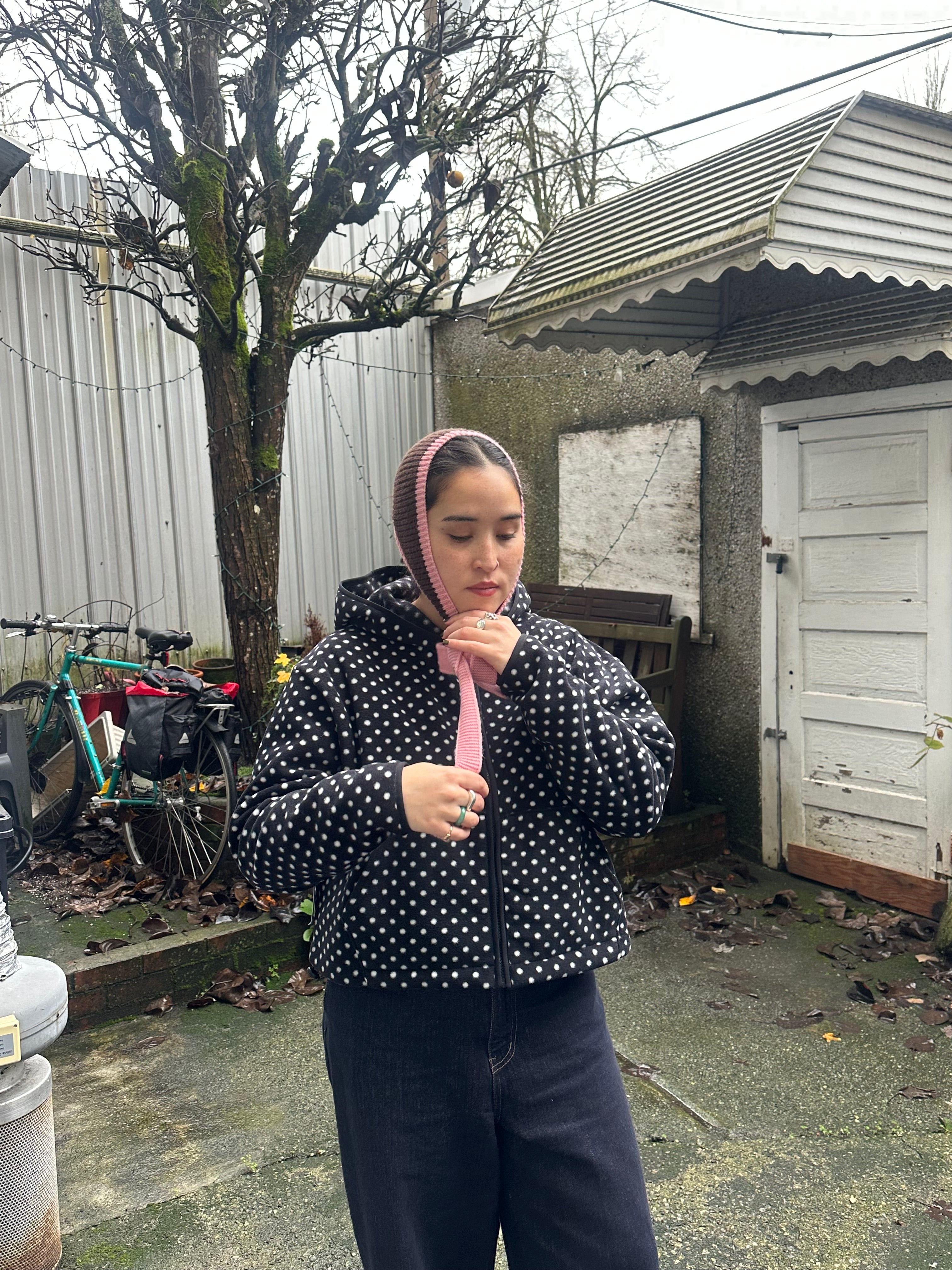 Wrap yourself in cozy comfort with this charming fleece hoodie featuring adorable polka dots. Perfect for lounging, running errands, or staying warm during chilly days, this soft and snuggly piece brings a playful pop of personality to your everyday wardrobe. Whether you're curling up with a book or heading out for an adventure, this dotted hoodie is your new go-to favourite for effortless comfort and fun.