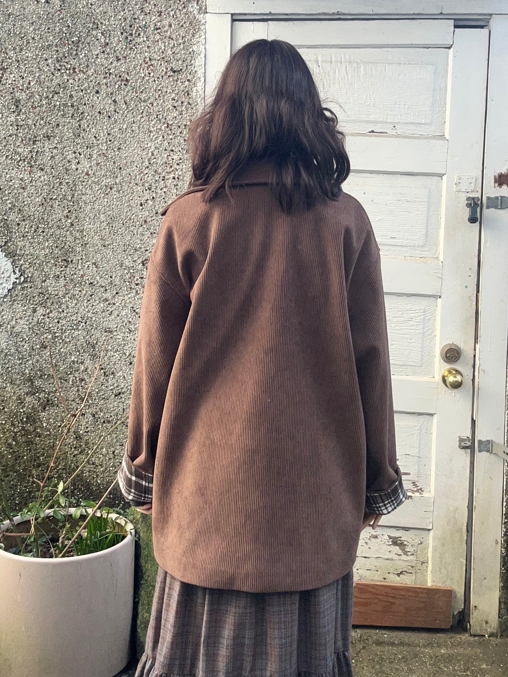 Introducing your new go-to layer with serious style credentials! This playful piece features a cozy faux corduroy exterior, paired with a cheeky plaid interior that'll make you smile every time you slip it on. Rock it buttoned up for a polished look, or leave it open and collar down for that effortlessly cool vibe. Whether you're dressing up or keeping it casual, this jacket is ready to wag its way into your wardrobe rotation.