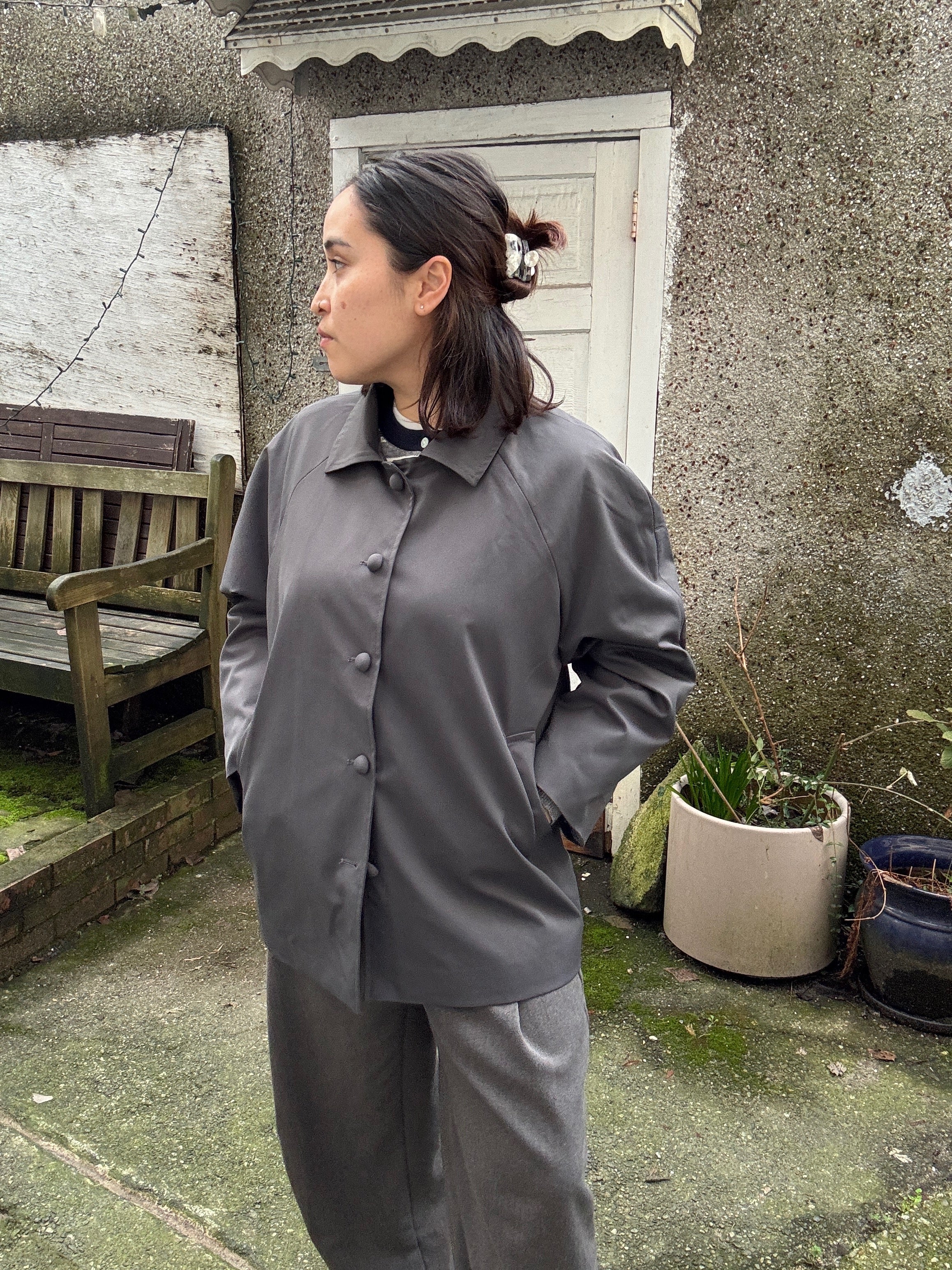 Layer up with our jacket—a timeless button-up trench that's ready for anything. Sharp collars keep you looking polished, while practical pockets mean your hands (and essentials) always have a home. Whether you're dashing through the city or settling in for the day, this wardrobe staple brings effortless style and function together. A jacket that works as hard as you do, with a wink and a smile.