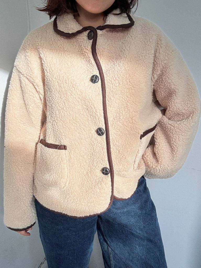 Wrap yourself in pure comfort with this adorable fleece jacket that's as cozy as it is cute! Featuring eye-catching contrast piping details that add a playful pop of style, this jacket is your new go-to layer for chilly days.