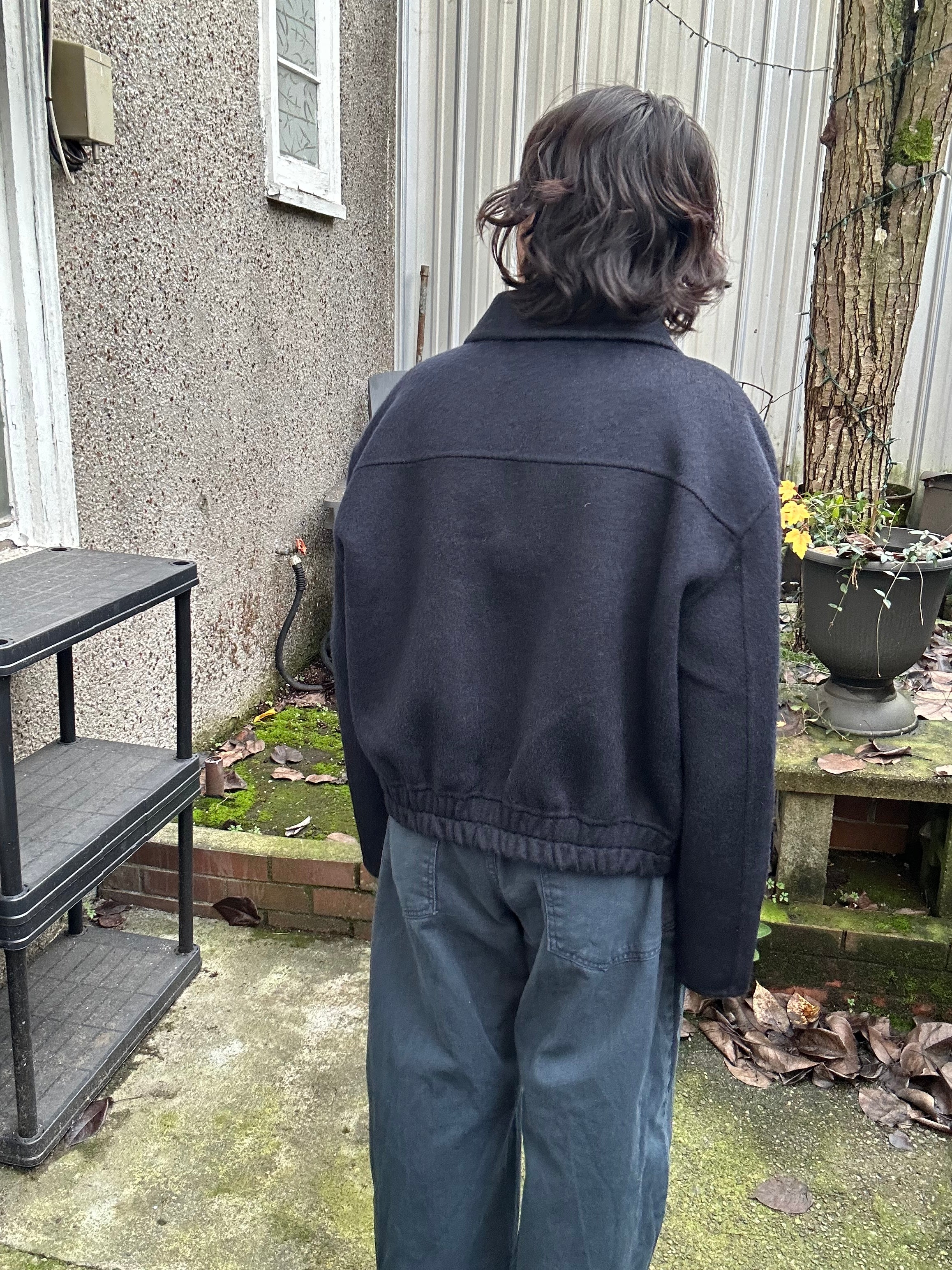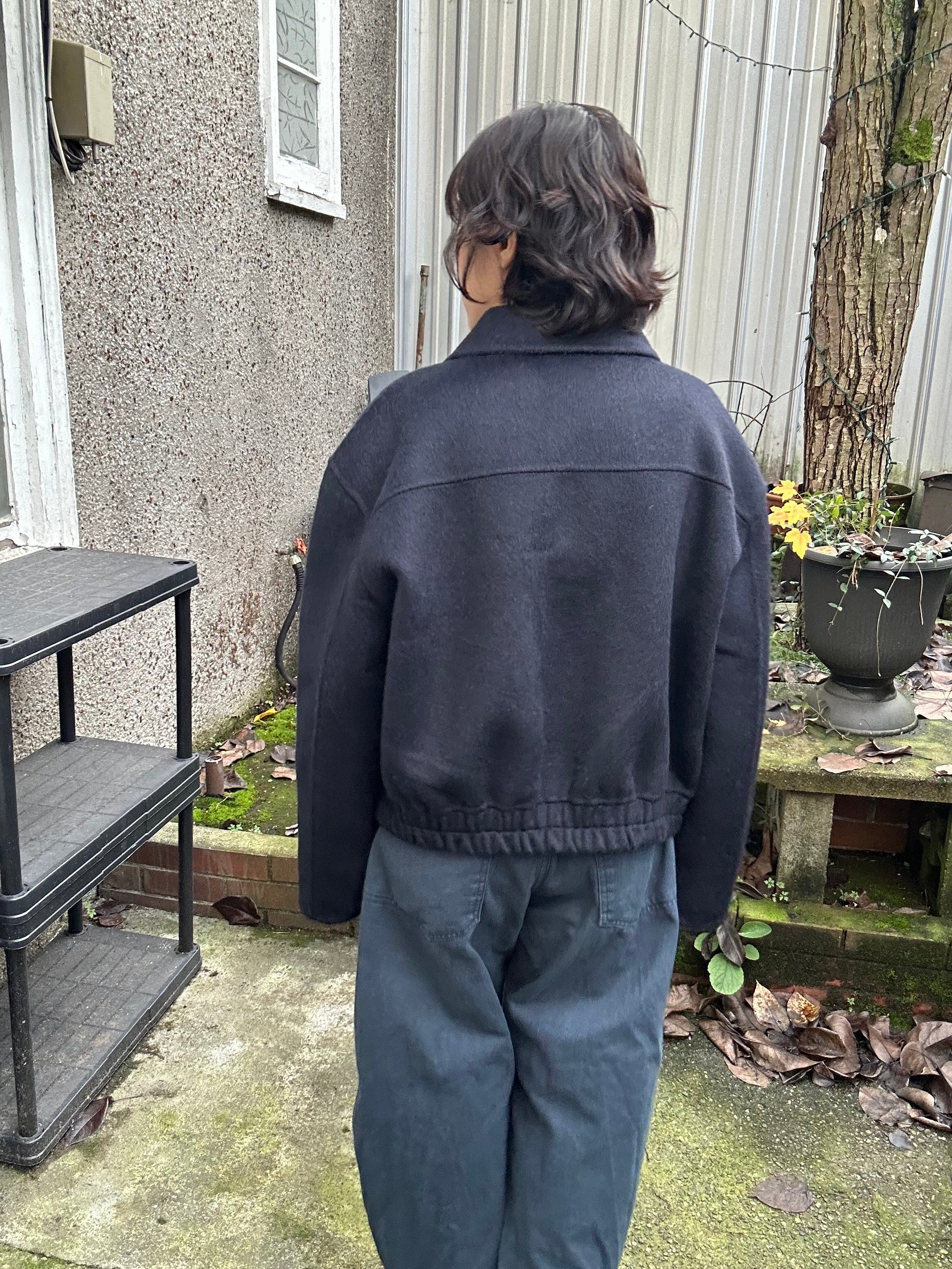Layer up with personality in this wool jacket that means business—and fun. Featuring a classic button neck collar, a cinched bottom for a flattering silhouette, and premium wool construction, it's the perfect piece to elevate any outfit. Whether you're heading to the office or out for the weekend, this jacket delivers warmth, style, and just the right amount of sass.