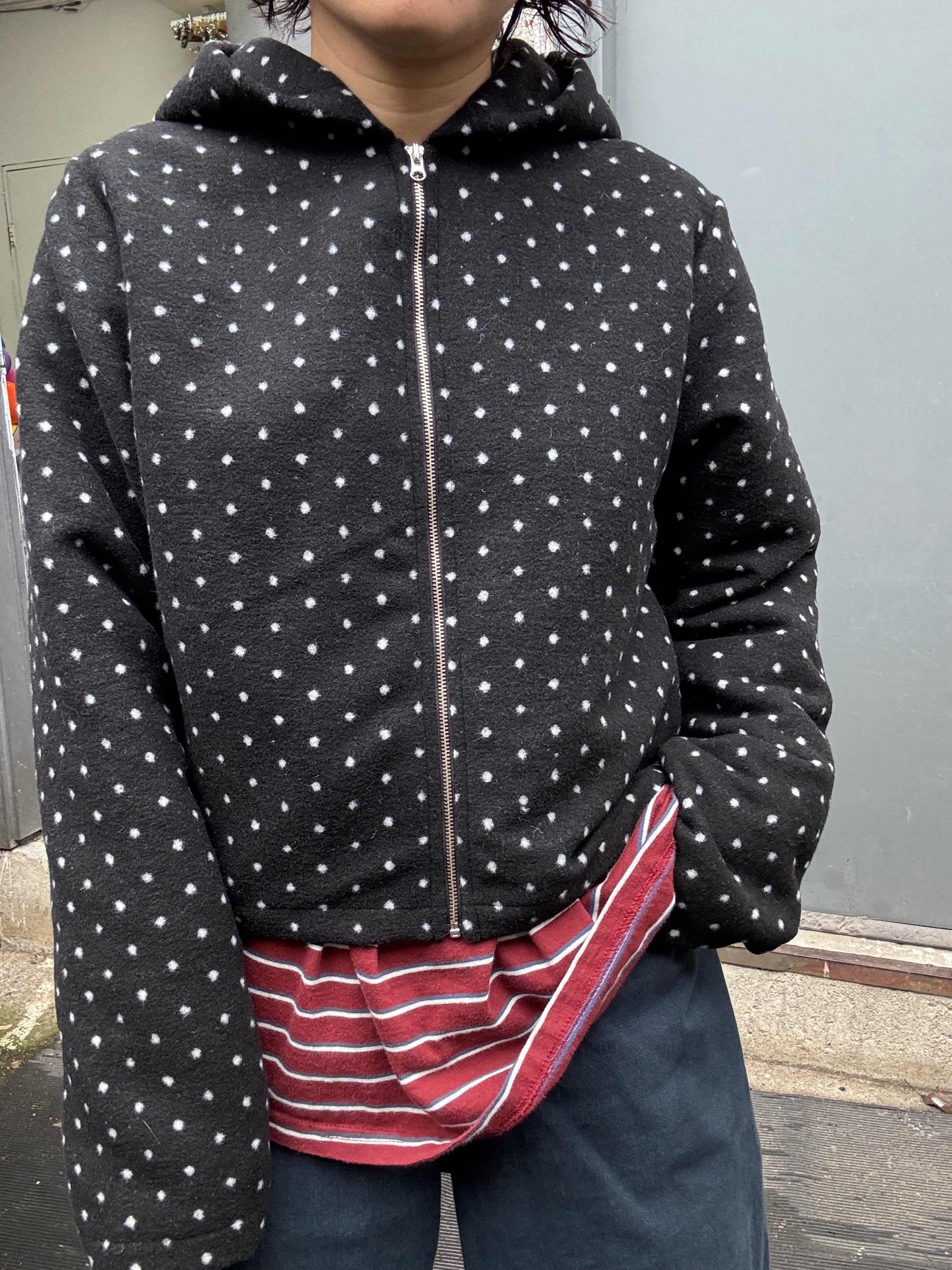 Adorable polka dot zip-up jacket that's equal parts cute and cozy! The playful dot pattern adds instant charm to any outfit, while the relaxed fit keeps you comfortable all day long. Whether you're running errands or hanging with friends, this jacket brings effortless style and warmth to your wardrobe.