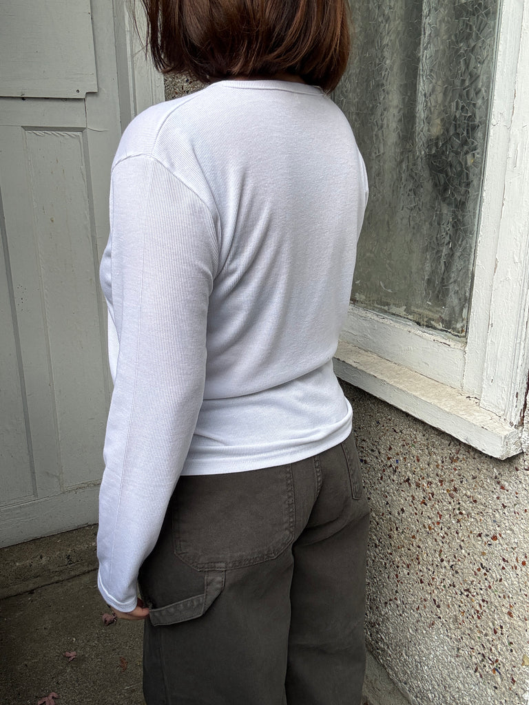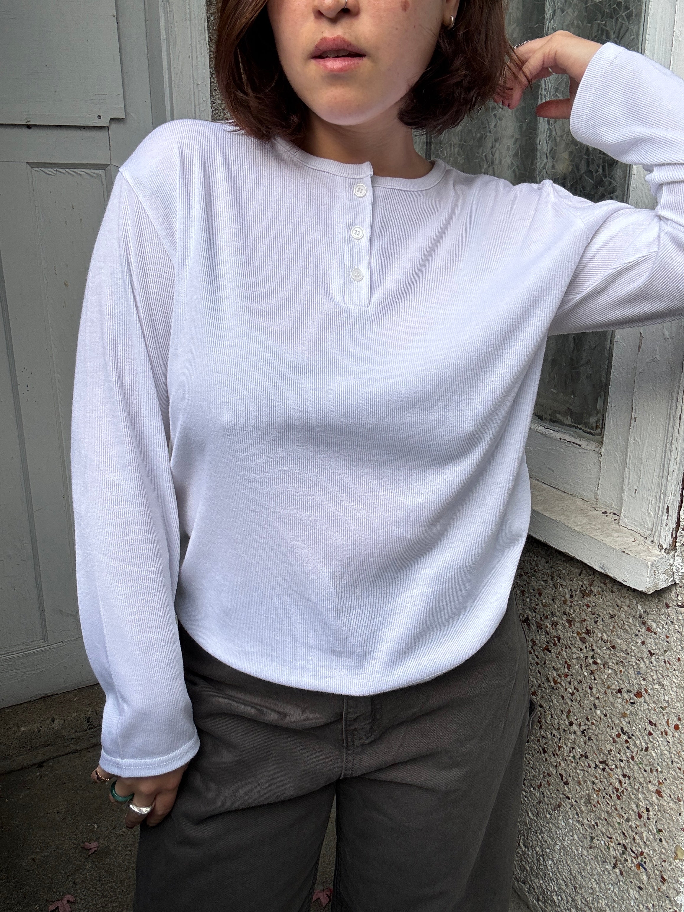 Get cozy and chic with this long sleeve ribbed top featuring charming button details. Its soft fabric hugs you comfortably, making it perfect for layering or wearing solo on cooler days. Play up your style effortlessly with this snug, stylish essential.