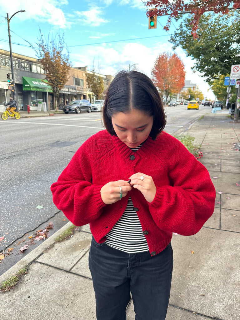 Get ready to snuggle up in style with this Cardigan 08287! Featuring chunky raglan and balloon sleeves, it adds a fun, cozy twist to your wardrobe. Soft to the touch and comfy to wear, it's perfect as a outerwear for fall or layering on those chilly days.
