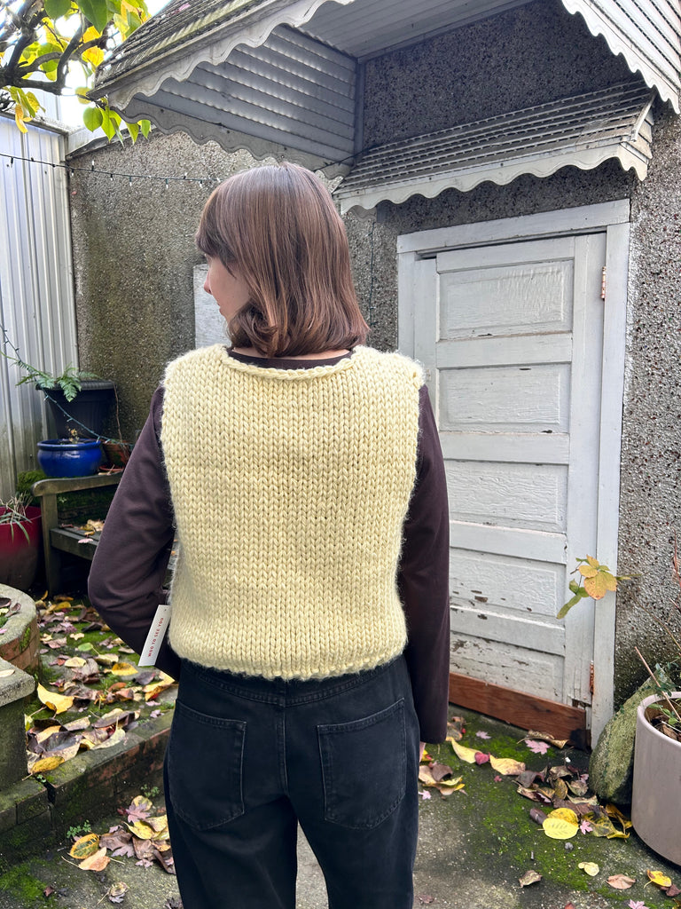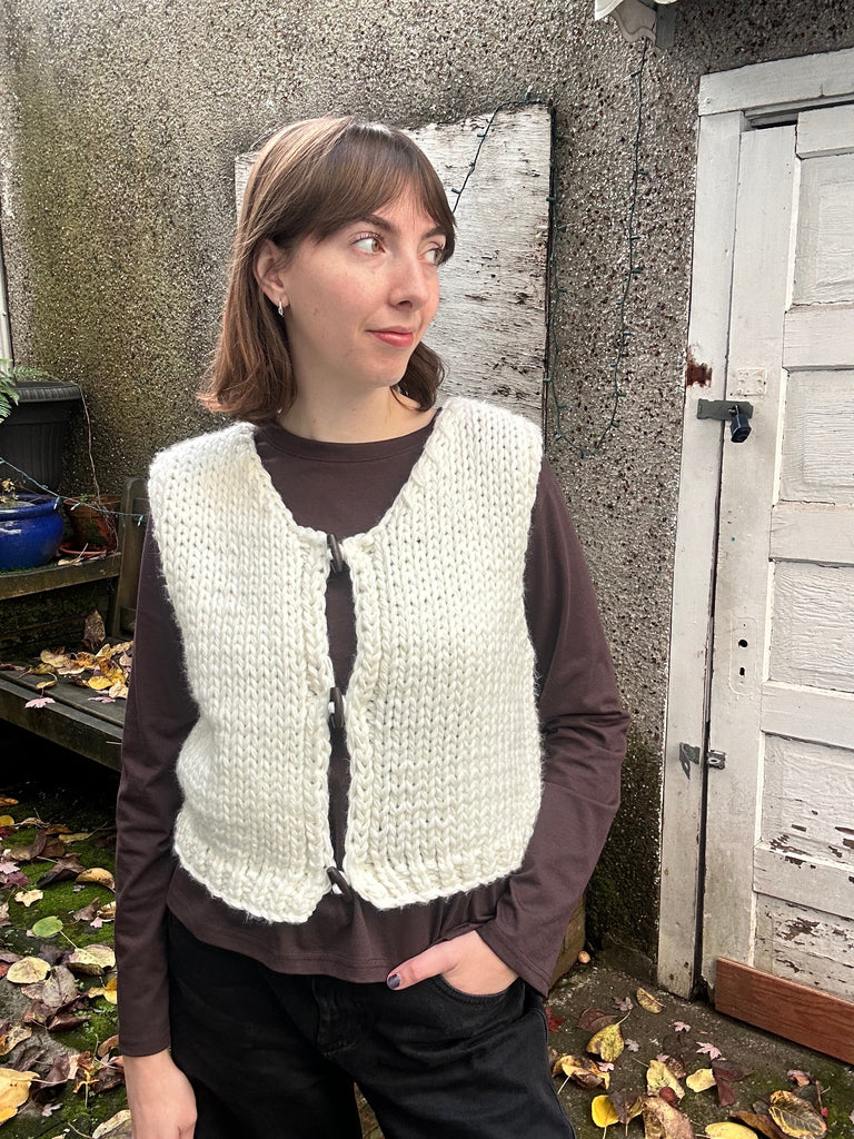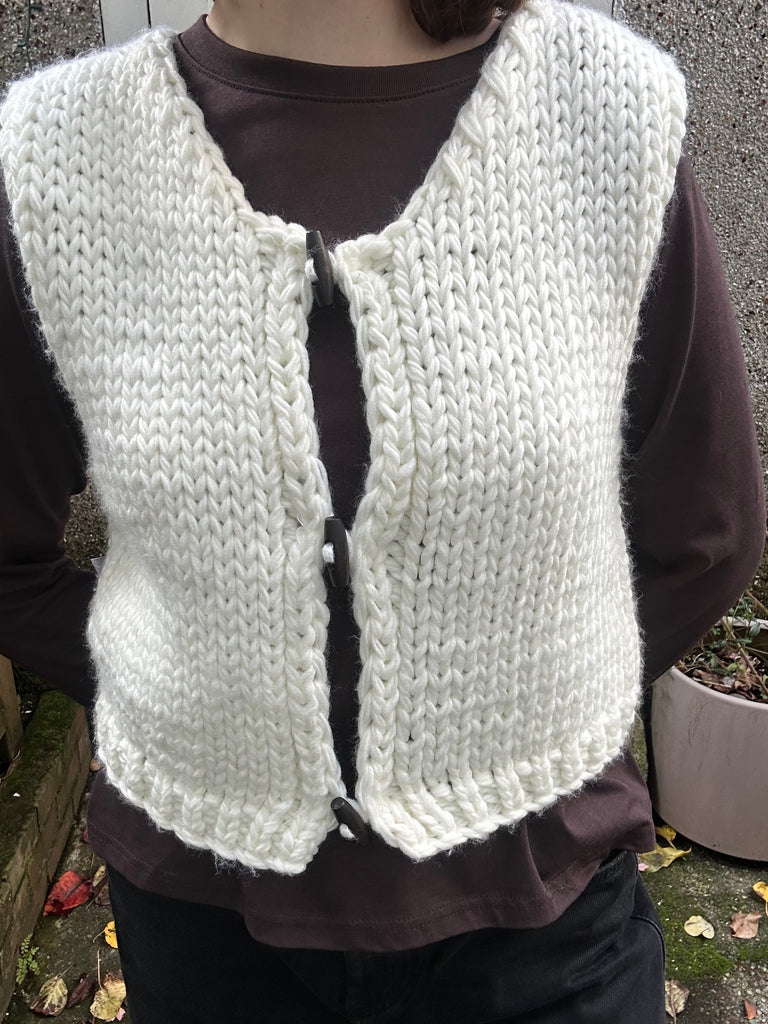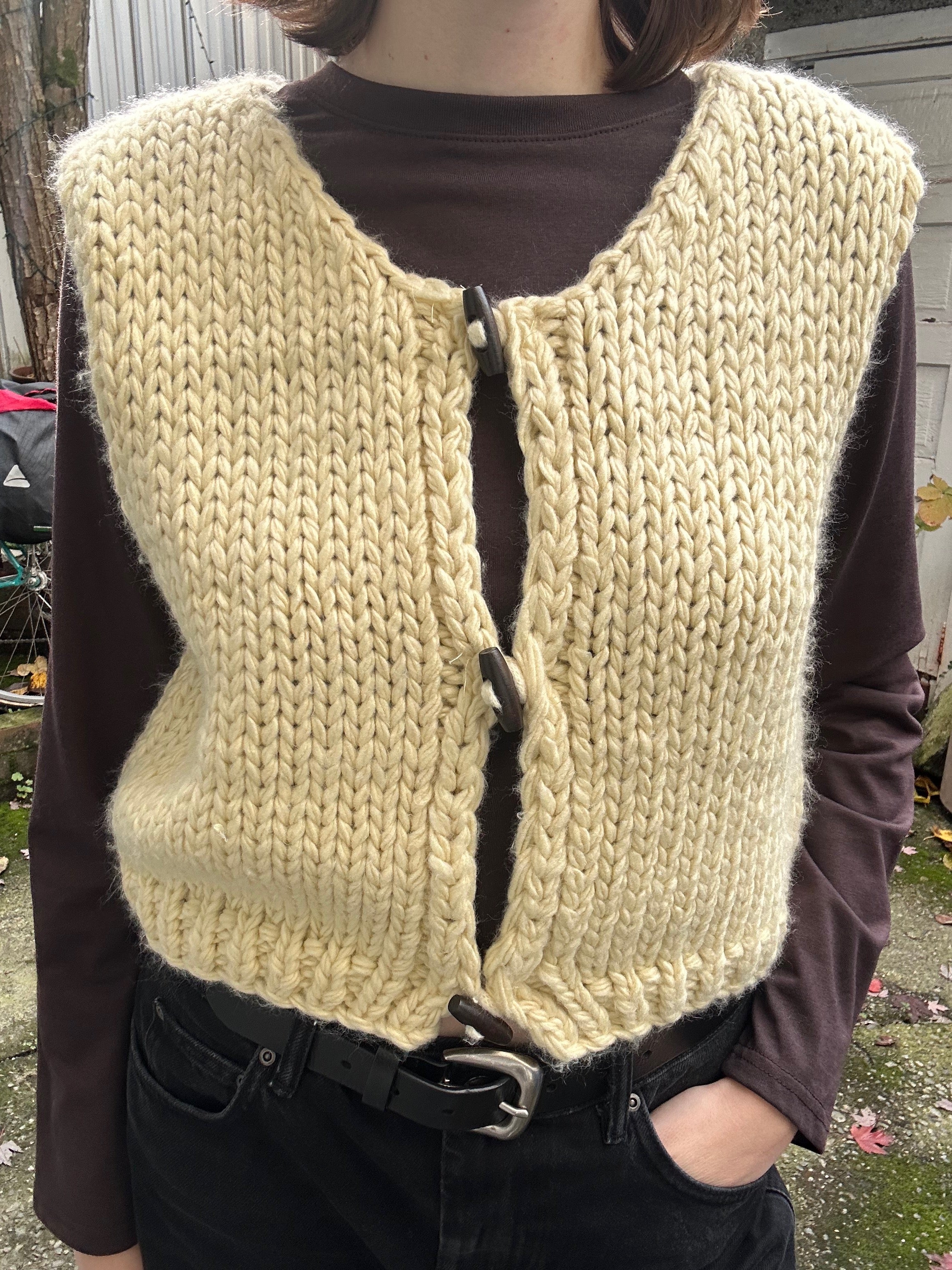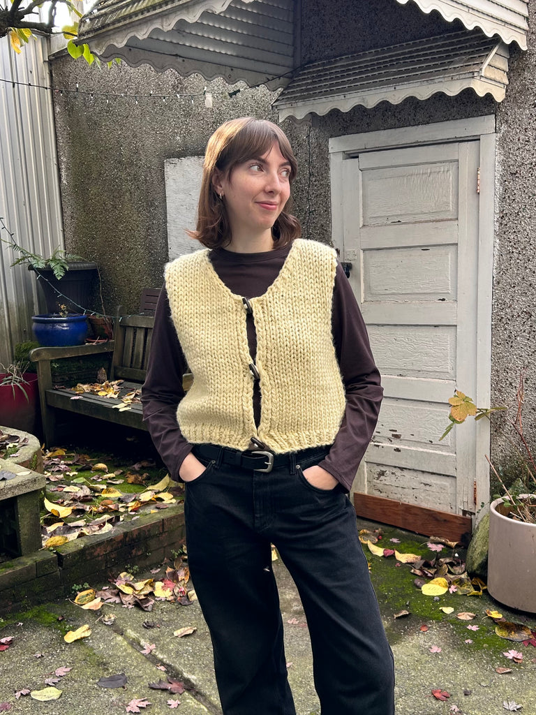 Layer up in this chunky knit sweater vest featuring wood toggle buttons and a cropped silhouette. It's perfect for mixing and matching with your favourite tees and long-sleeves, while the cozy texture keeps you warm.