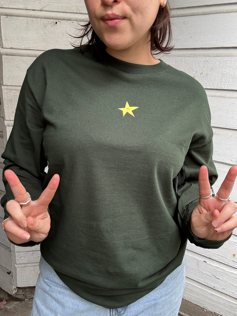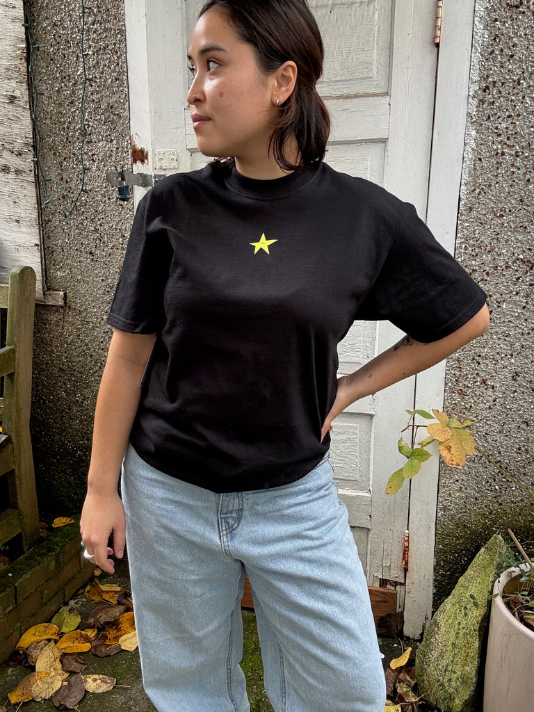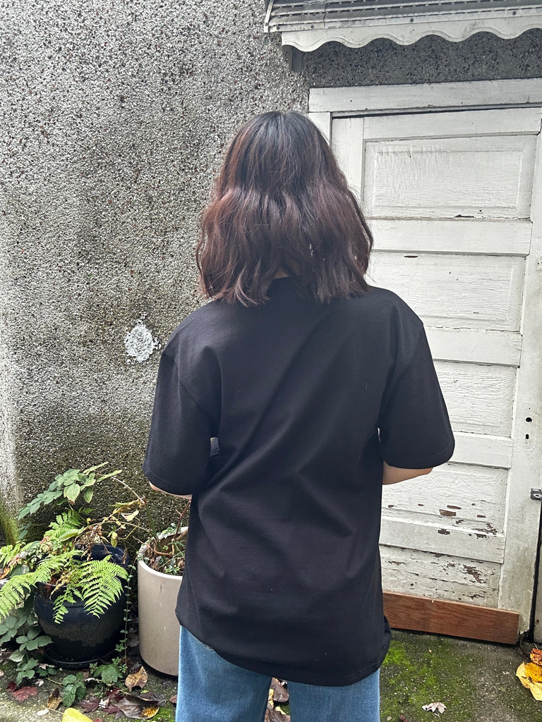 Cutie t-shirts made by multi media artist Wuwu. Locally designed and made with love! Such a fun top to throw on to brighten your fit. Support your local artists!!