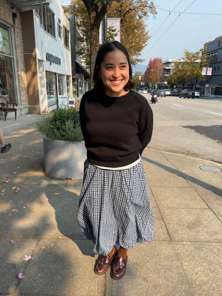 Add a playful twist to your fall wardrobe with this Checkered Balloon Skirt. Featuring a comfortable elastic waistband and a charming checkered print, it’s perfect for twirling through crisp autumn days. Its voluminous balloon shape adds fun flair while keeping you cozy and cute all season long.