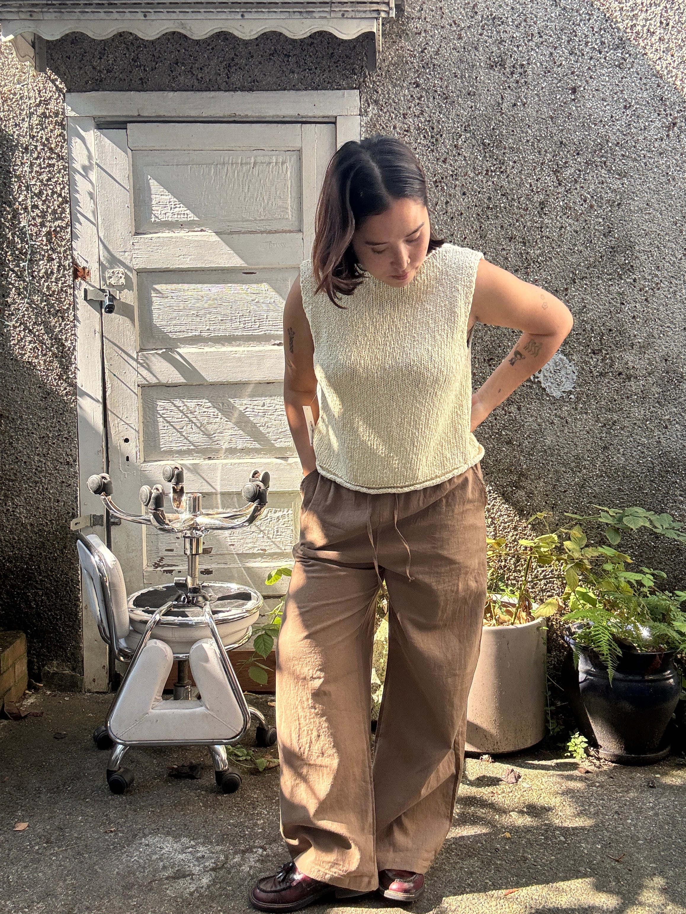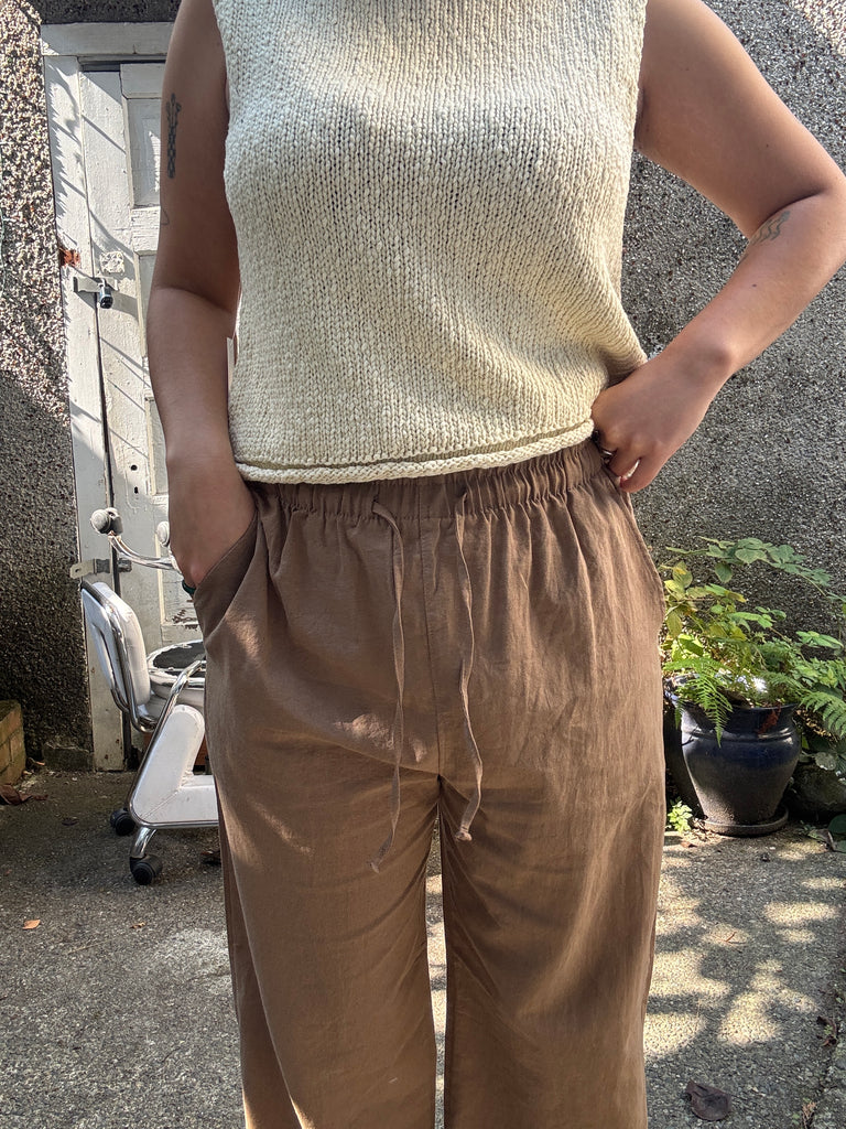 Breeze through those tricky in-between seasons with these pants. From a comfy linen/cotton blend and featuring an elastic waistband, these trousers are your new go-to for effortless style and all-day breathability. Easy to wear, easy to love—perfect for those days when you want comfort and cool vibes, no matter the weather.