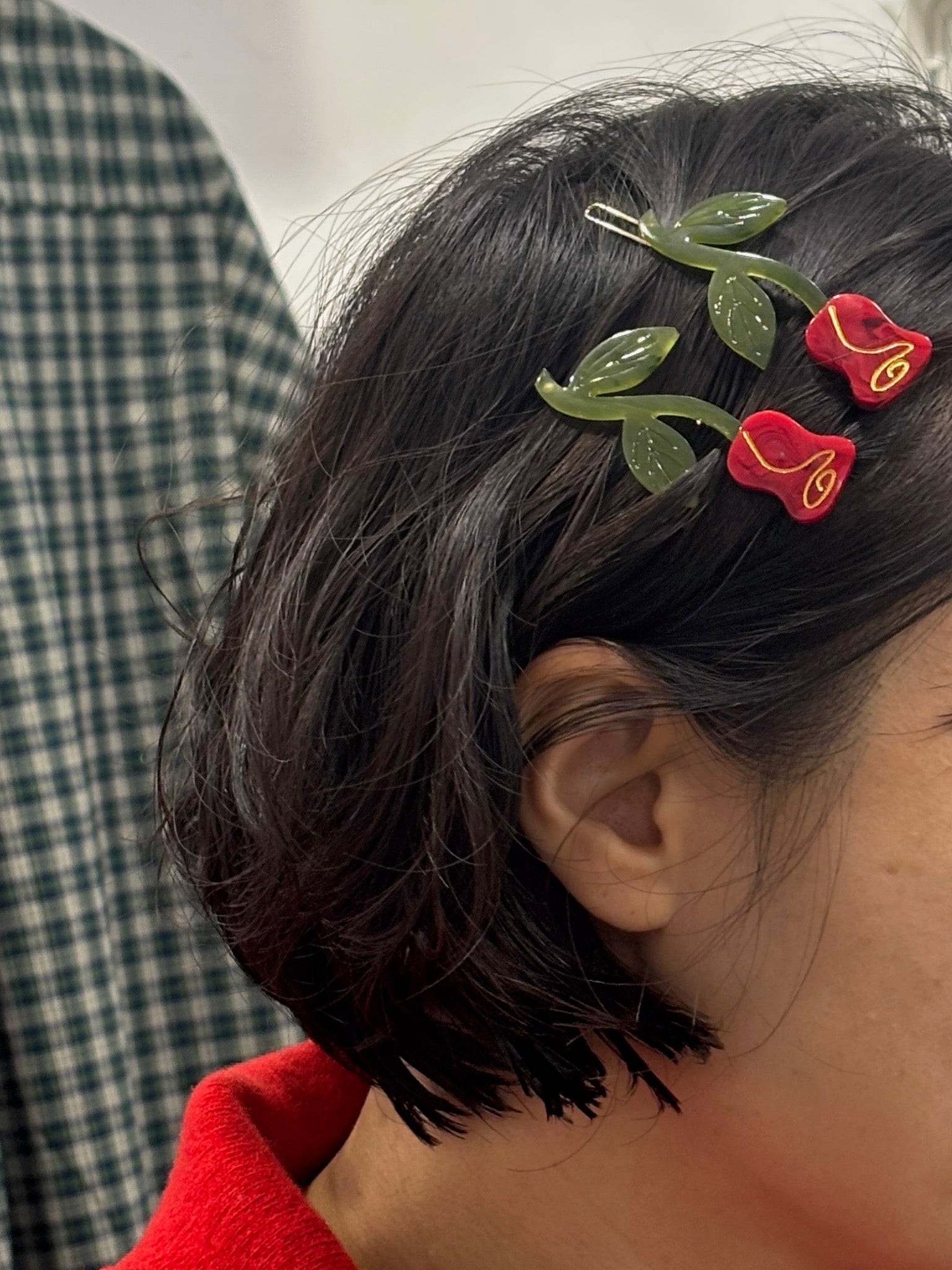 This sweet rose barrette set will elevate any hair look. Comes as a set of 2