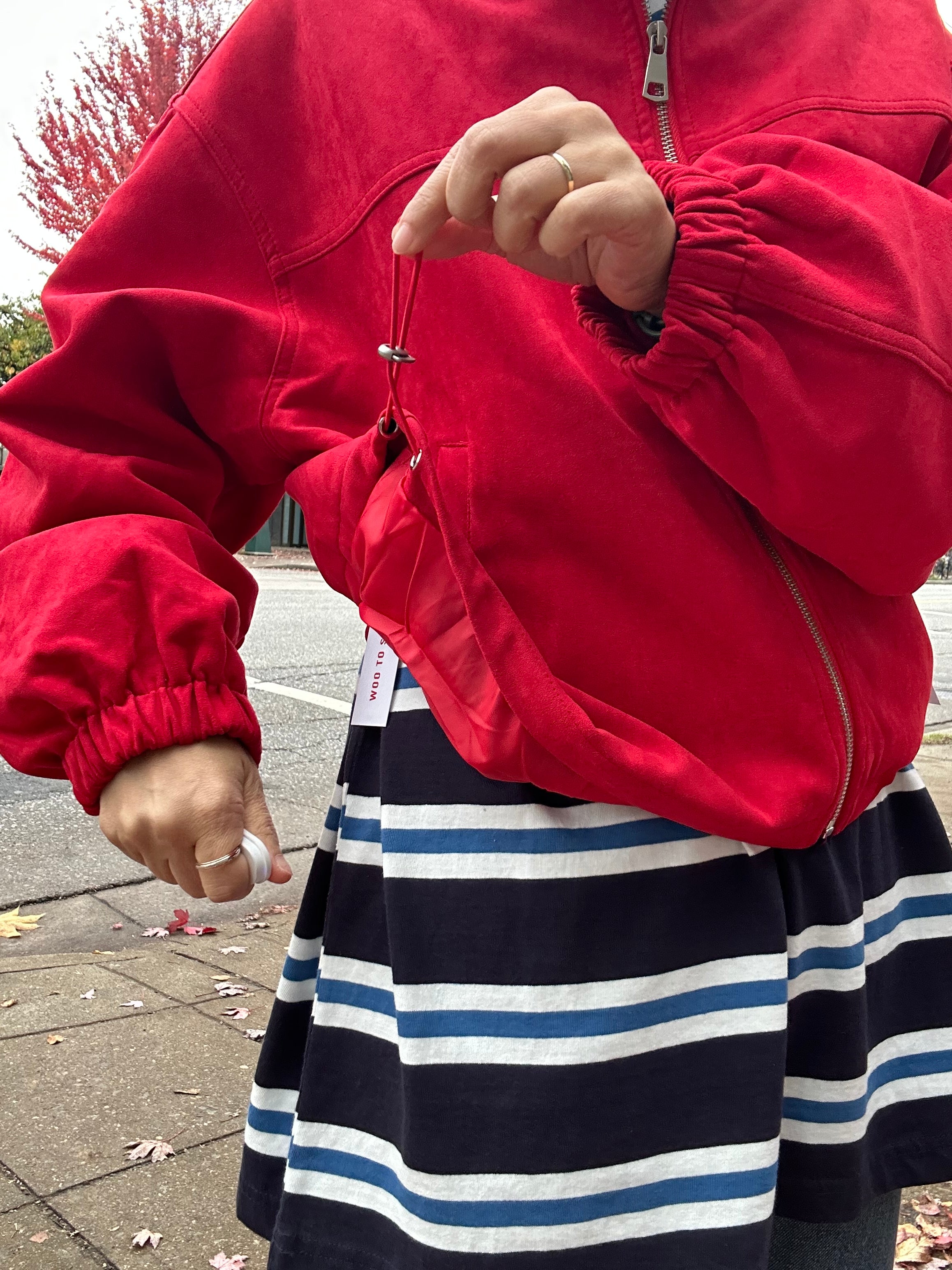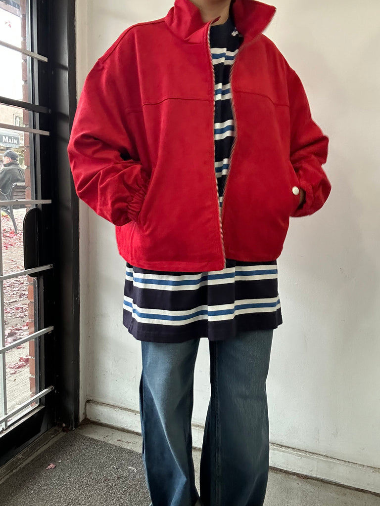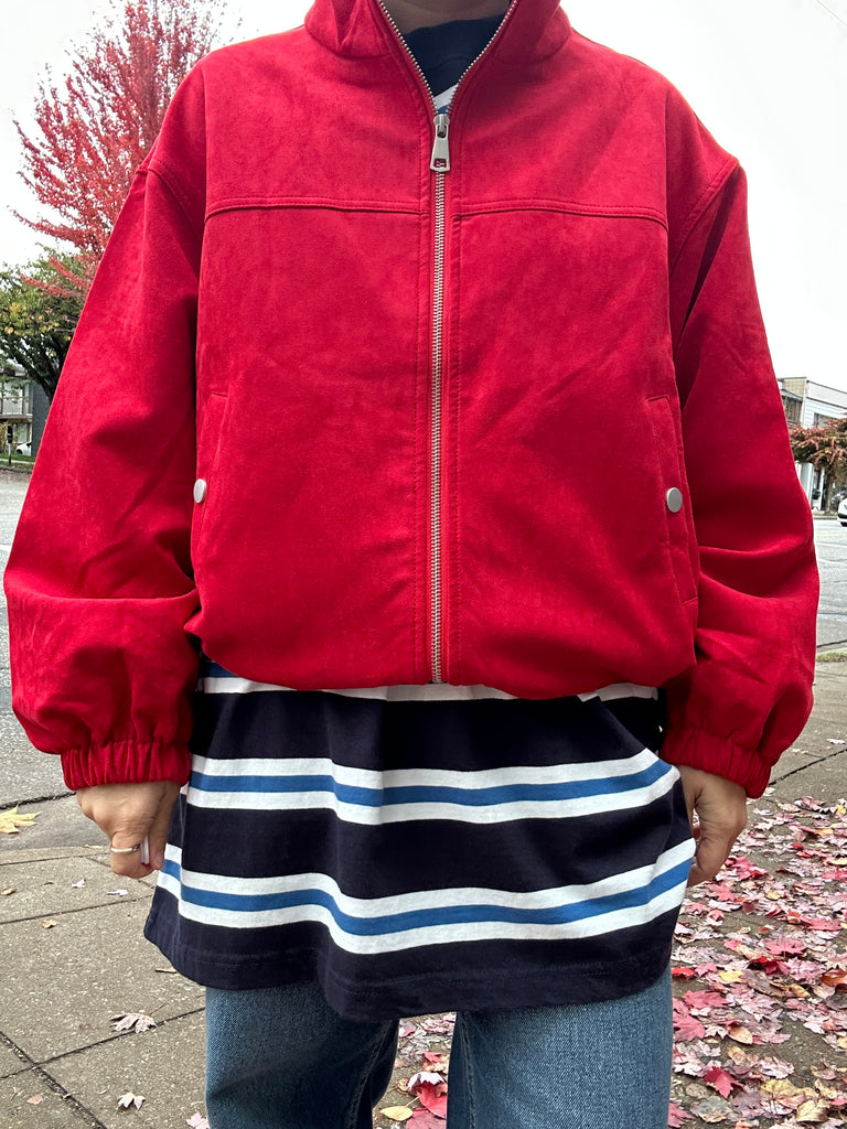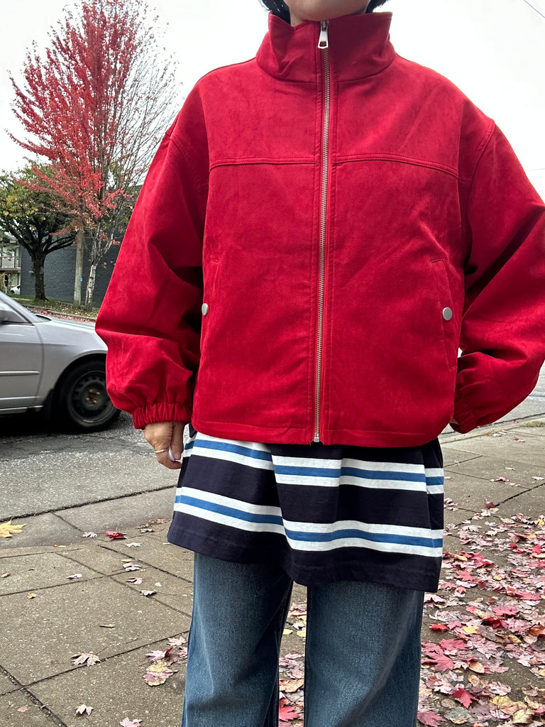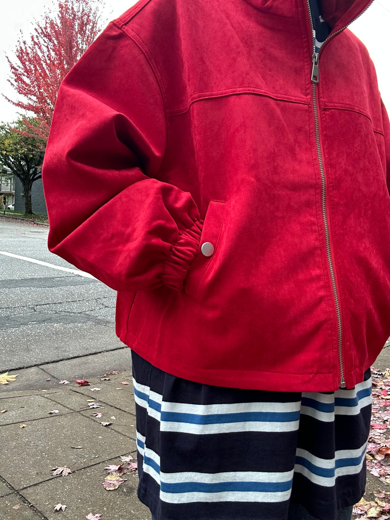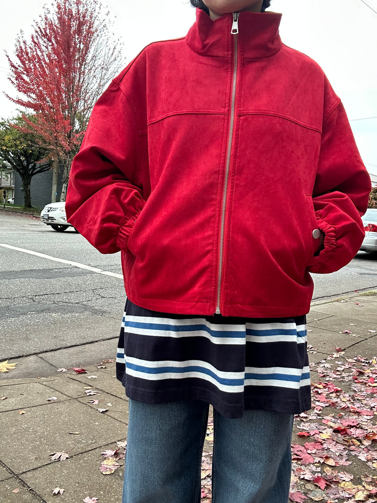 Stay stylish in this zip-up faux suede jacket featuring a high neck for extra warmth and a playful string to synch the fit just the way you like it. It’s the perfect mix of cozy comfort and cool vibes for any casual adventure.