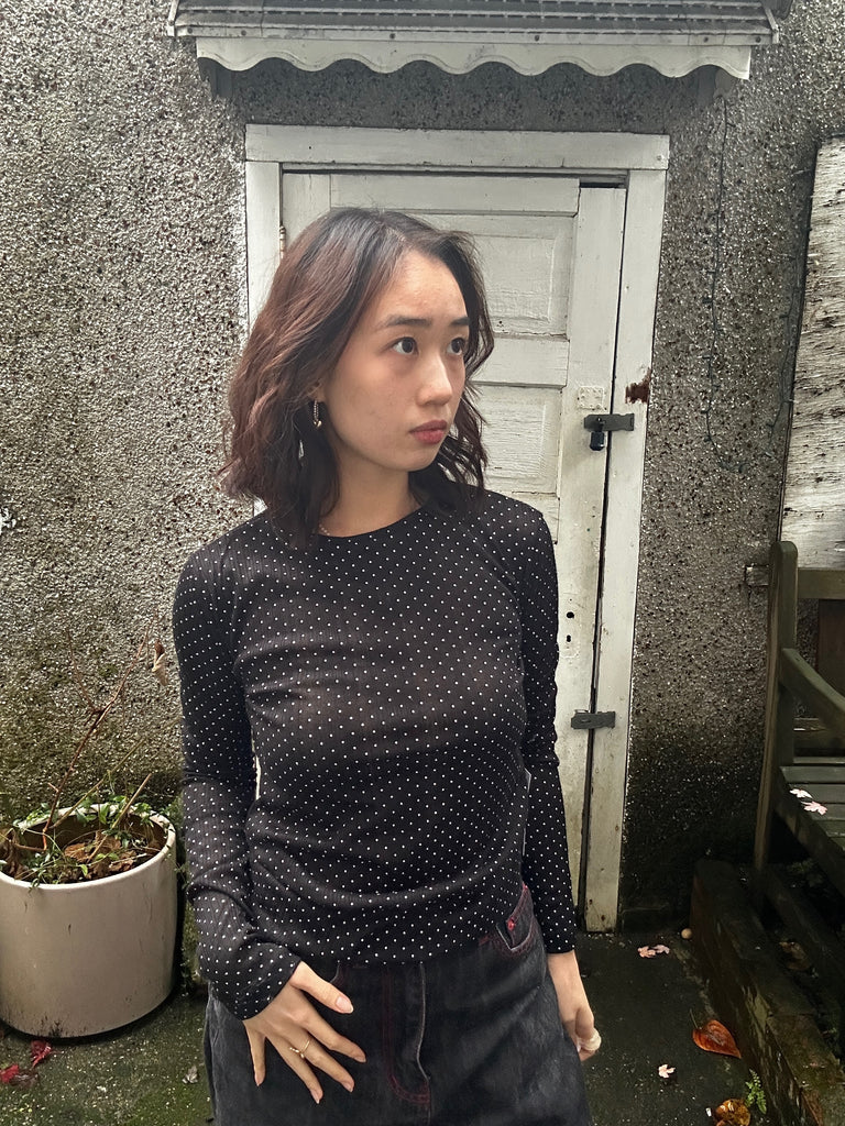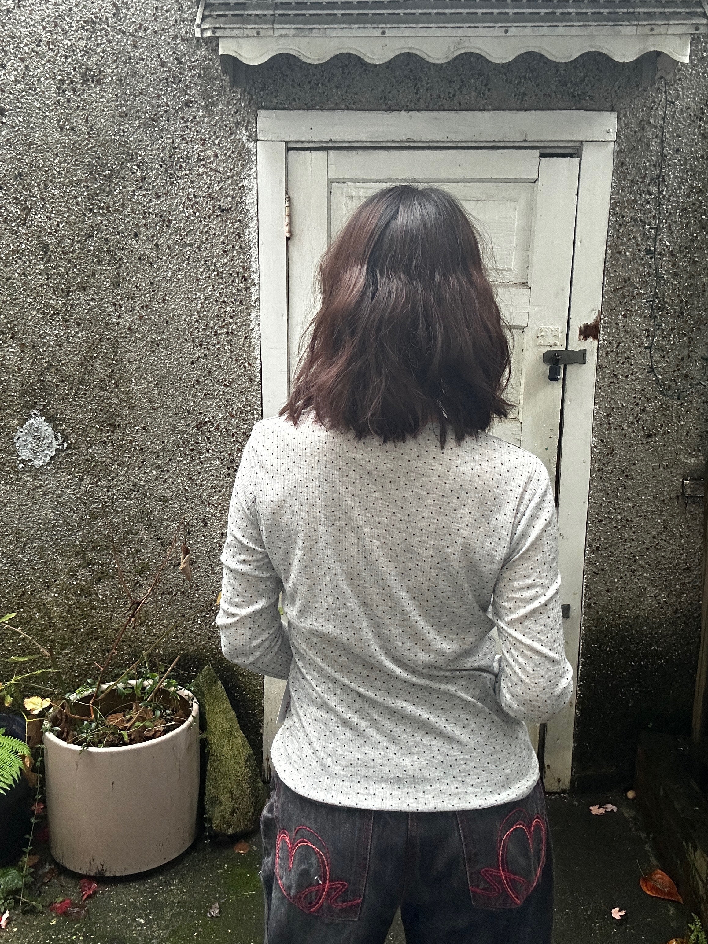 Add a splash of fun to your wardrobe with this playful polka dot top! Featuring soft, ribbed fabric and cozy long sleeves, it’s perfect for layering or wearing on its own. The classic crew neck keeps it casual and comfy, making it your go-to for effortless style with a cheerful twist.