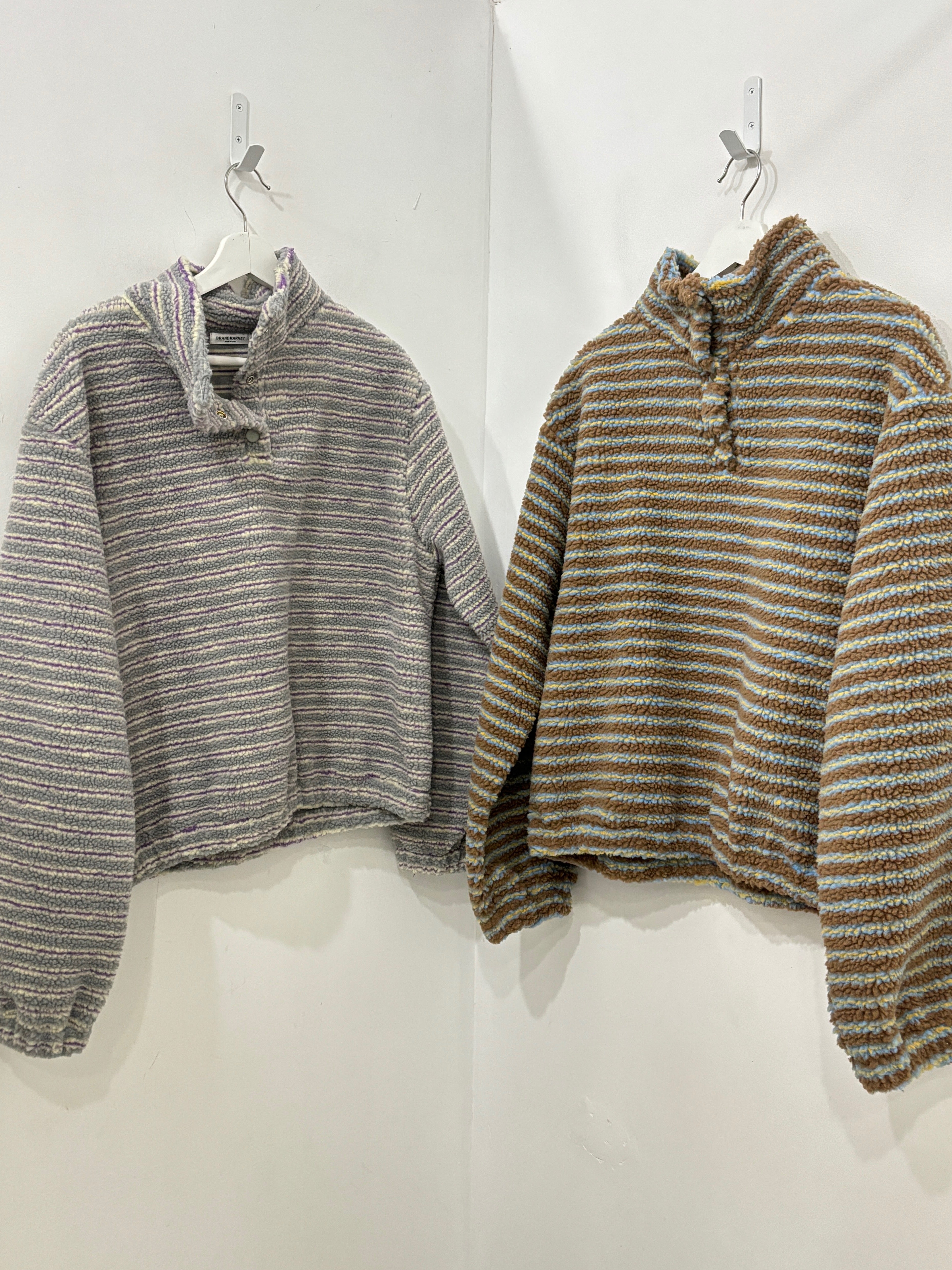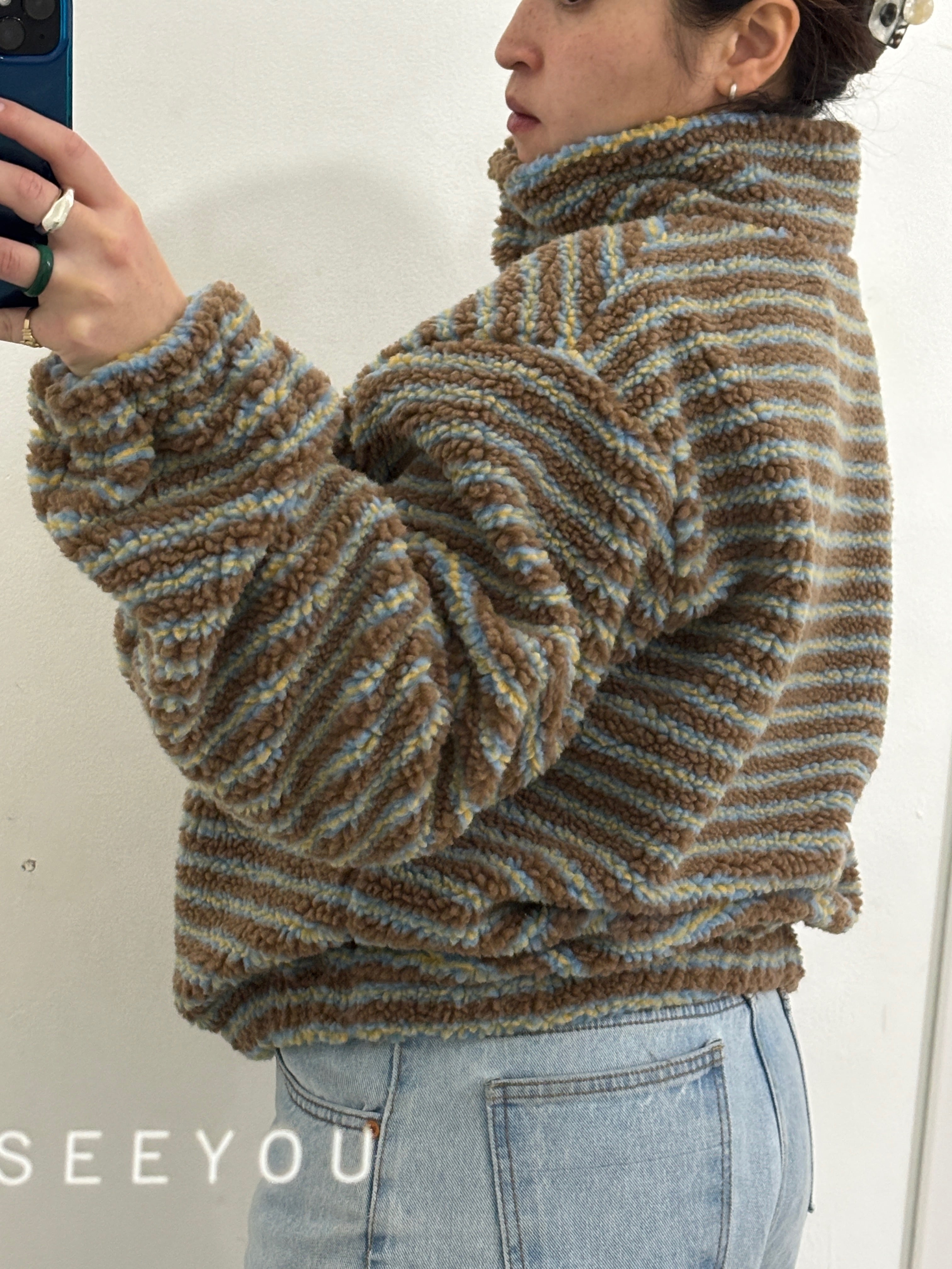 The ultimate cozy companion for chilly days. Featuring classic stripes and soft, brushed fabric, it's perfect for layering or wearing solo when temperatures drop. Whether you're lounging at home or heading out for winter adventures, this playful piece keeps you snug and stylish all season long.