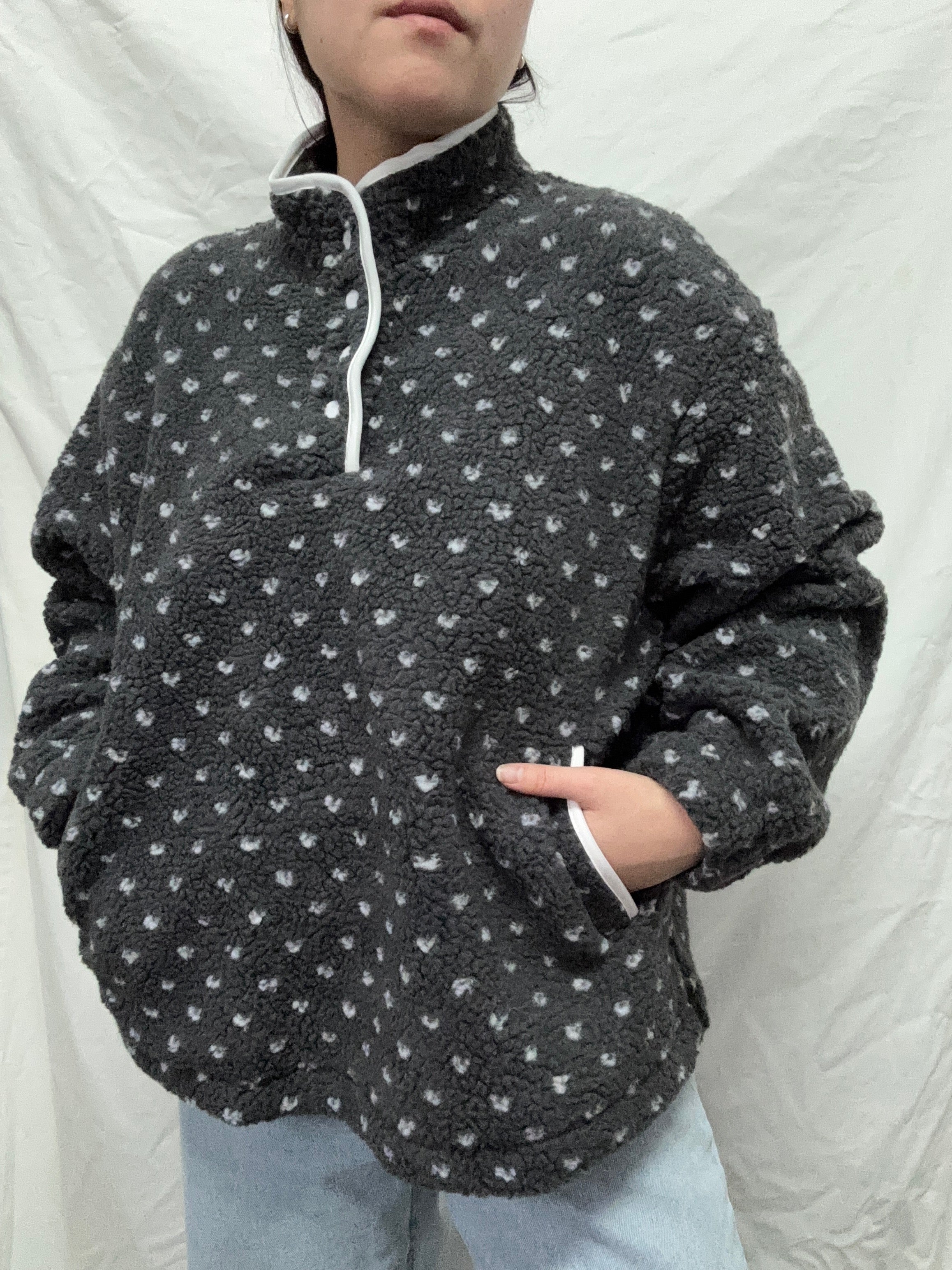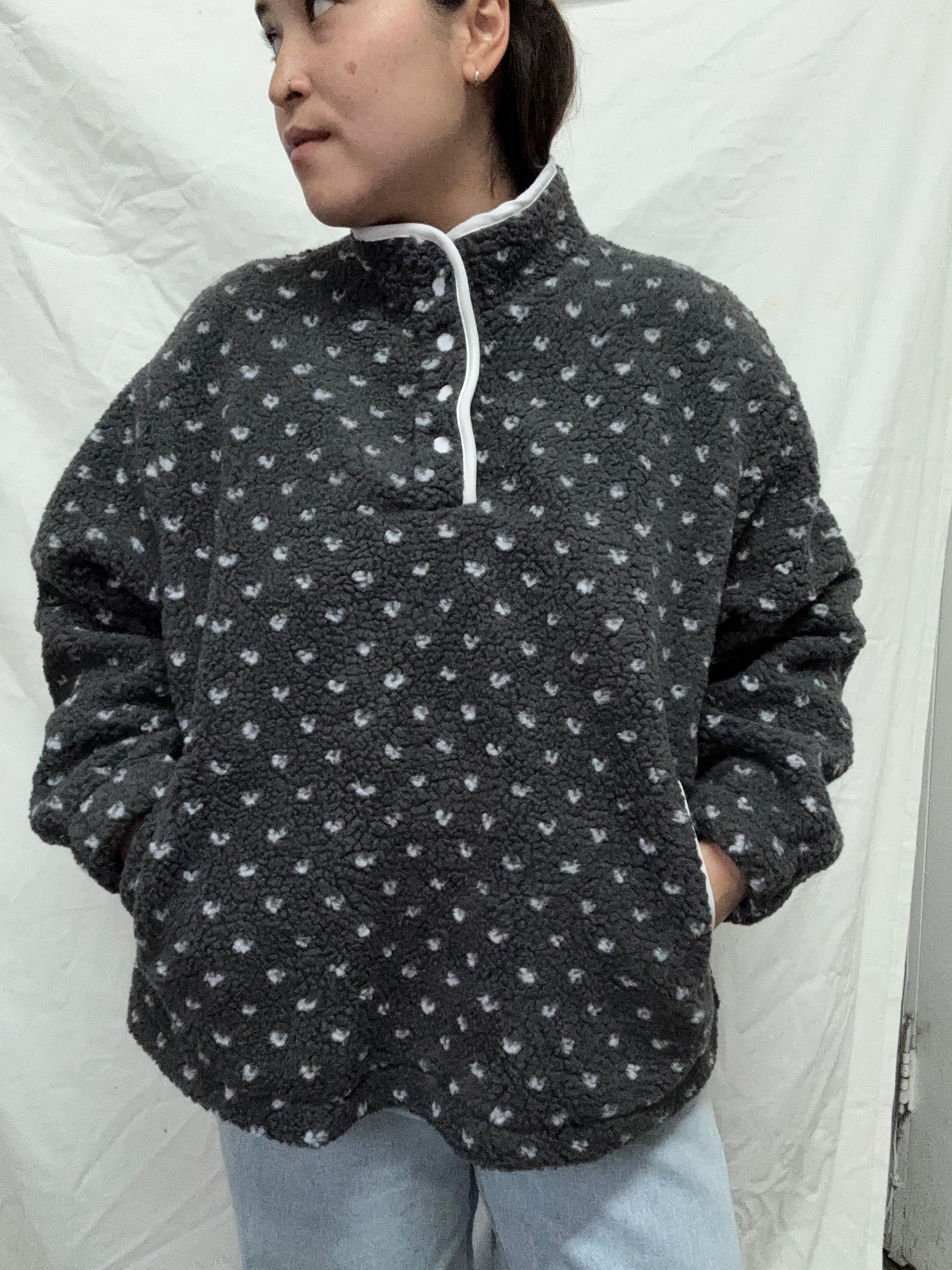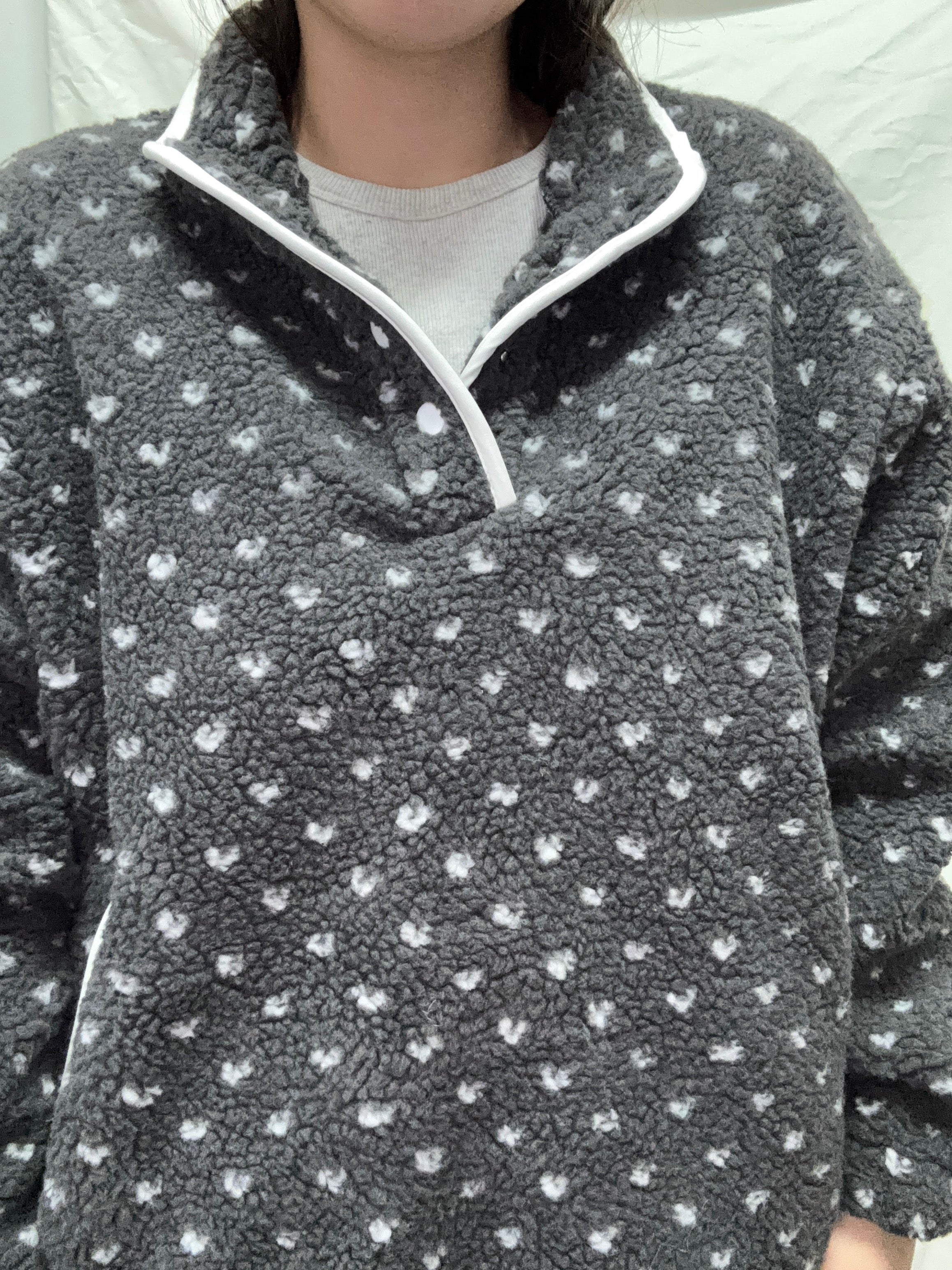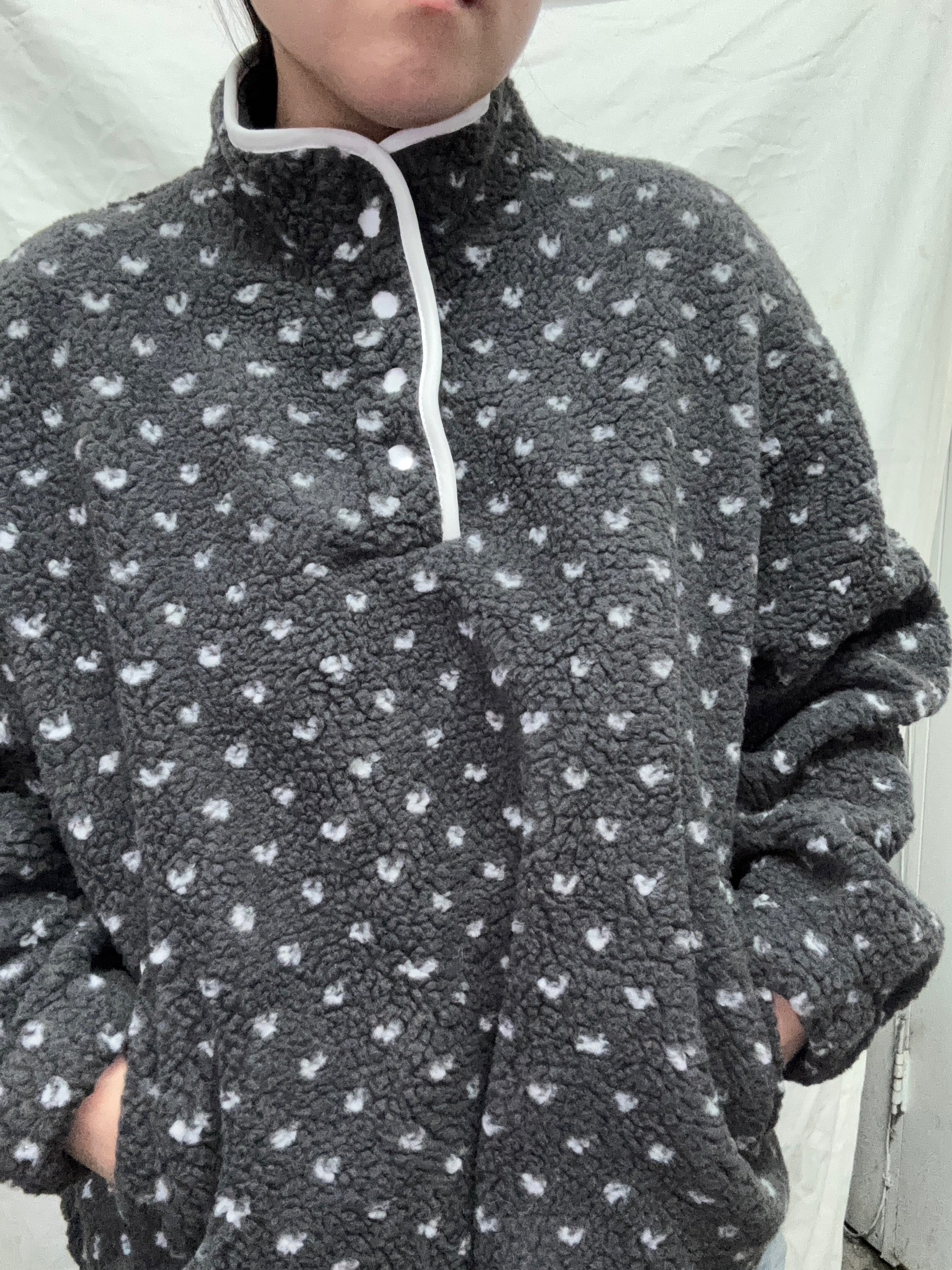 Snuggle into softness with this fleece henley sweater. Features metal snap buttons and dual pockets to keep your hands warm and your essentials close. Whether you're running errands or settling in for the day, this cozy layer delivers comfort without compromising on style or practicality.