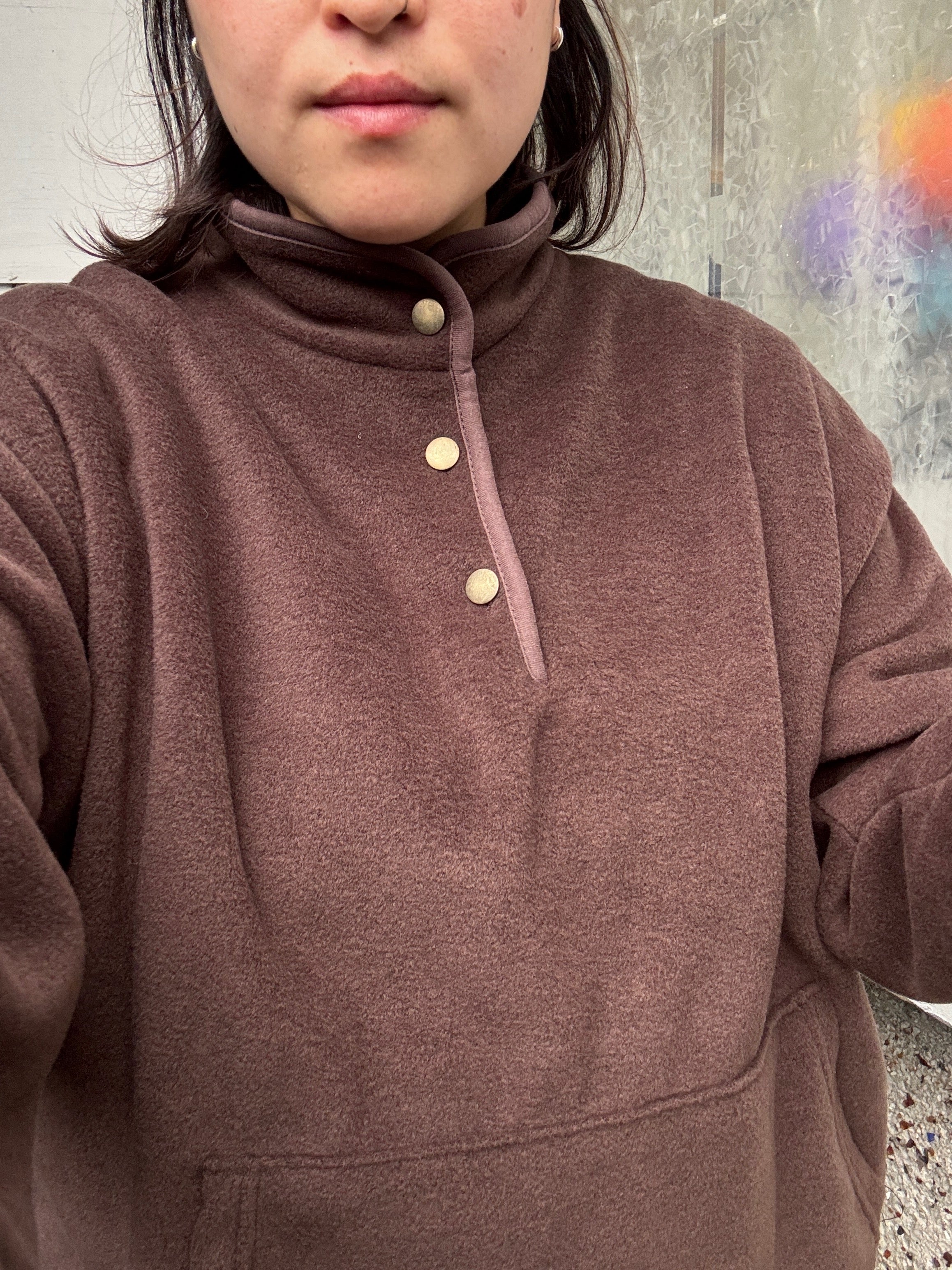 Snuggle up in cozy comfort with this charming fleece top! Featuring three button details at the neckline, a handy front pocket for your essentials, and an adjustable hem, it's the perfect layer for casual days. Whether you're lounging at home or heading out for a quick adventure, this versatile piece keeps you warm while looking effortlessly cute. Soft, stylish, and oh-so-huggable!