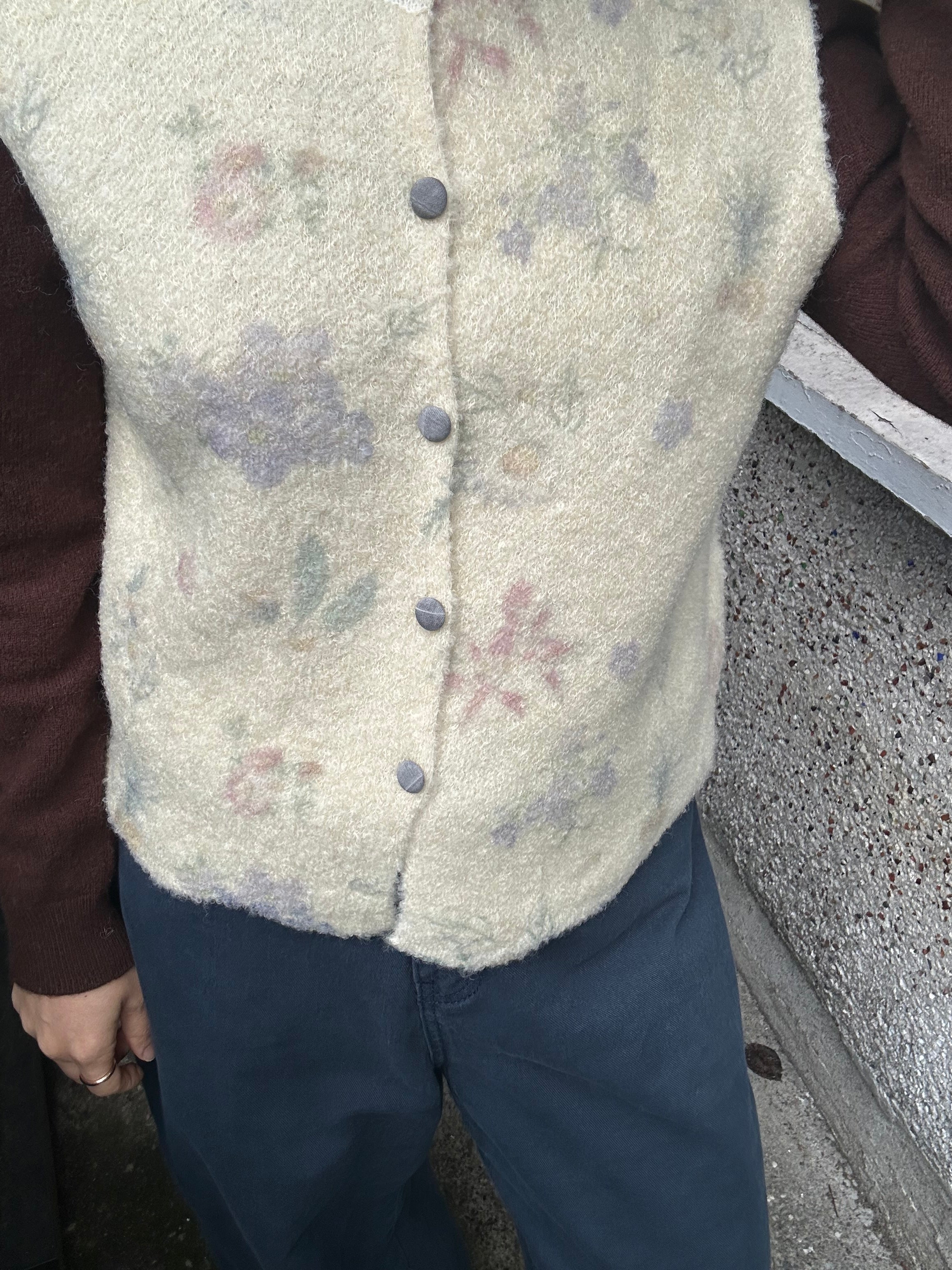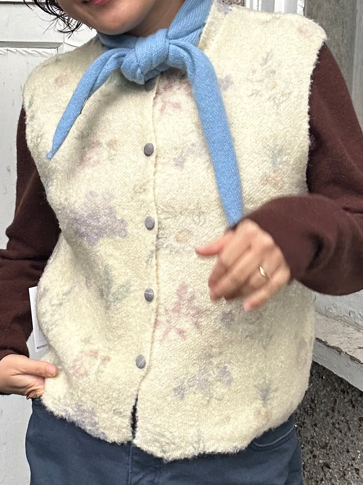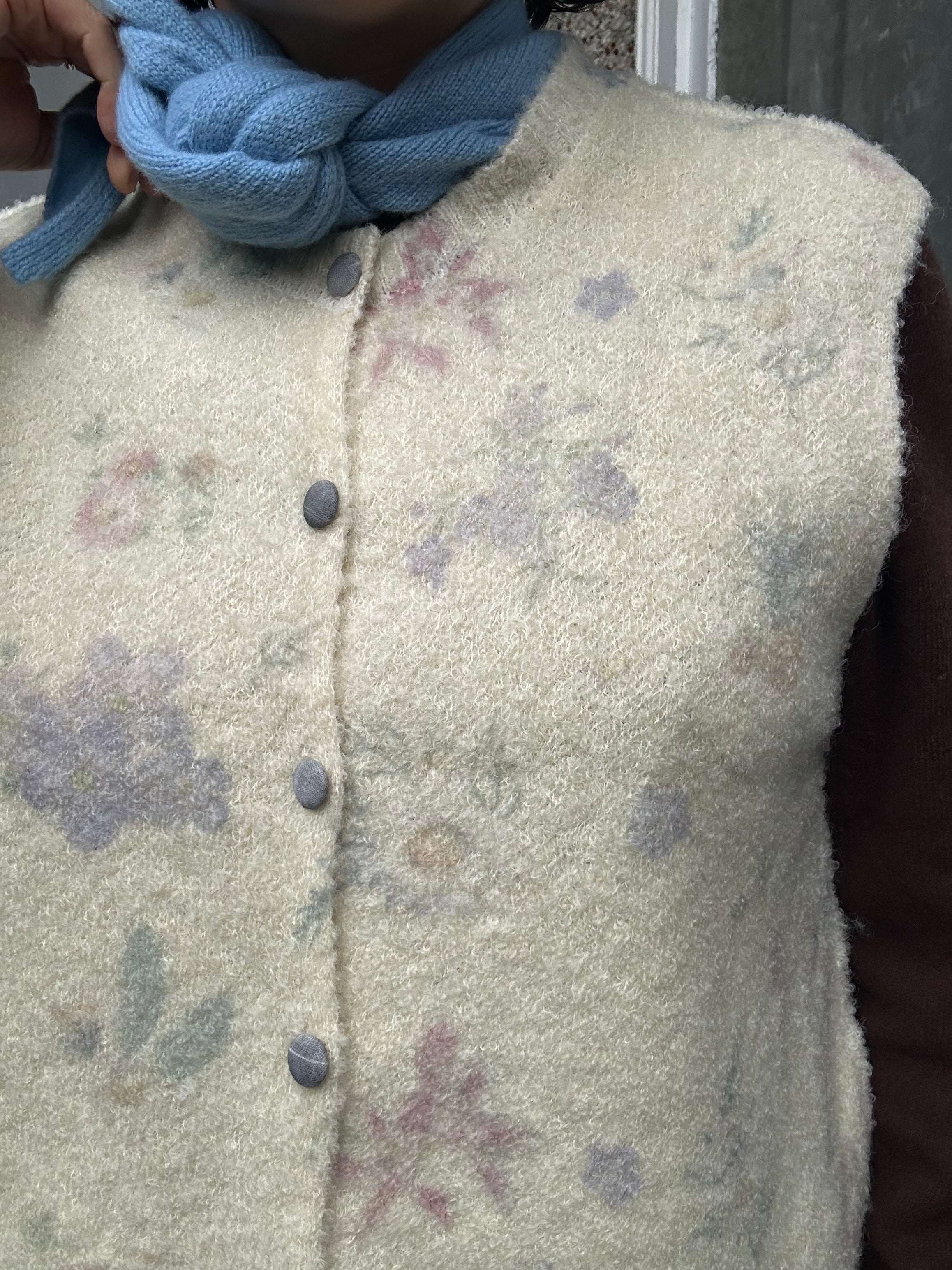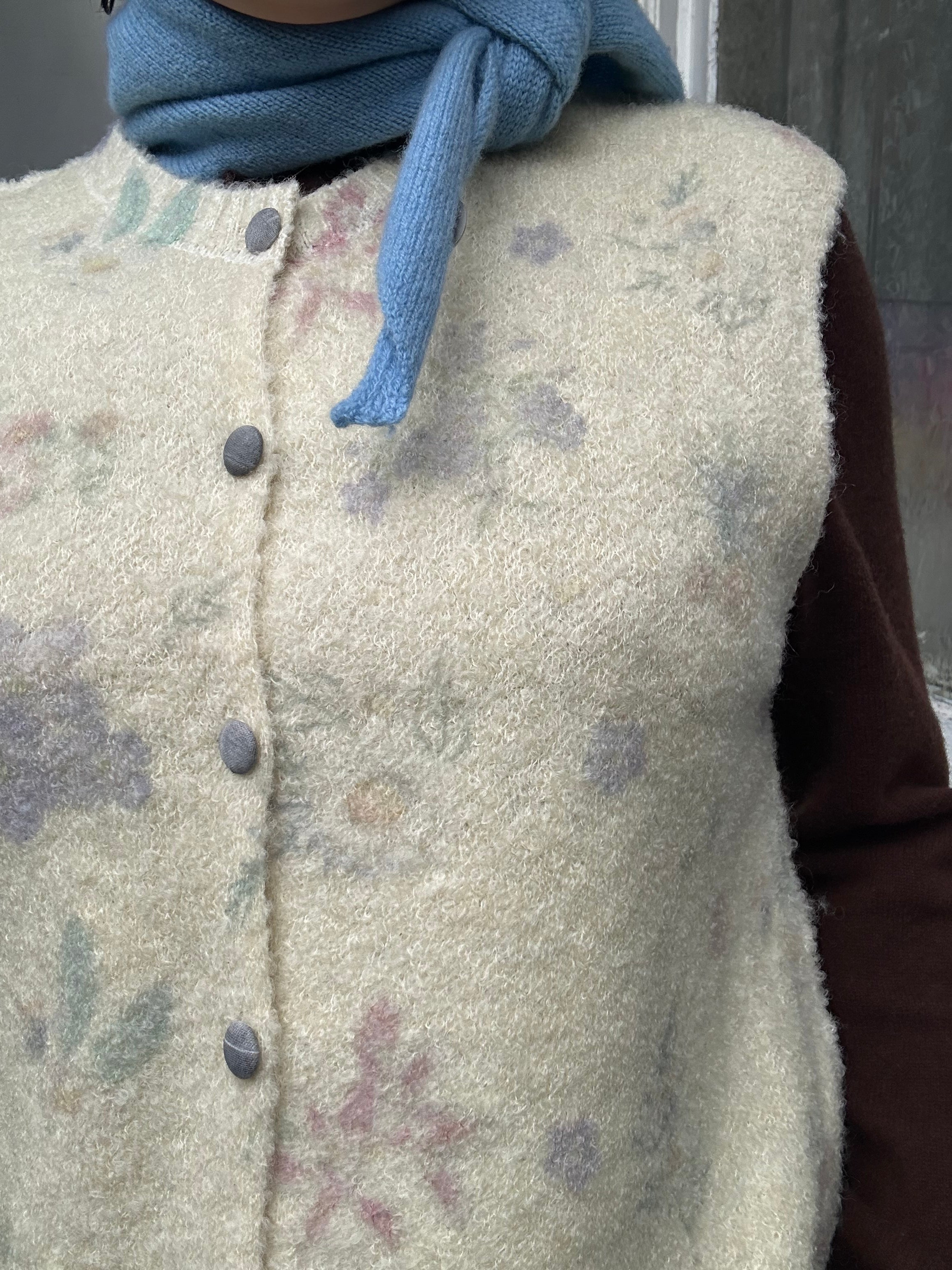 This delicate vest brings the garden wherever you go, featuring intricate floral details that celebrate the outdoors in the most wearable way. Perfect for those who want to carry a touch of natural elegance through their day, this vest transforms any outfit into a garden-inspired statement. Effortlessly charming and wonderfully versatile.