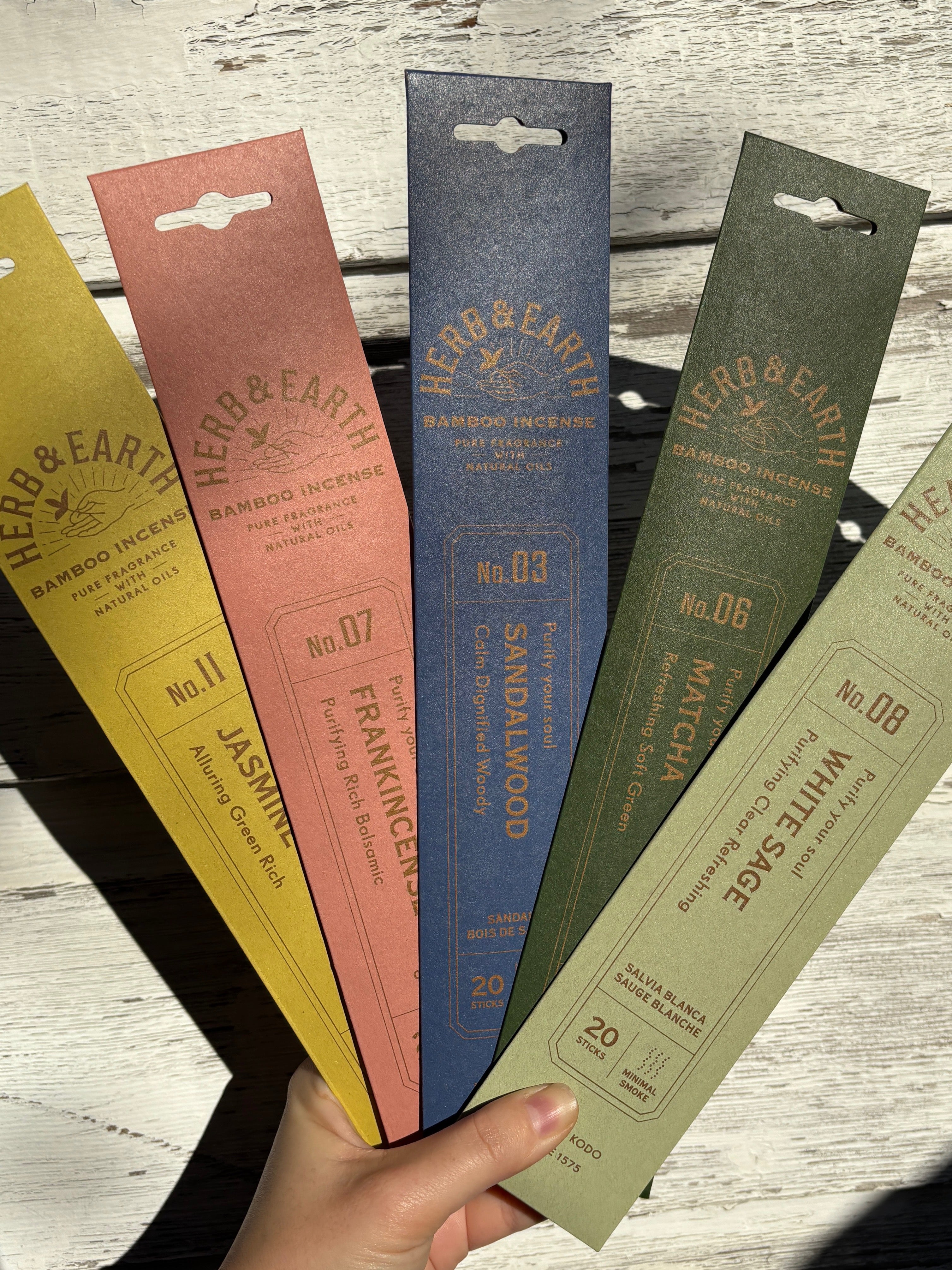 Herb & Earth bamboo incense sticks are high quality and produce minimal smoke. No artificial dyes. They will add the ideal touch of pure fragrance to your home.