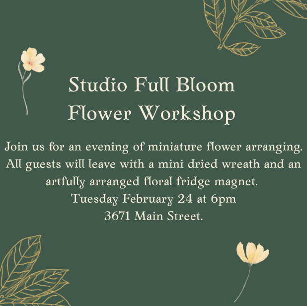 Mark your calendar for a fun night of everlasting dry flower workshop with Studio Full Bloom!