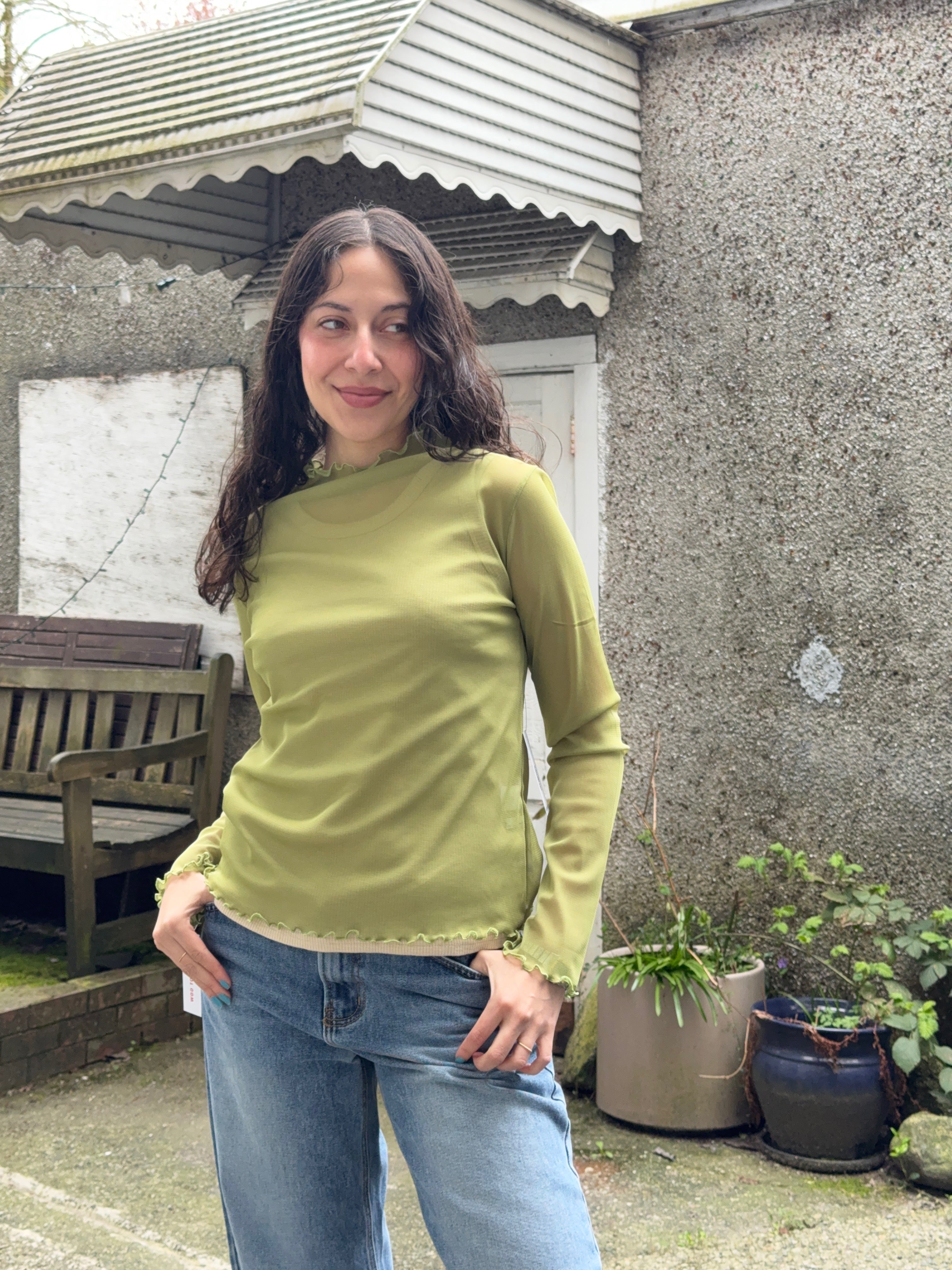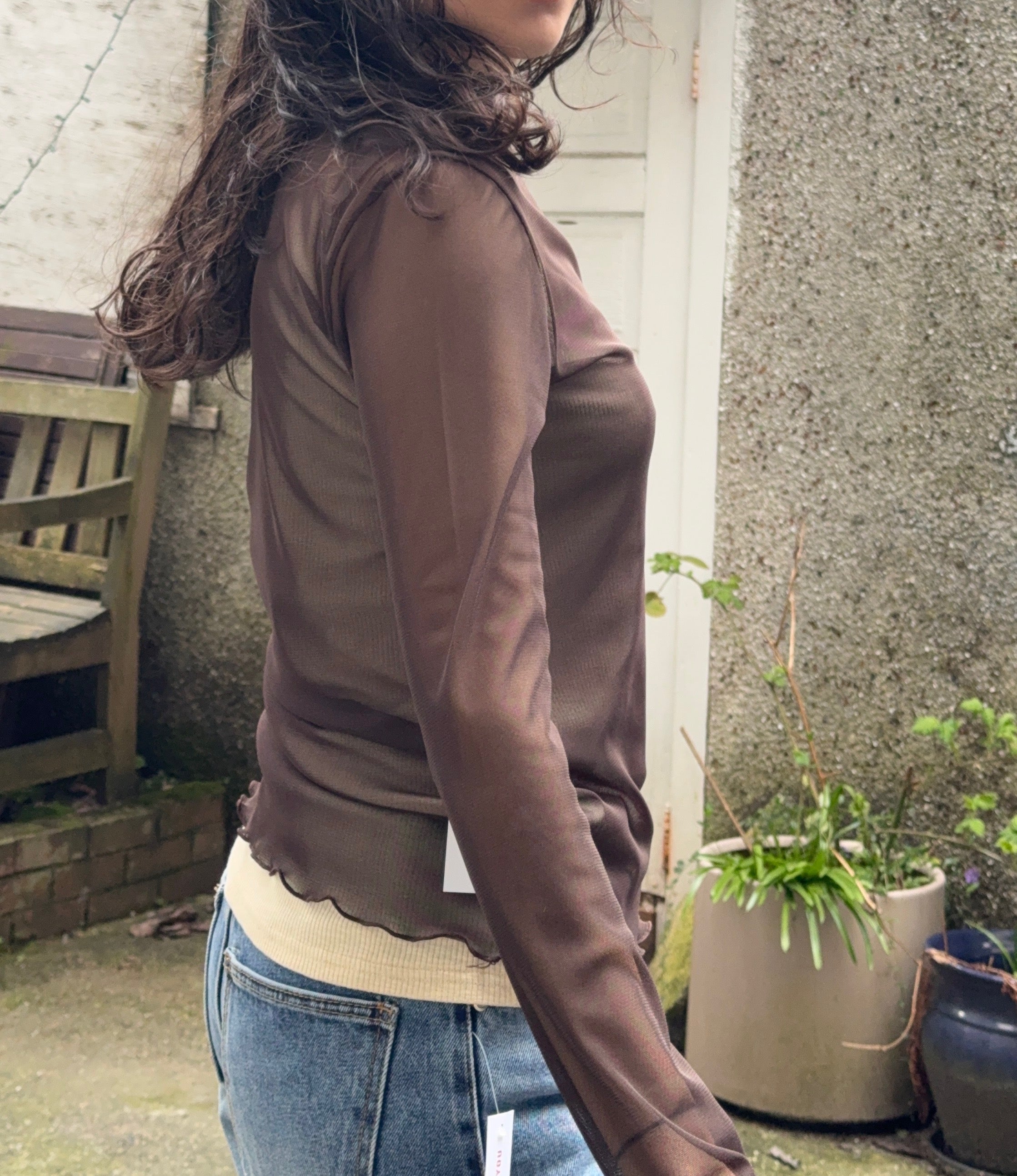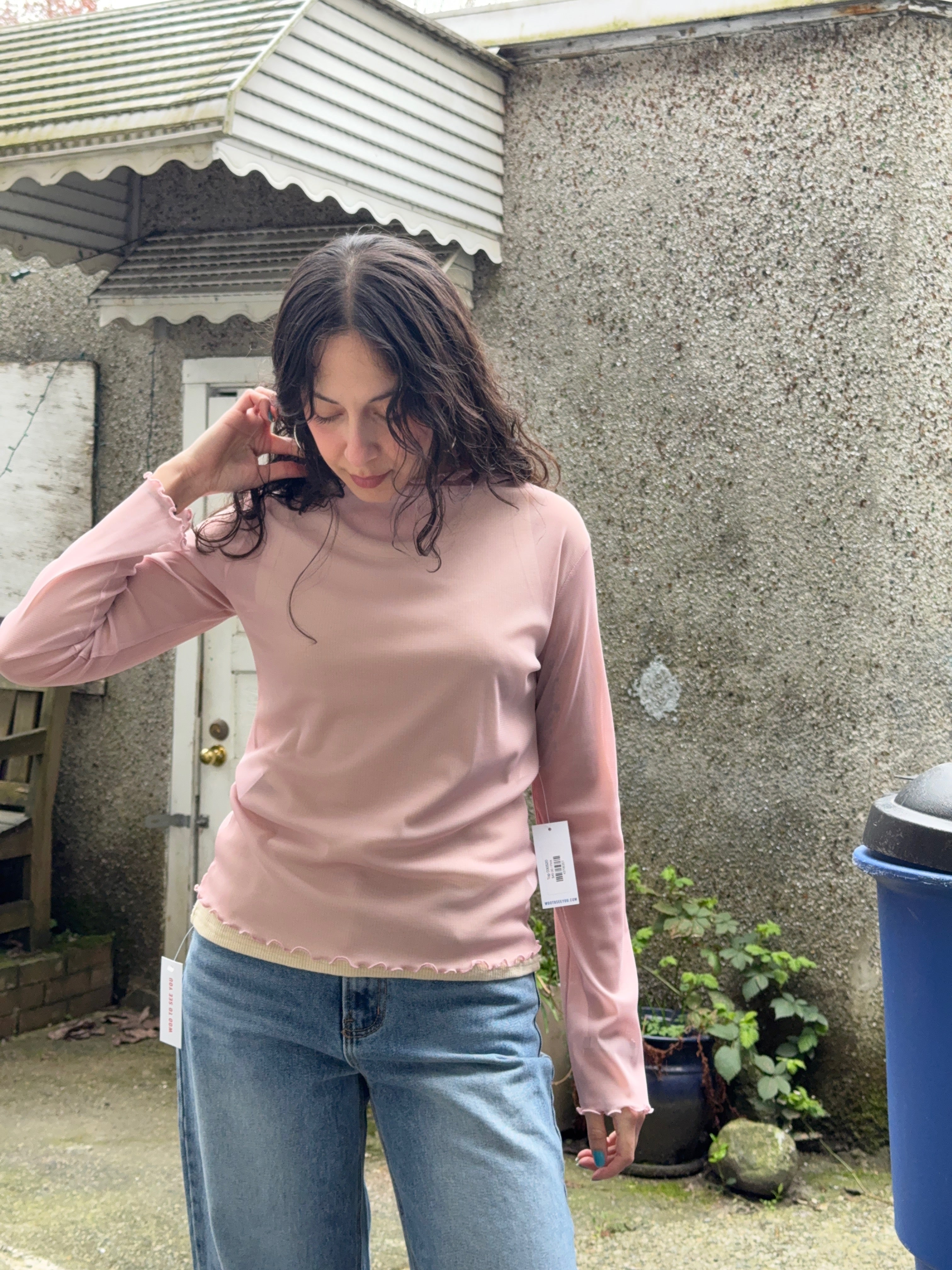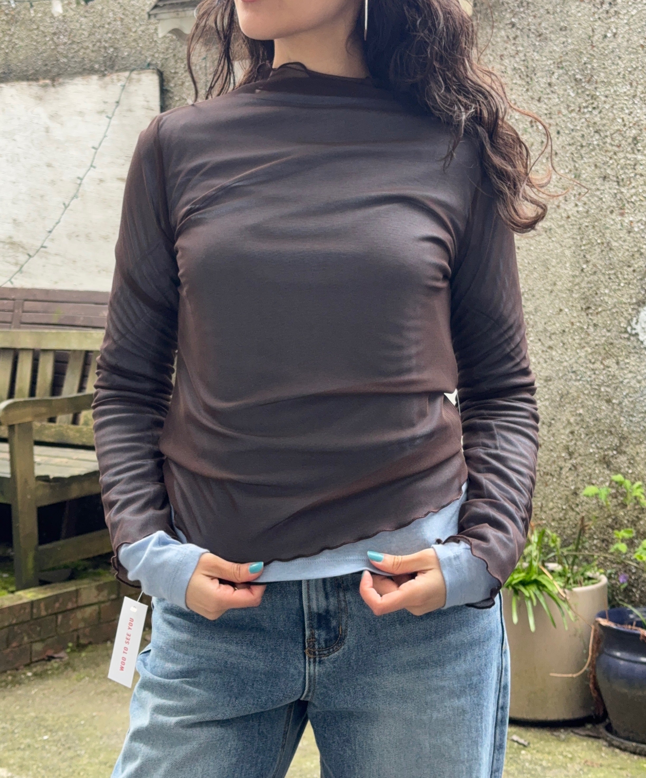 Elevate your layering game with this versatile mockneck mesh top. The delicate lattice hem finish adds texture and visual interest, making it perfect for styling from day to night. Crafted from a comfortable polyester and spandex blend, it moves with you while maintaining its shape. Layer it under sheer pieces, wear it solo, or pair it with your favorite outerwear for endless outfit possibilities.