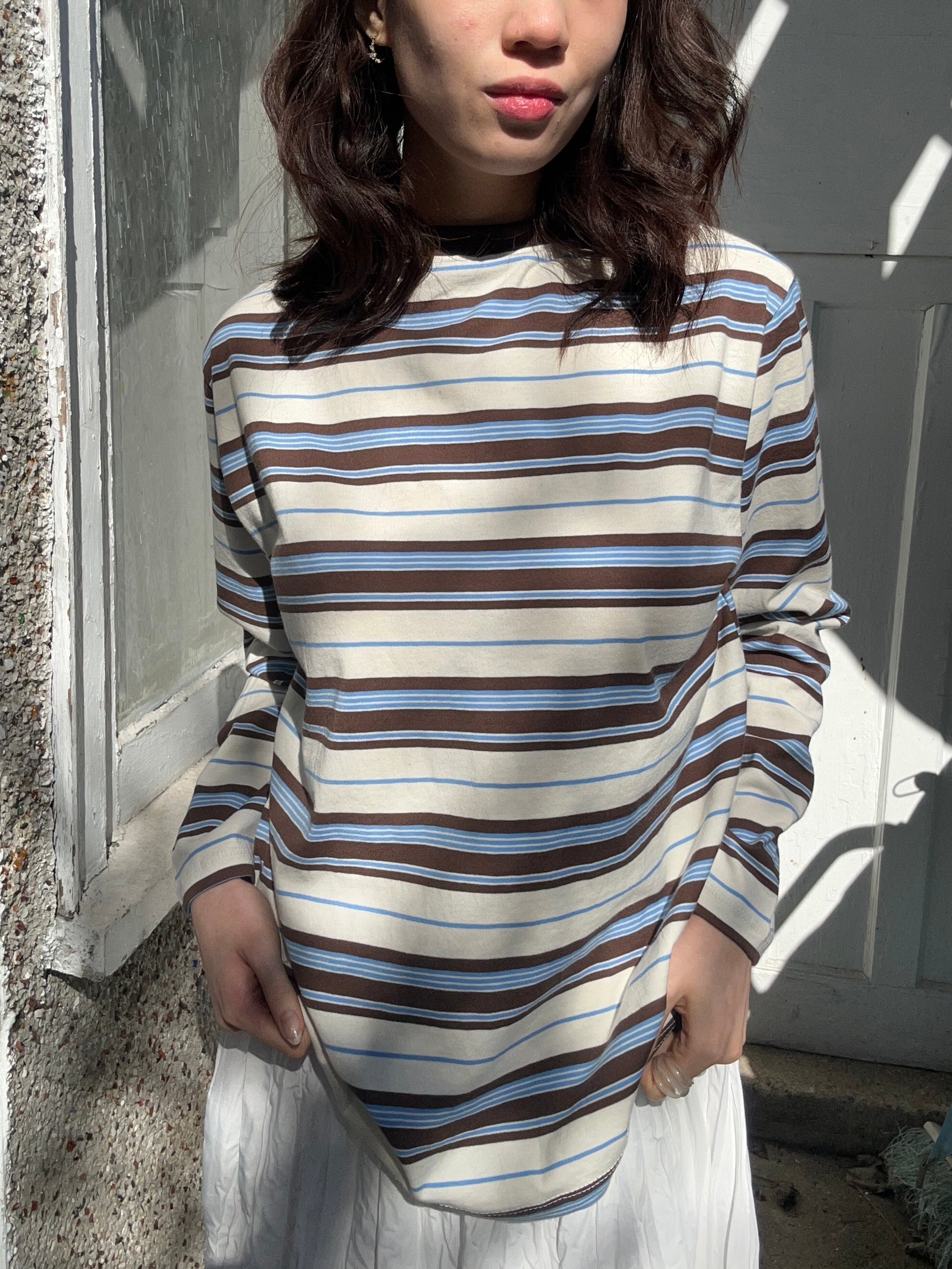 A timeless crew neck top crafted from 100% cotton. Features classic long sleeves and a striped pattern for effortless everyday style. Soft, breathable fabric keeps you comfortable throughout the day. Perfect for layering or wearing solo.